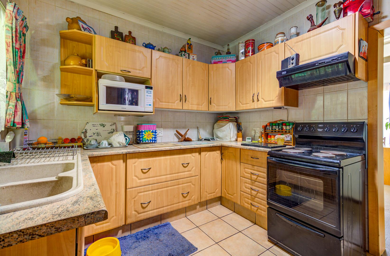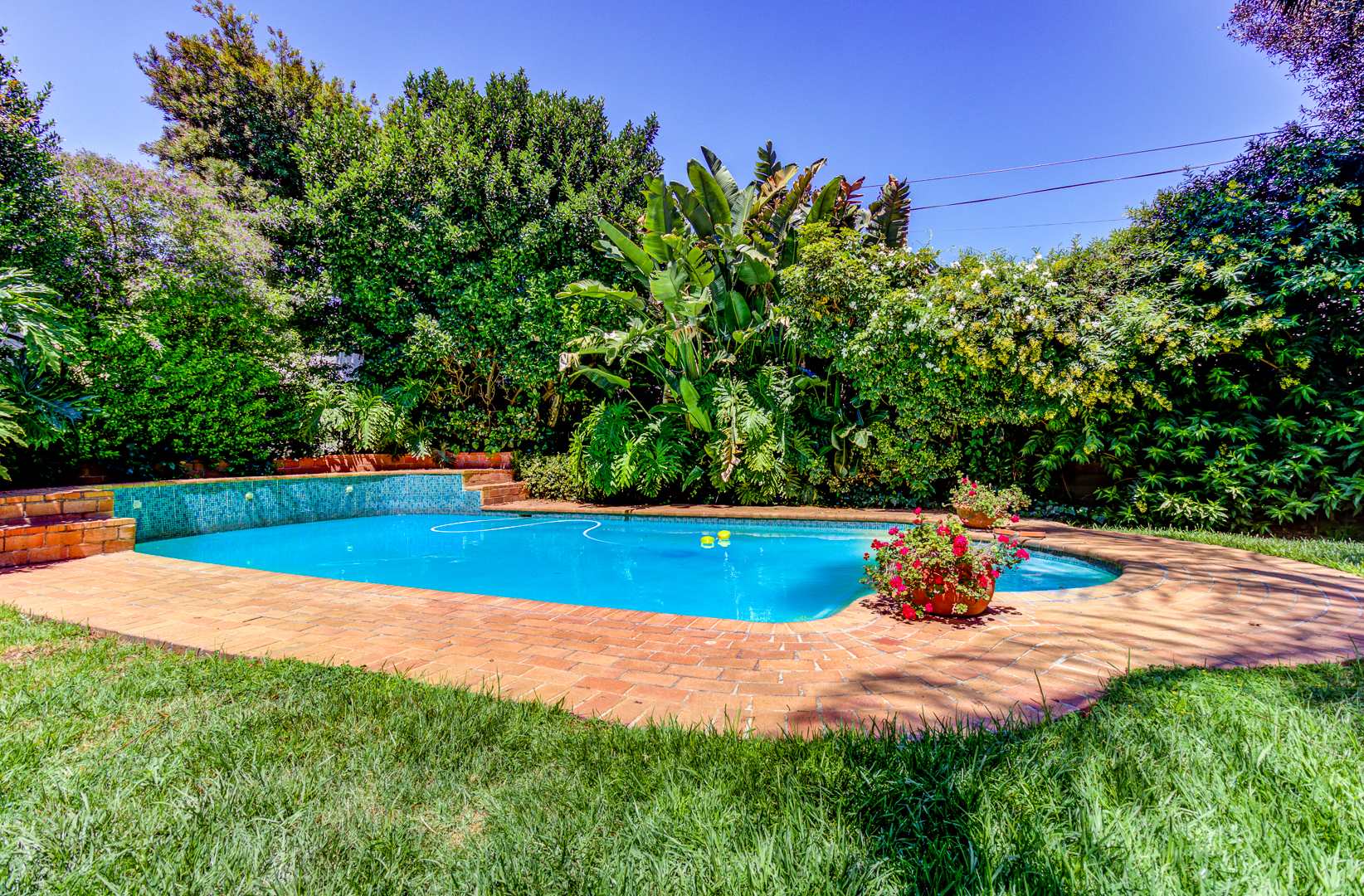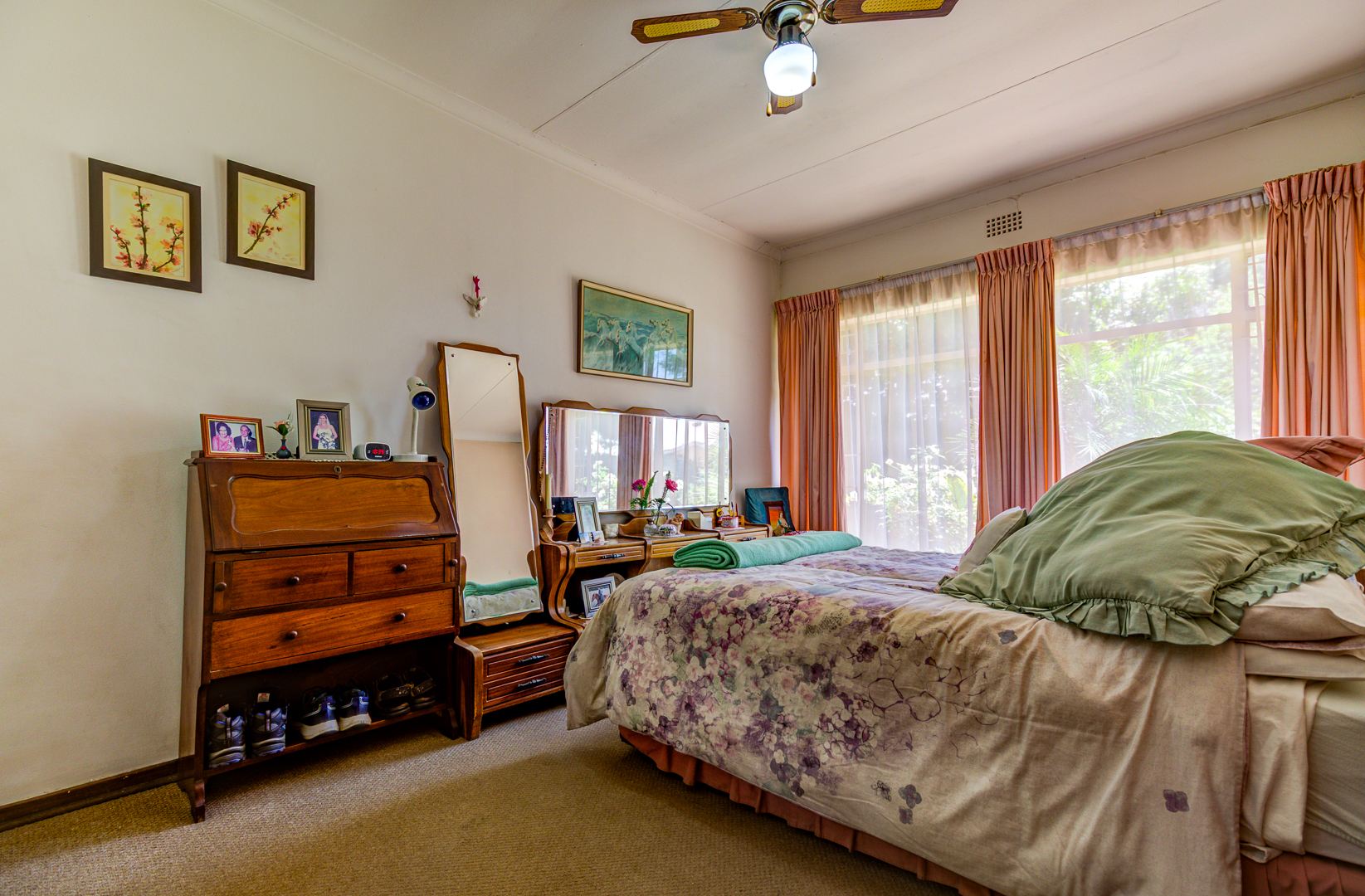 This charming single-story residence in Northmead, Benoni, offers comfortable suburban living on a generous 996 sqm erf. The property immediately impresses with its well-maintained exterior, featuring light-colored walls and a classic dark tiled roof. A lush, established garden, complete with mature trees, shrubs, and flowering roses, creates a welcoming ambiance and enhances privacy. A paved driveway leads to a double garage, providing ample secure parking and storage.