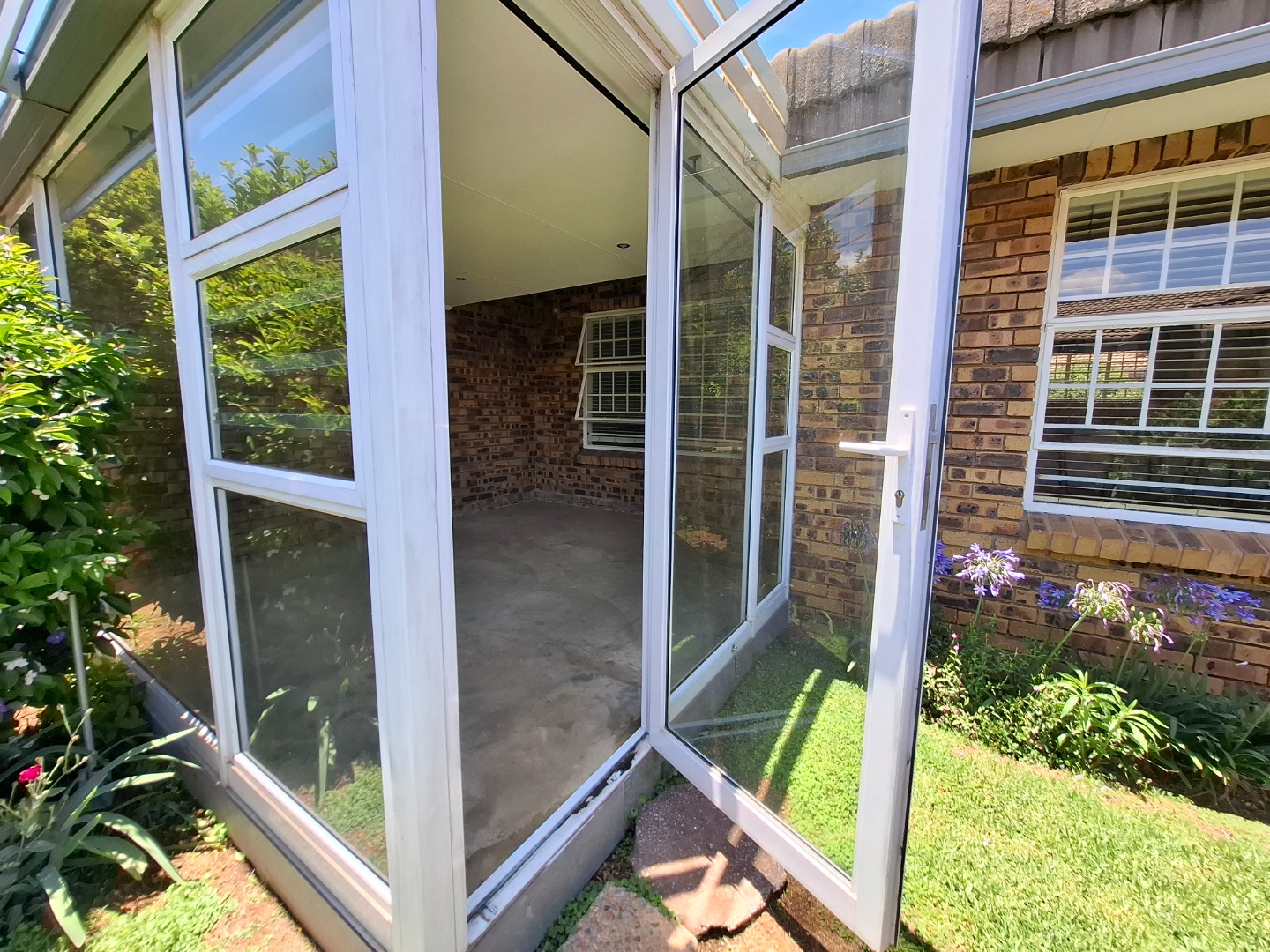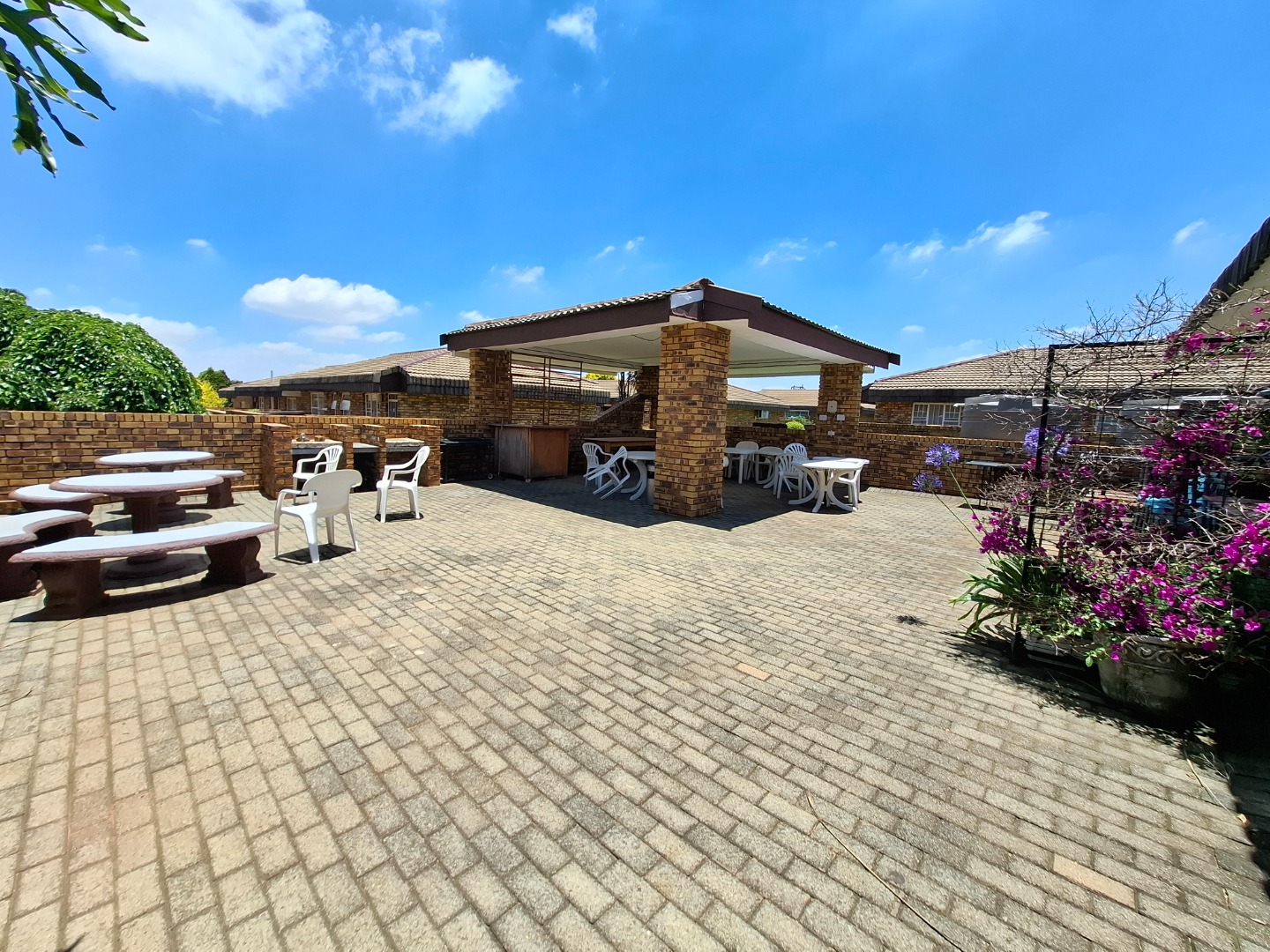 A Glass enclosed patio for extended living space. Externally, residents benefit from a garden area, offering serene outdoor spaces for relaxation. The property includes one dedicated parking bay and access to a communal braai area called "The Lapa", fostering a sense of community within the village as well as a cerene Library. Friday Chair joga is only one of the extras held in the Function Hall.