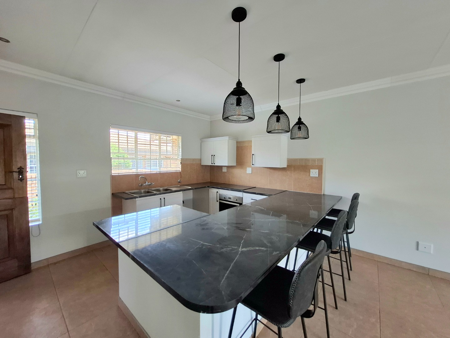 This meticulously presented 2 Bedroom, 1 Bathroom residence offers an exceptional opportunity within the esteemed Norton Park Retirement Village in Benoni, South Africa. Spanning 81.00 sqm of refined living space, this property is designed for comfort and convenience. The interior boasts a contemporary open plan layout, seamlessly integrating the living area and a modern kitchen. The kitchen is appointed with sleek white cabinetry, dark marble effect countertops, a built-in oven, and a stylish breakfast bar illuminated by elegant pendant lighting. Neutral tiled flooring and crown molding extend throughout, creating a cohesive and sophisticated aesthetic.