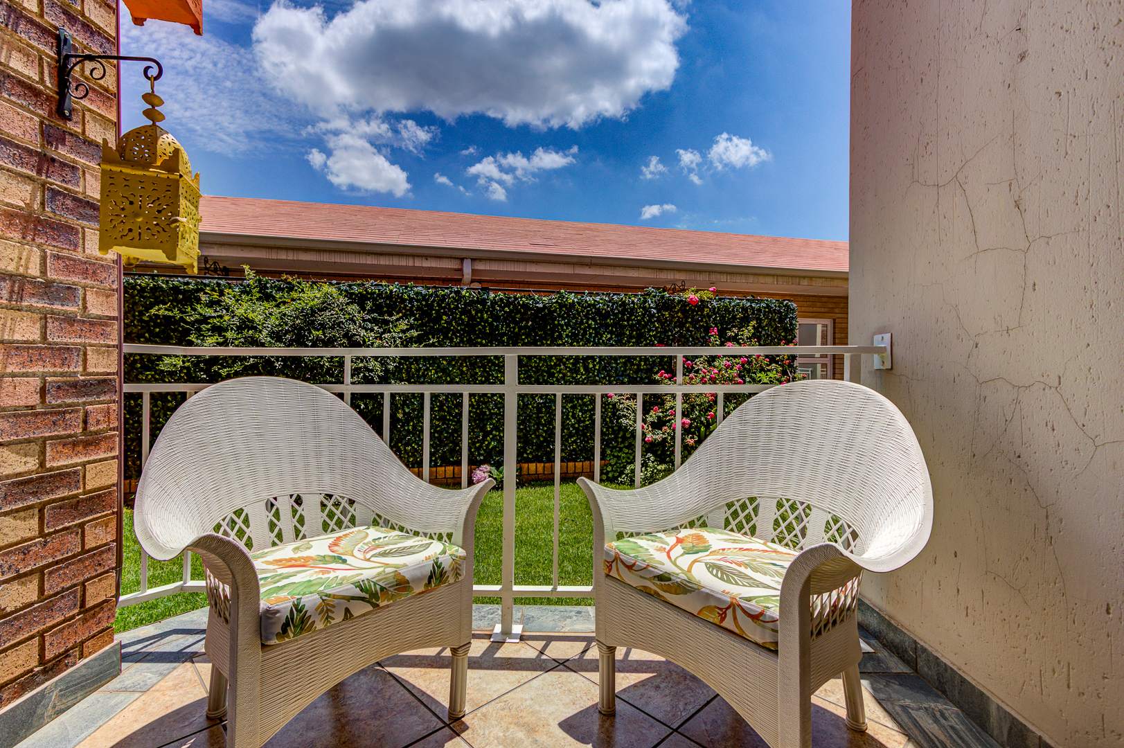 Ea Discover an exquisite sanctuary designed for sophisticated retirement living within a premier complex in Rynfield, Benoni. This meticulously appointed 64 sqm residence offers a harmonious blend of comfort and elegance, beginning with its inviting open-plan living area. The modern kitchen, adorned with sleek cabinetry, dark granite countertops, and a stylish stone-tiled backsplash, seamlessly flows into the lounge, creating an ideal space for both intimate moments and entertaining. An integrated breakfast bar enhances functionality, while sliding doors invite natural light and provide effortless access to your private outdoor haven. Beautiful window treatments in tonal colors to match the floor coverings and paint included in the asking price. The perfect - just move in - home.