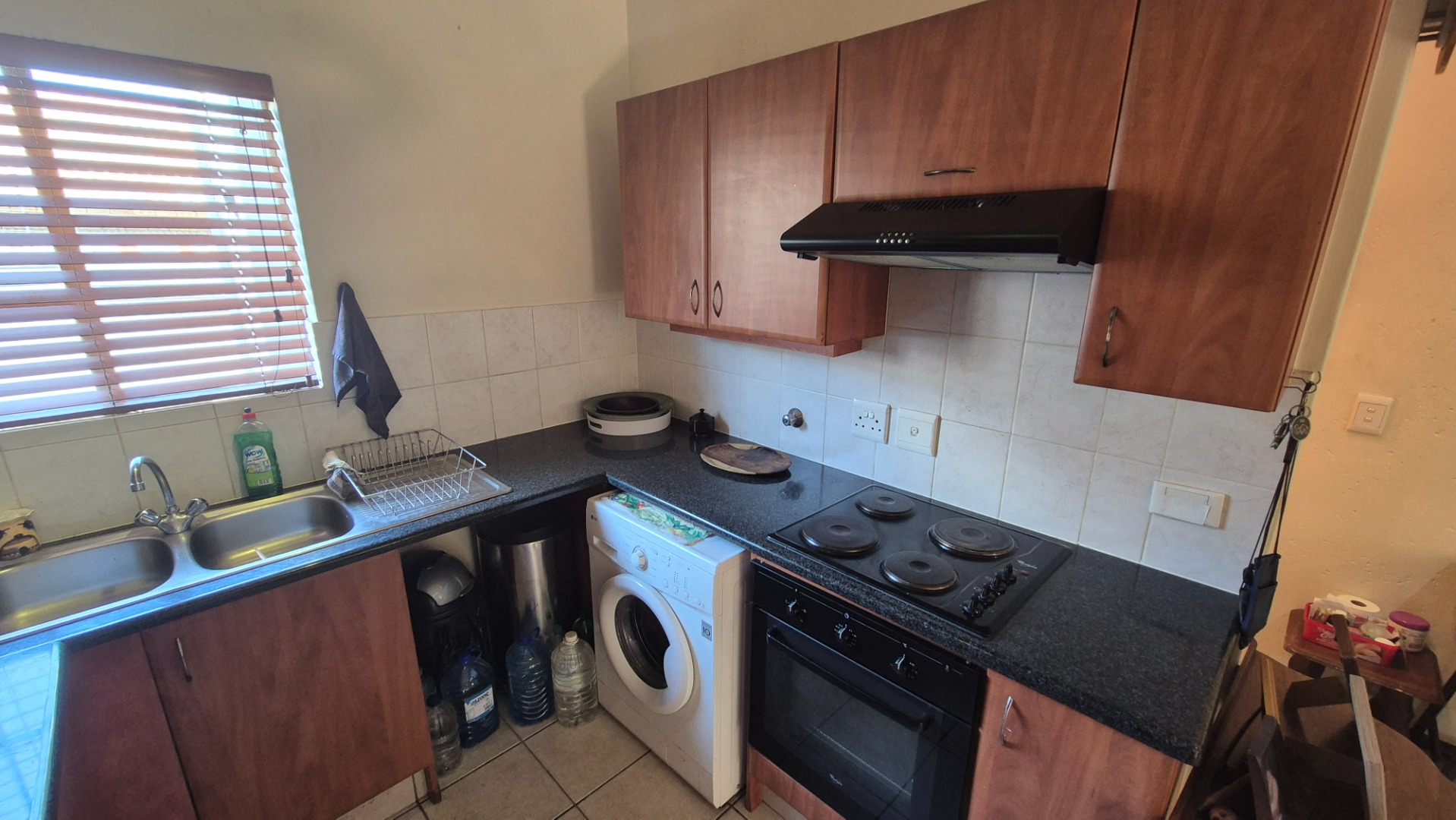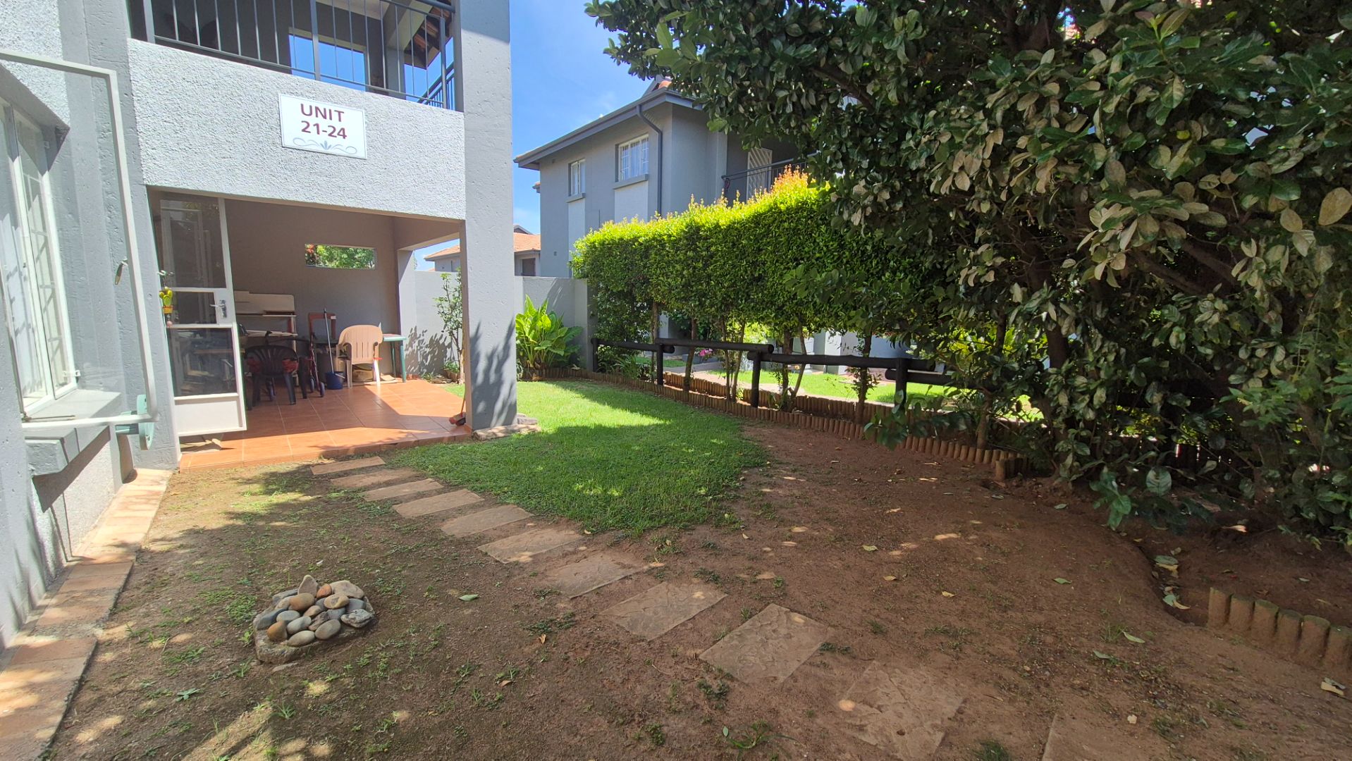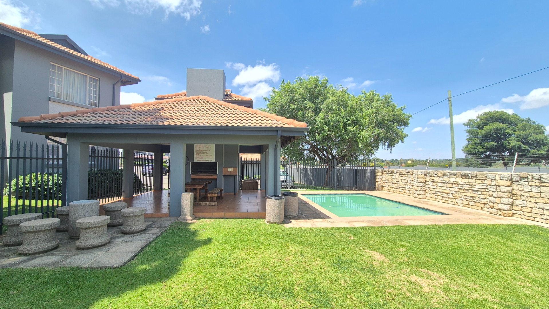 This inviting 3-bedroom, 2-bathroom residence offers comfortable living within a secure complex in the desirable Rynfield area of Benoni, South Africa. The property boasts a generous 101 sqm floor size, providing ample space for families or professionals. The interior features a welcoming lounge area, designed with an open-plan layout that enhances the sense of space and allows for seamless flow. Tiled flooring throughout the main living areas ensures easy maintenance, complemented by neutral wall tones that provide a versatile canvas for personal decor. Natural light floods the living spaces, creating a bright and airy atmosphere. The functional kitchen is well-appointed with ample wooden cabinetry, dark granite countertops, and a practical tiled backsplash. It includes a double sink, built-in stove, oven, and extractor fan, along with space for essential appliances. A convenient pantry offers additional storage, catering to all your culinary needs. The three comfortable bedrooms provide private retreats, with the main bedroom featuring its own en-suite bathroom for added convenience and privacy. The second bathroom serves the remaining bedrooms and guests. Step outside to discover a private, well-maintained garden and a covered, tiled patio, perfect for outdoor relaxation and entertaining. The complex also offers the luxury of a communal swimming pool, ideal for enjoying sunny days. Parking is well-catered for with two dedicated parking bays, including covered options. Residents benefit from excellent security features, including a security complex environment with 24-hour security, an access gate, security gates on the unit, and an intercom system, ensuring peace of mind. The property is also totally walled and equipped with fibre connectivity. Rynfield, Benoni, is a sought-after suburb known for its family-friendly atmosphere and convenient access to local amenities, schools, and major transport routes. This home presents an excellent opportunity for those seeking a secure and comfortable lifestyle. Key Features: * 3 Bedrooms, 2 Bathrooms (1 En-suite) * 1 Lounge with Open-Plan Layout * Functional Kitchen with Pantry * Private Garden & Covered Patio * Communal Swimming Pool * 2 Parking Bays * 24-Hour Security Complex with Access Gate & Intercom * Fibre Ready