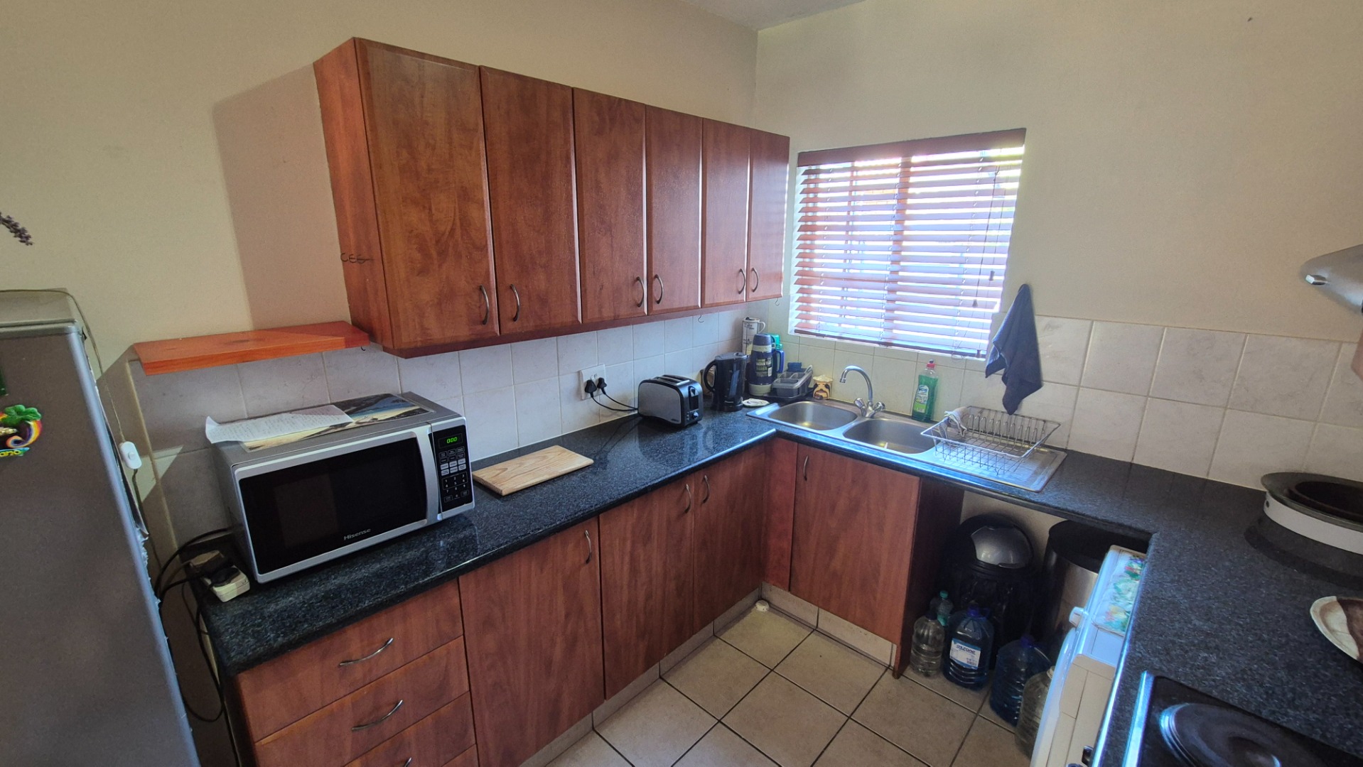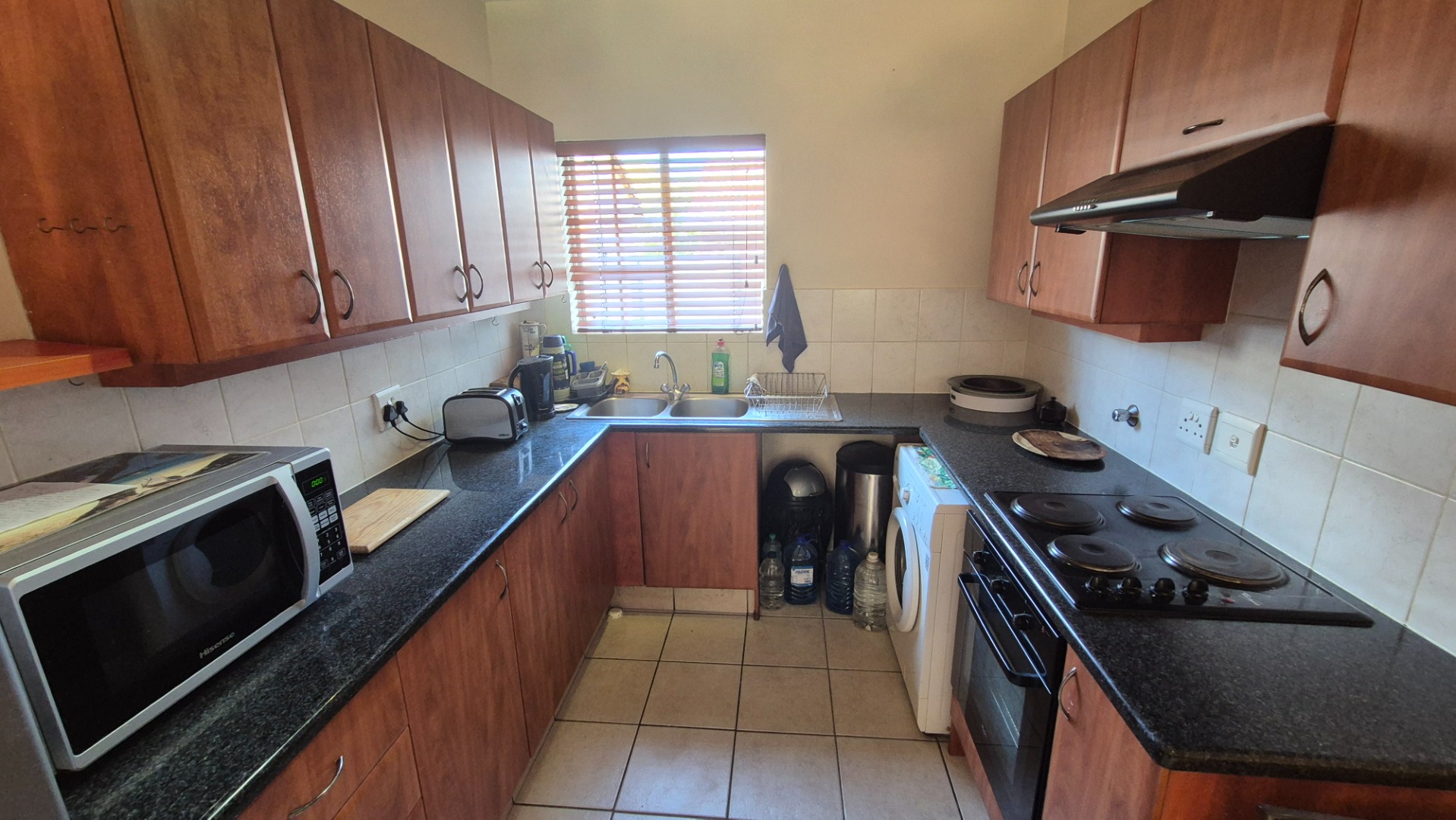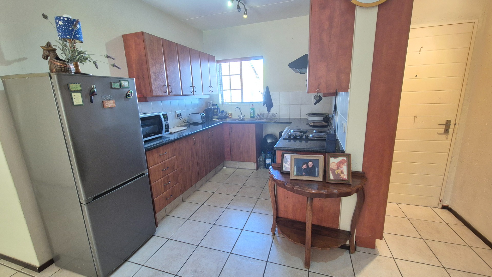 This inviting 3-bedroom, 2-bathroom residence offers comfortable living within a secure complex in the desirable Rynfield area of Benoni, South Africa. The property boasts a generous 101 sqm floor size, providing ample space for families or professionals. The interior features a welcoming lounge area, designed with an open-plan layout that enhances the sense of space and allows for seamless flow. Tiled flooring throughout the main living areas ensures easy maintenance, complemented by neutral wall tones that provide a versatile canvas for personal decor. Natural light floods the living spaces, creating a bright and airy atmosphere. The functional kitchen is well-appointed with ample wooden cabinetry, dark granite countertops, and a practical tiled backsplash. It includes a double sink, built-in stove, oven, and extractor fan, along with space for essential appliances. A convenient pantry offers additional storage, catering to all your culinary needs. The three comfortable bedrooms provide private retreats, with the main bedroom featuring its own en-suite bathroom for added convenience and privacy. The second bathroom serves the remaining bedrooms and guests. Step outside to discover a private, well-maintained garden and a covered, tiled patio, perfect for outdoor relaxation and entertaining. The complex also offers the luxury of a communal swimming pool, ideal for enjoying sunny days. Parking is well-catered for with two dedicated parking bays, including covered options. Residents benefit from excellent security features, including a security complex environment with 24-hour security, an access gate, security gates on the unit, and an intercom system, ensuring peace of mind. The property is also totally walled and equipped with fibre connectivity. Rynfield, Benoni, is a sought-after suburb known for its family-friendly atmosphere and convenient access to local amenities, schools, and major transport routes. This home presents an excellent opportunity for those seeking a secure and comfortable lifestyle. Key Features: * 3 Bedrooms, 2 Bathrooms (1 En-suite) * 1 Lounge with Open-Plan Layout * Functional Kitchen with Pantry * Private Garden & Covered Patio * Communal Swimming Pool * 2 Parking Bays * 24-Hour Security Complex with Access Gate & Intercom * Fibre Ready