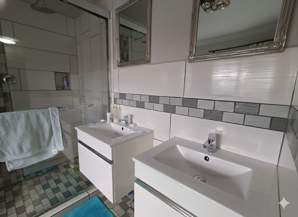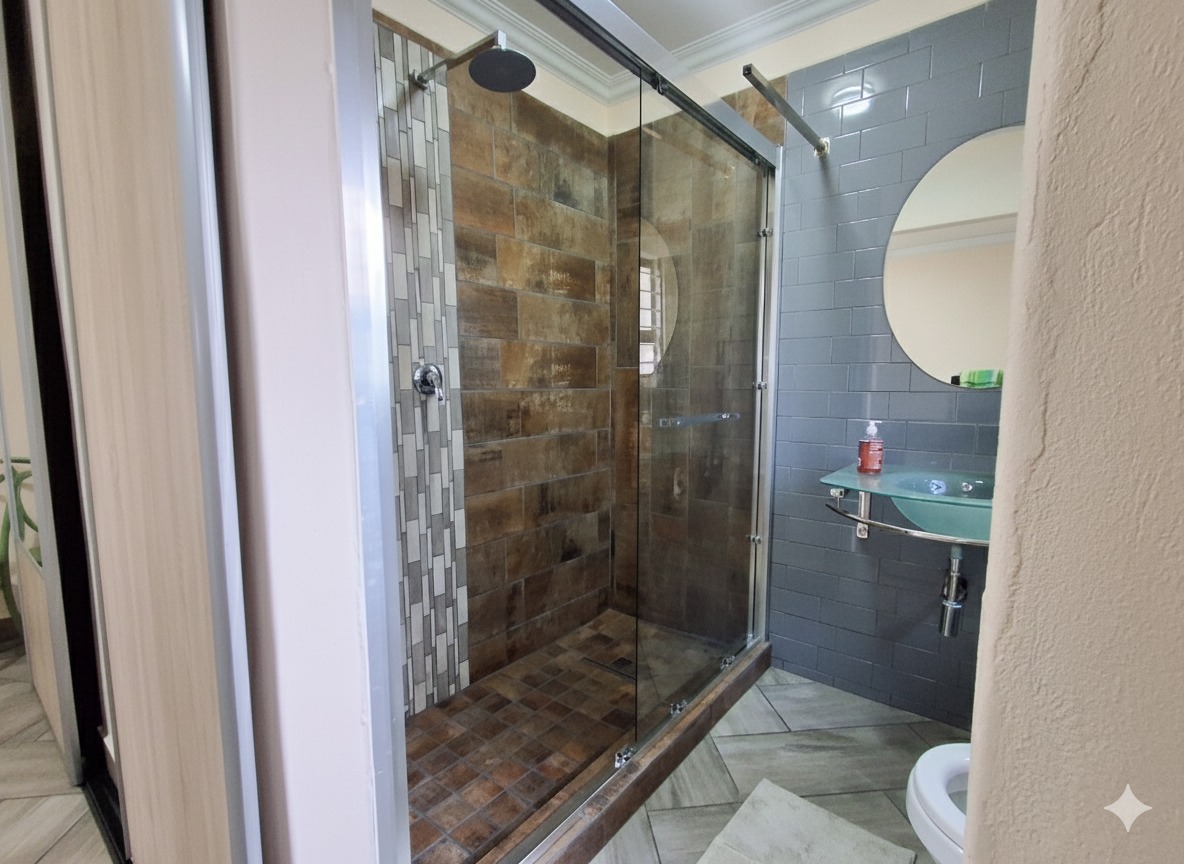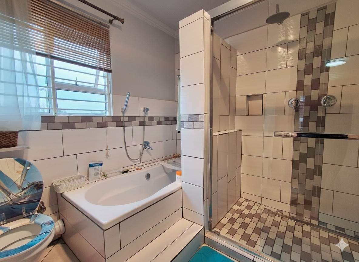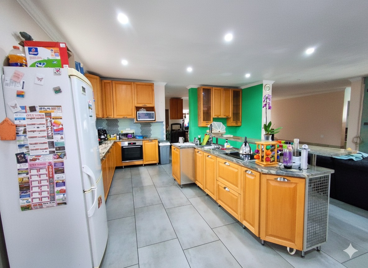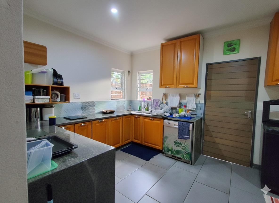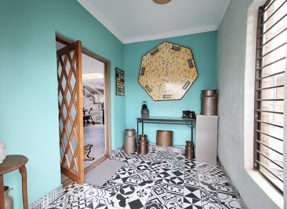 Discover this exceptional 5-bedroom, 6-bathroom residence nestled within a secure complex in the sought-after Rynfield, Benoni. Boasting a generous 660 sqm under roof on an 800 sqm erf, this home immediately impresses with its striking modern design, extensive glass elements, and durable brick exterior, ensuring excellent kerb appeal. The interior offers versatile living with two spacious lounges, two dining rooms, and two fully equipped kitchens, providing ample space for family life and entertaining. The vibrant entryway, featuring unique patterned floor tiles and a warm wooden door, sets an inviting tone. Each of the five bedrooms is complemented by six well-appointed bathrooms, ensuring comfort and privacy for all residents. The kitchens are designed for functionality and style, offering extensive storage, granite countertops, and modern tiled flooring. Natural light floods the living spaces, enhancing the contemporary feel. Step outside to a private outdoor oasis, perfect for relaxation and entertainment. Enjoy the swimming pool with an adjoining jacuzzi, set within a low-maintenance paved courtyard. The property also features a dedicated braai room and a modern balcony with glass railings, ideal for enjoying the scenic views. A well-maintained garden and paved driveway complete the exterior. Security and sustainability are paramount in this home. It benefits from being in a security complex, with additional features like electric fencing, an access gate, alarm system, CCTV, burglar bars, and a security gate. Eco-conscious living is supported by solar panels, a battery inverter, a solar geyser, and a rainwater harvesting system. Fibre connectivity is also available. Rynfield offers a desirable suburban lifestyle in Benoni, known for its convenient amenities and community atmosphere. Key Features: * 5 Bedrooms, 6 Bathrooms * 2 Kitchens, 2 Lounges, 2 Dining Rooms * Private Swimming Pool with Jacuzzi * Solar Panels, Inverter & Solar Geyser * Rainwater Harvesting System * Secure Complex with CCTV & Alarm * Built-in Braai Room * Balcony with Scenic Views * 3 Garages & 1 Parking * Fibre Ready