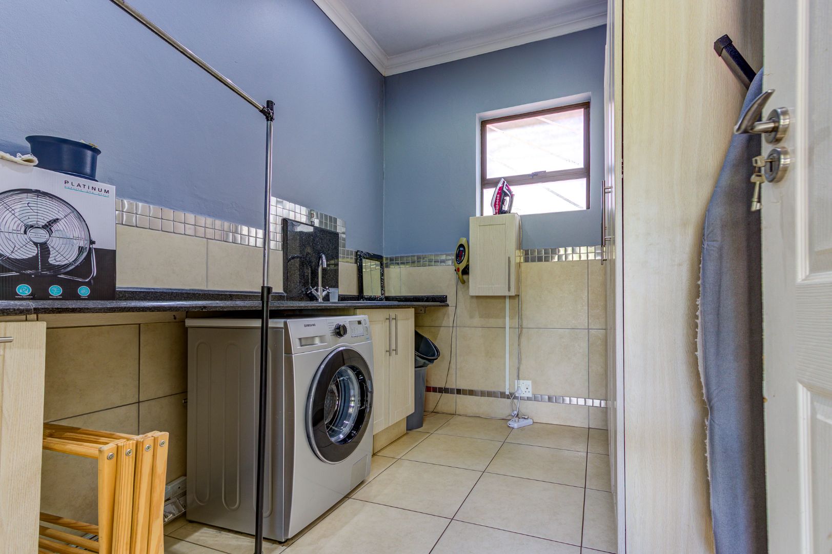 The modern, spacious kitchen is the heart of the home, featuring granite countertops, a central island, gas hob with extractor fan, and a separate laundry room for added convenience.