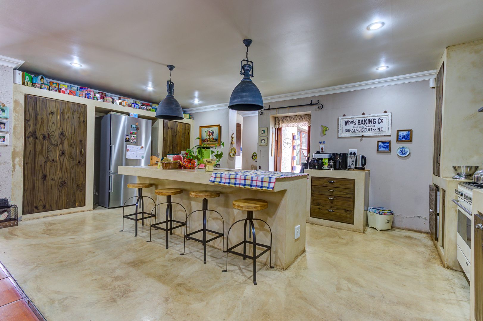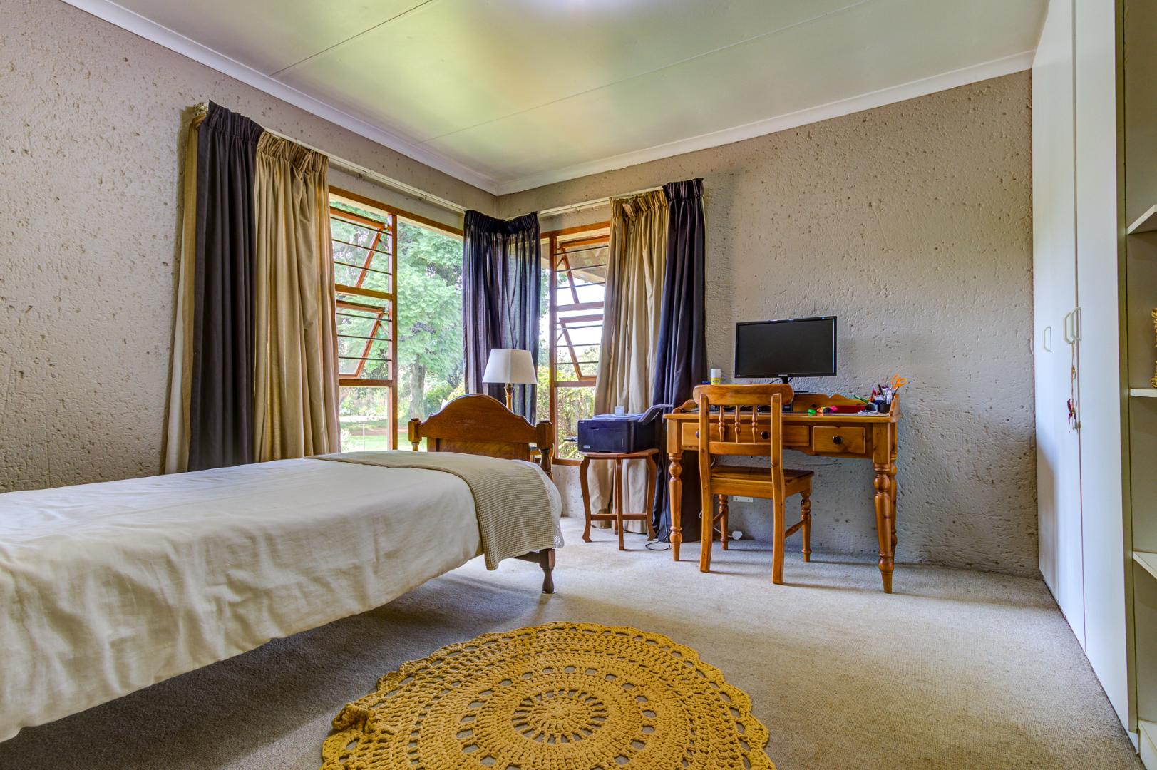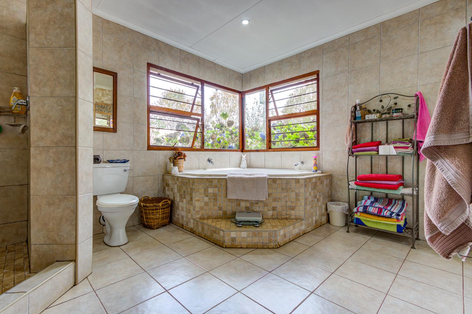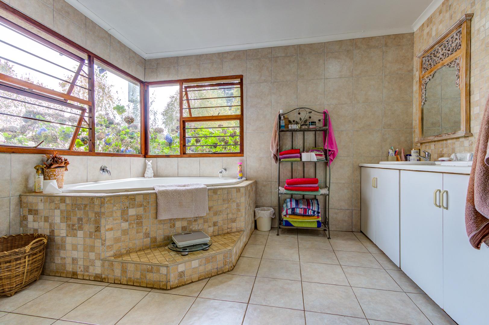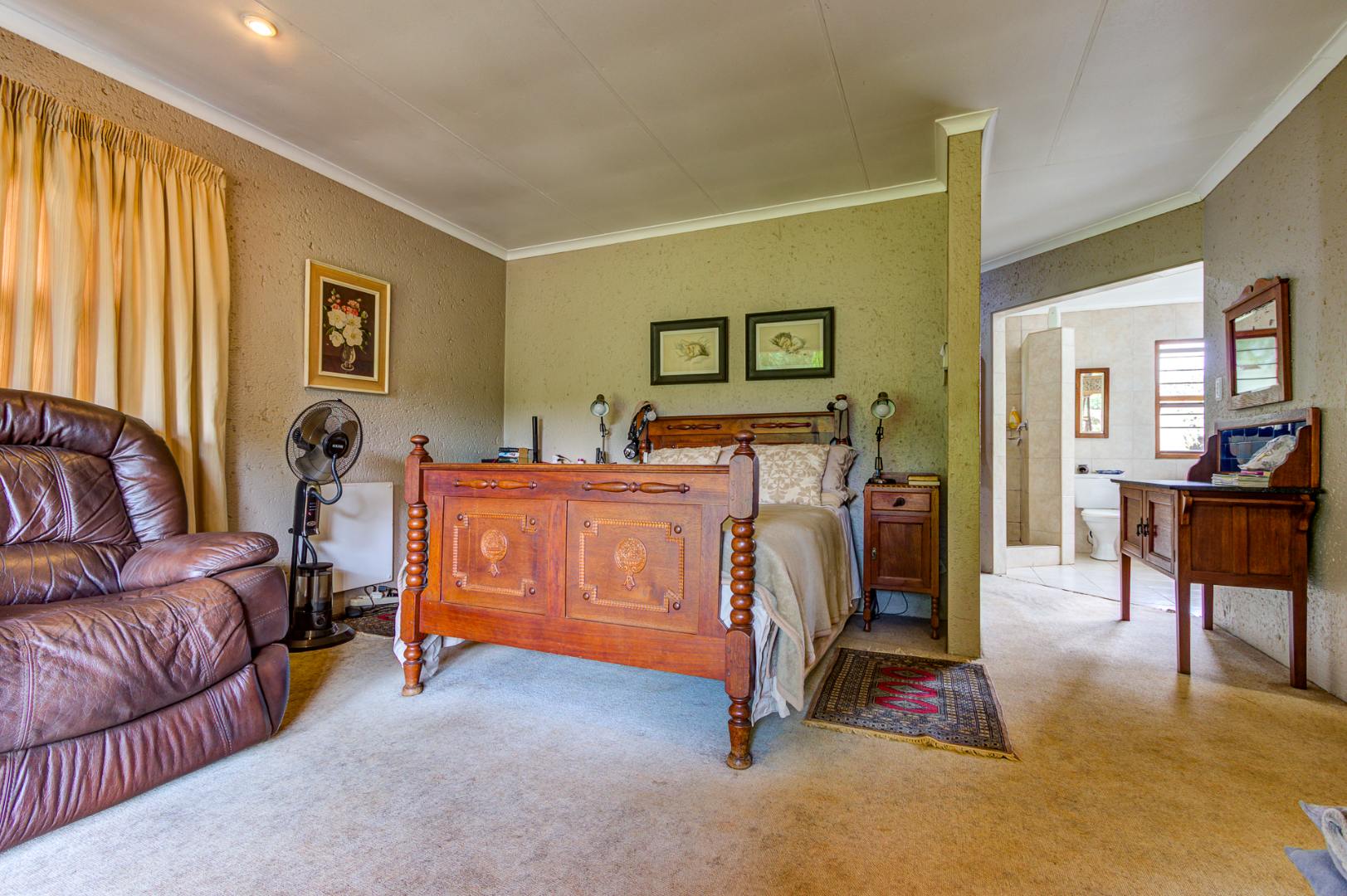 The culinary heart of this home is a dream for the most discerning chef. The kitchen boasts exquisite epoxy floors and work surfaces, complemented by a dedicated scullery. Rich dark walnut cabinetry provides a striking contrast to the sophisticated cream décor, creating an ambiance of timeless elegance. Equipped with a gas hob and an electric oven, it promises both functionality and style. The property also features garaging for three vehicles, with a tandem facility accommodating two smaller cars, three-phase power, two boreholes, and fibre connectivity, ensuring modern convenience and self-sufficiency. This exceptional property exudes a unique allure that truly must be experienced firsthand.
