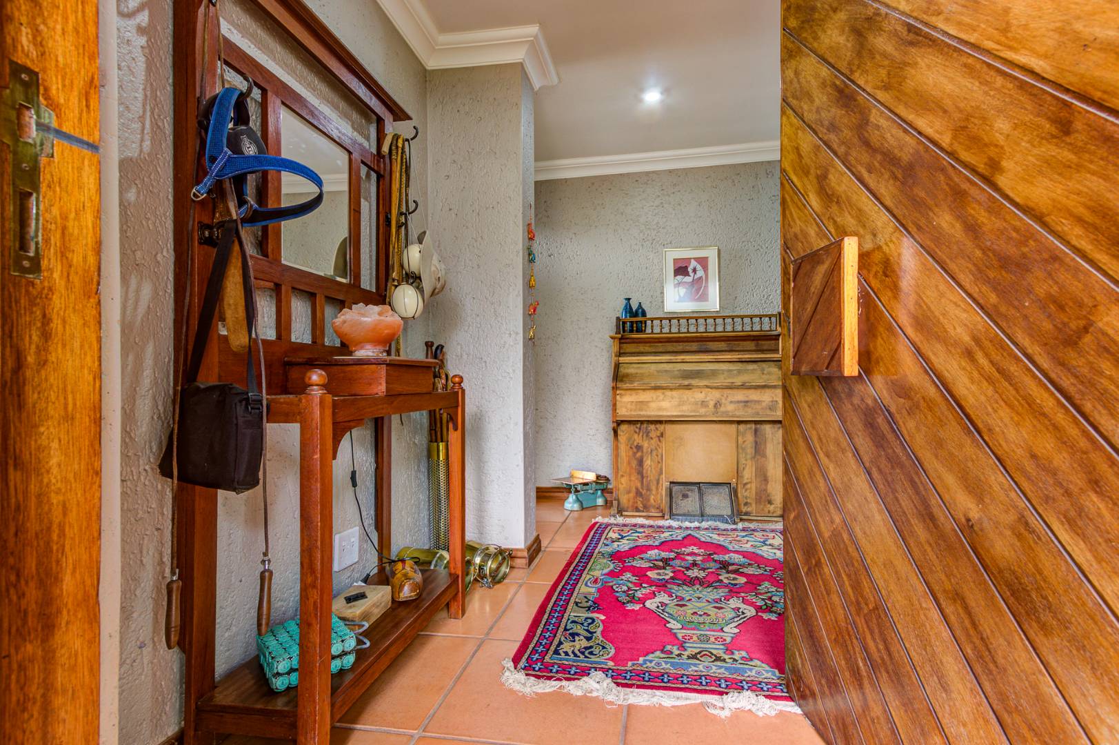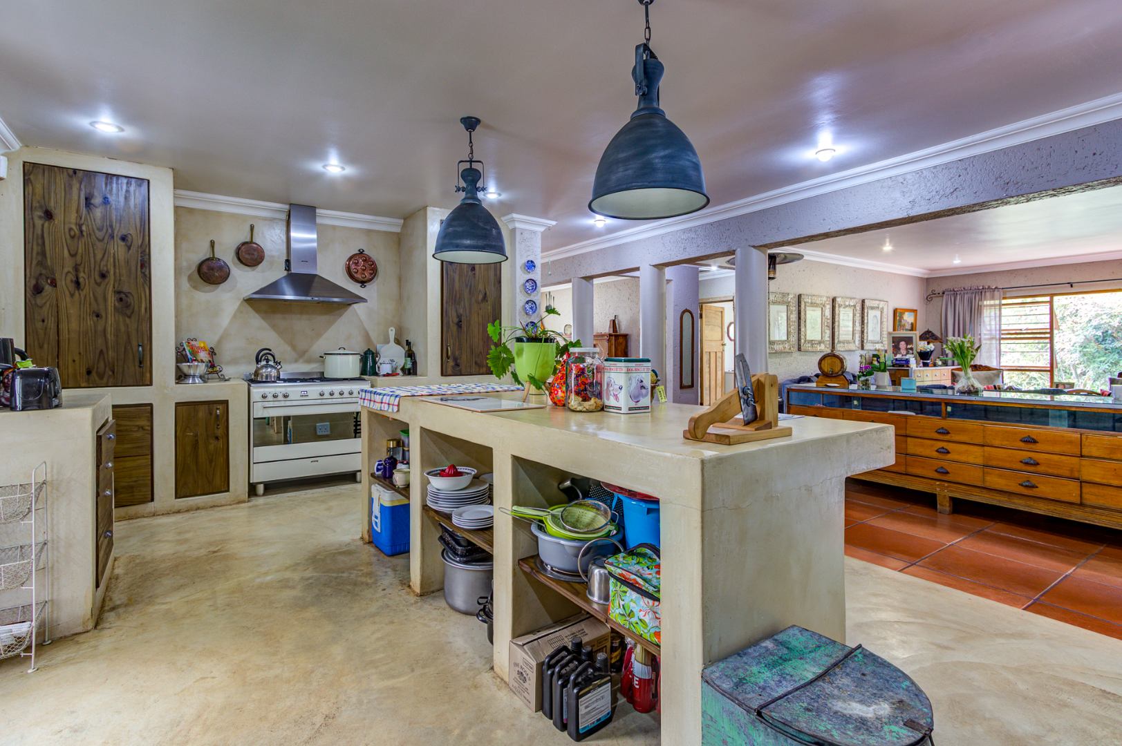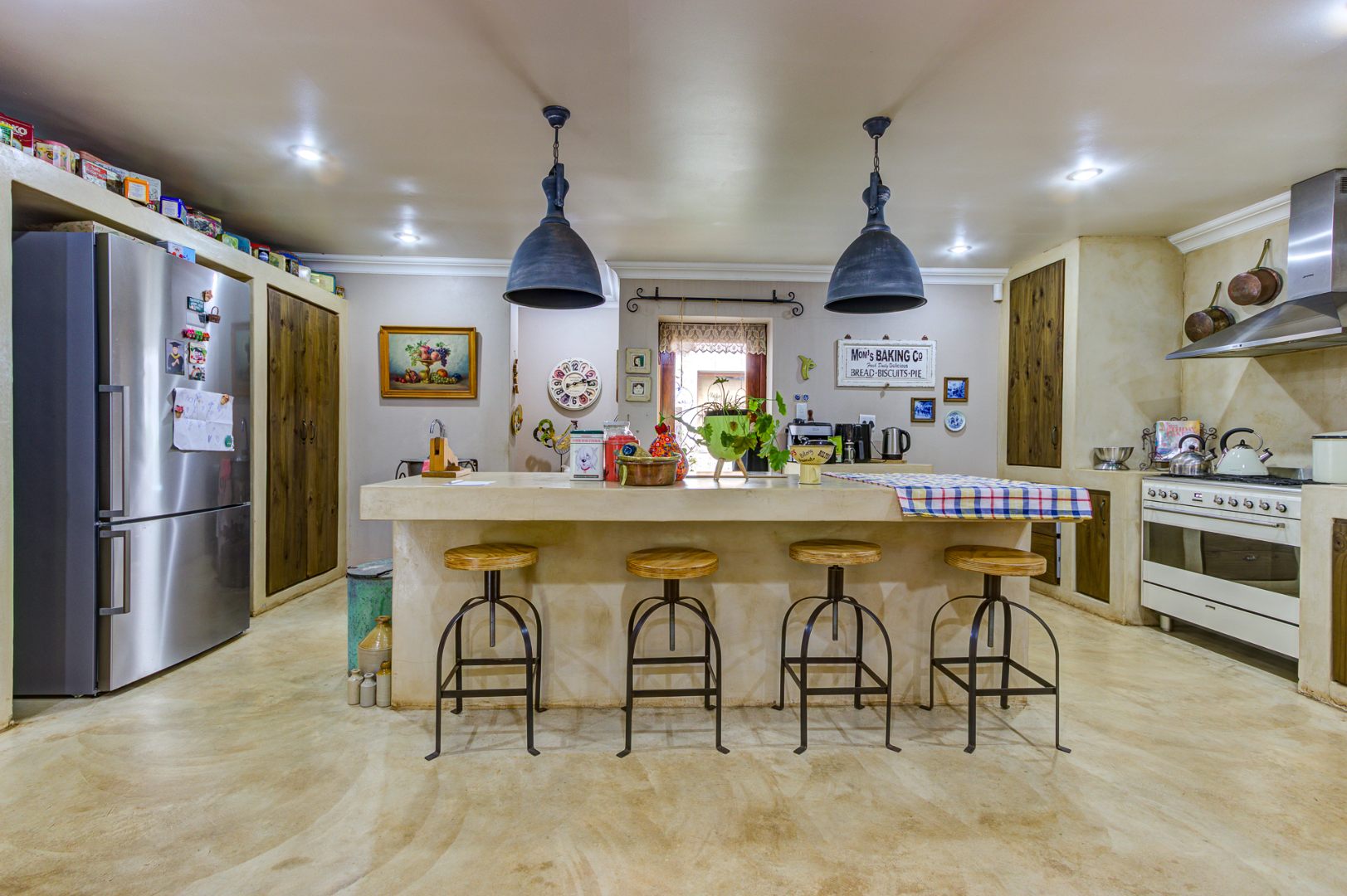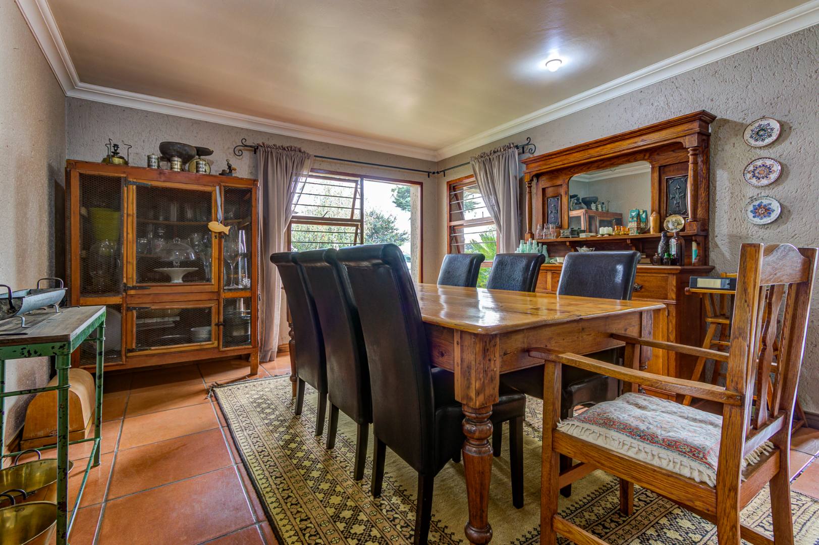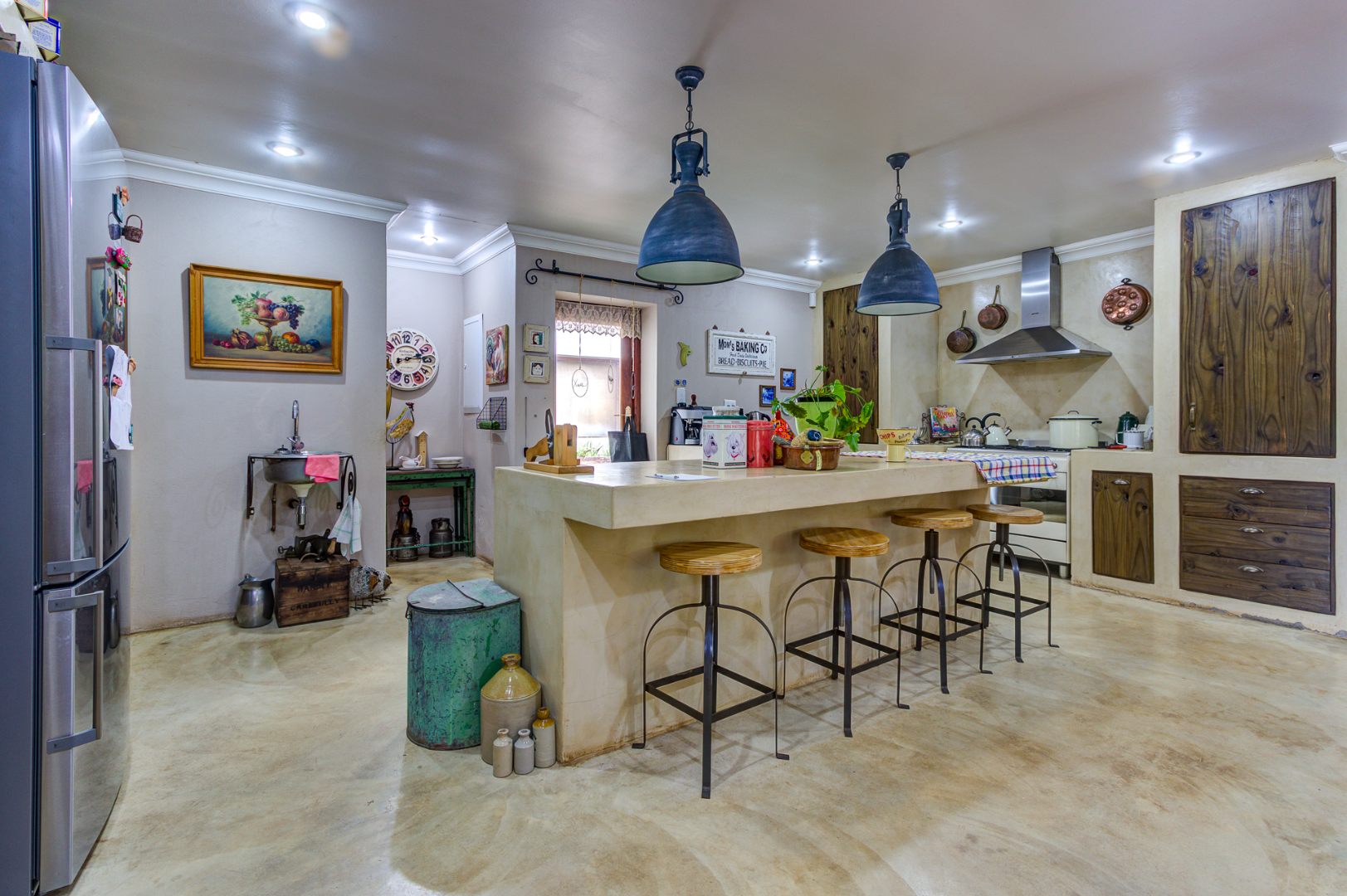 The culinary heart of this home is a dream for the most discerning chef. The kitchen boasts exquisite epoxy floors and work surfaces, complemented by a dedicated scullery. Rich dark walnut cabinetry provides a striking contrast to the sophisticated cream décor, creating an ambiance of timeless elegance. Equipped with a gas hob and an electric oven, it promises both functionality and style. The property also features garaging for three vehicles, with a tandem facility accommodating two smaller cars, three-phase power, two boreholes, and fibre connectivity, ensuring modern convenience and self-sufficiency. This exceptional property exudes a unique allure that truly must be experienced firsthand.