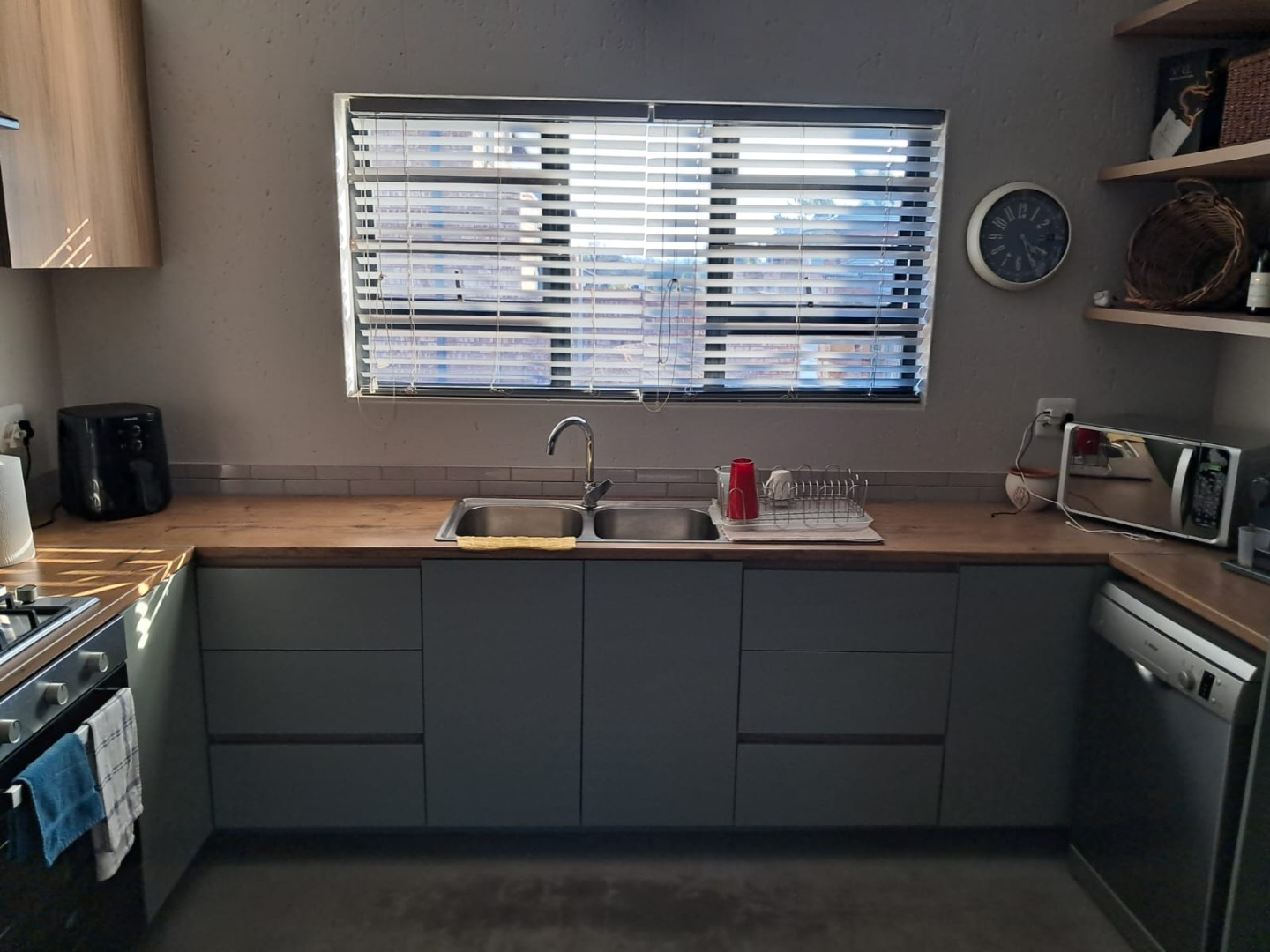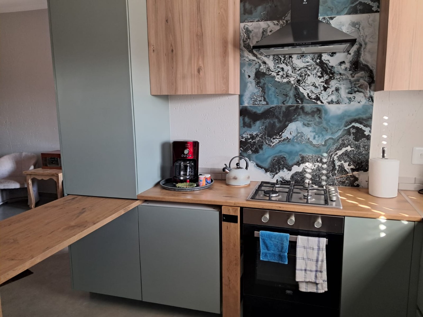 - Modern Kitchen with Gas Stove and Wooden Tops