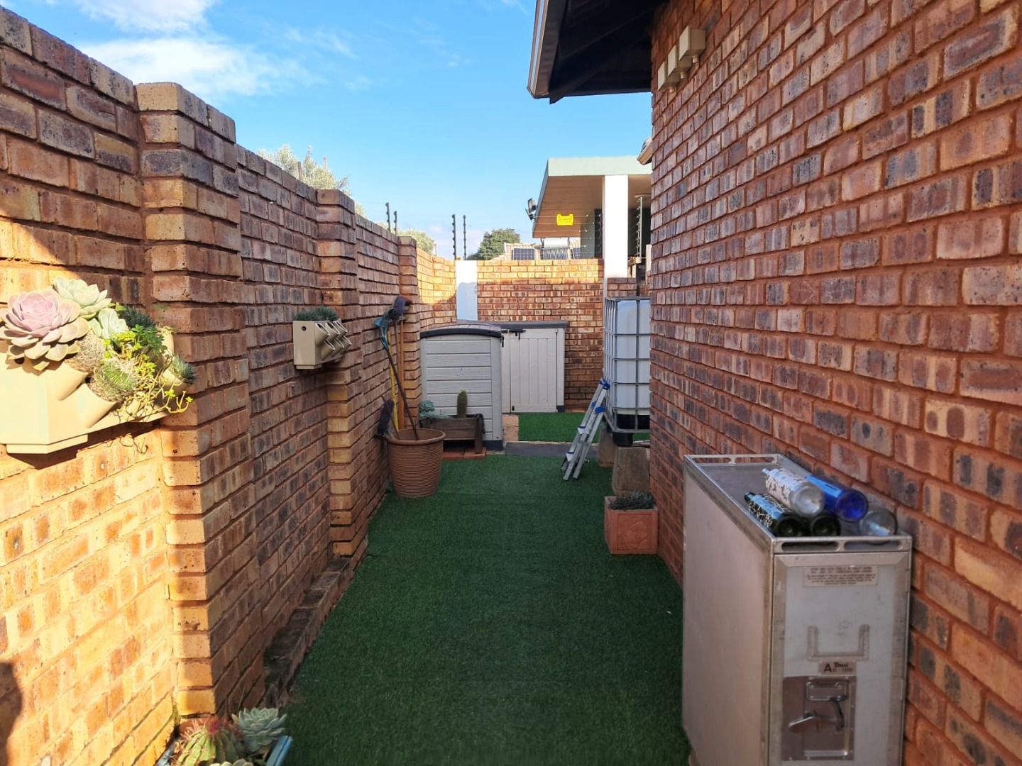 Step outside to a private patio and garden area, providing a serene outdoor space for leisure. The property is pet-friendly and features low-maintenance semi face brick construction. Practical amenities include a spacious double garage that opens up into the garden, a solar geyser for energy efficiency, a water tank, and prepaid electricity. The home is also fibre-ready, ensuring seamless connectivity.