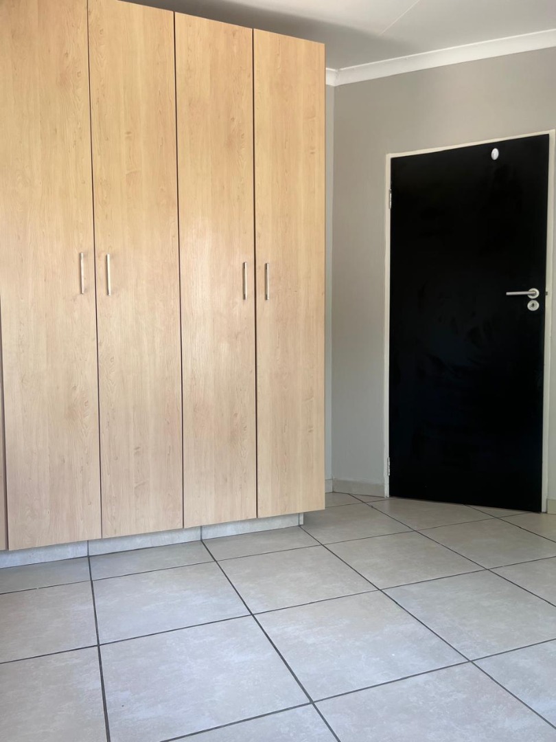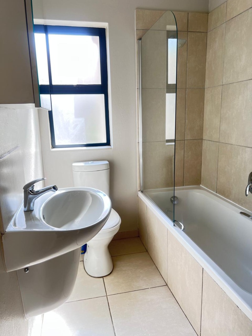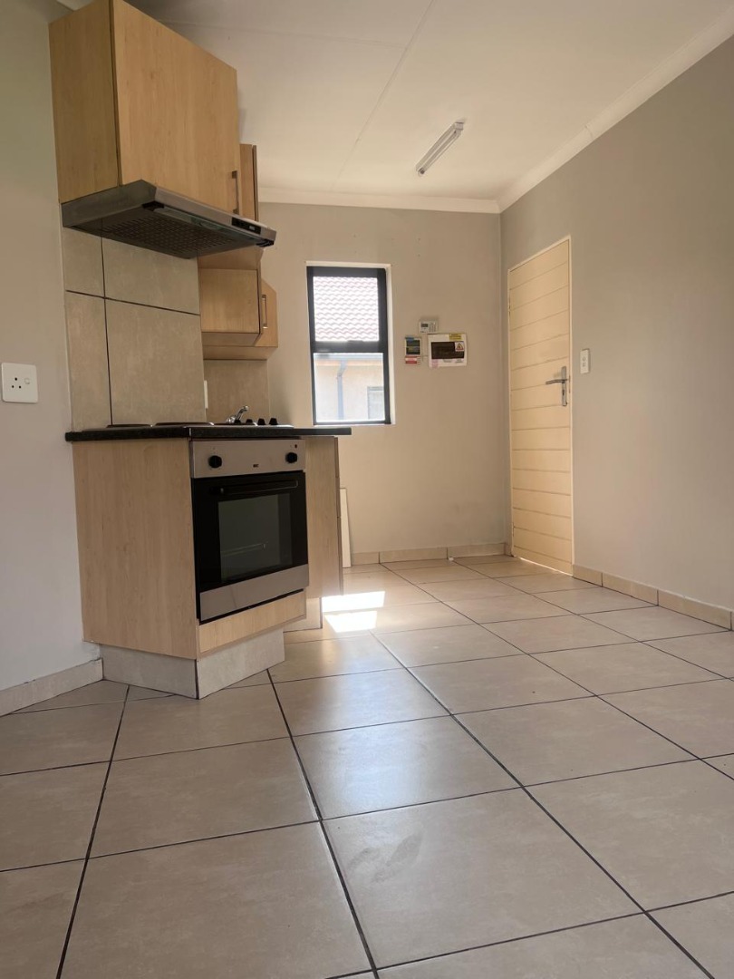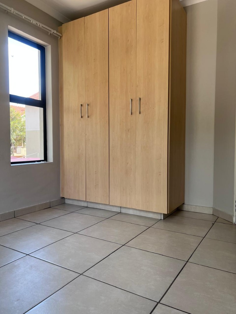 Discover comfortable living in this secure two-bedroom apartment located within a well-maintained complex in The Stewards, Benoni. The property offers a modern and functional design, ideal for individuals or small families seeking convenience and security. Upon arrival, residents are greeted by a secured entrance featuring a guardhouse, boom gate, and pedestrian access, ensuring peace of mind. The complex boasts well-kept exteriors, green lawn areas, and dedicated covered parking bays, enhancing its kerb appeal. Inside, the 44 sqm unit presents a thoughtfully designed layout. The lounge area, with its neutral walls and tiled flooring, provides a versatile space for relaxation and everyday living. The adjacent kitchen is equipped with a built-in oven, hob, and extractor fan, complemented by ample built-in cupboards and a clean, tiled finish. Natural light streams through the windows, creating a bright and inviting atmosphere. This apartment features two comfortable bedrooms, each fitted with practical built-in wardrobes that offer generous storage solutions. Both bedrooms maintain the neutral aesthetic with light-coloured tiled flooring and grey walls, providing a blank canvas for personal touches. The single bathroom is functional and neat, comprising a bathtub with an overhead shower, a wall-mounted sink, and a toilet, all finished with neutral tiling. Residents benefit from the complex's structured and managed environment, including paved internal roads and mature trees that add to the greenery. The secure setting, coupled with dedicated parking, makes this an attractive option for those prioritising safety and accessibility. The Stewards is a residential area in Benoni, offering a suburban lifestyle with convenient access to local amenities and transport routes. Key Features: * Two bedrooms with built-in wardrobes * One bathroom with bath and overhead shower * Compact kitchen with built-in oven, hob, and extractor * Open-plan lounge area * Tiled flooring throughout * Secure gated complex with guardhouse * Dedicated covered parking * Well-maintained communal grounds * Floor Size: 44 sqm