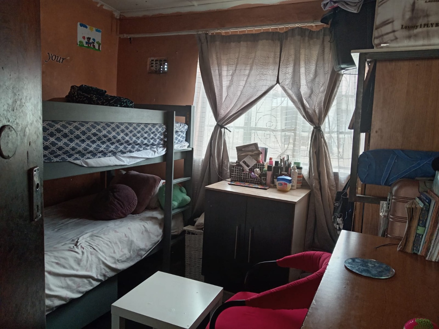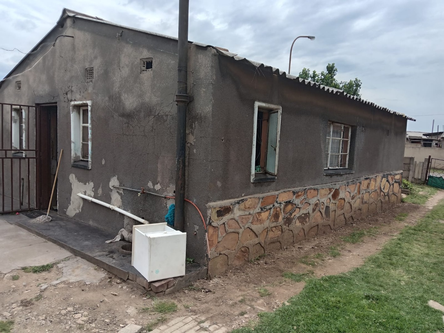 Discover this promising residential property located in the established suburb of Wattville, Benoni. Situated on a 298 sqm erf, this single-story home presents an excellent opportunity for those looking to invest in a renovation project. The exterior features a grey stucco finish with a decorative stone veneer base, complemented by a concrete pre-cast fence and a metal entrance gate, offering privacy and security. While the property shows signs of wear, including an unpaved driveway and some exterior wall imperfections, its foundational elements provide a solid starting point for transformation. Security bars on windows enhance safety. Step inside to an open-plan living and dining area, characterized by a dark wood-paneled ceiling that adds character. This versatile space benefits from ample natural light. The functional kitchen is equipped with essential appliances, including a stovetop, microwave, and washing machine, alongside counter space and a bar stool. While the interior currently displays a dated aesthetic with visible wear and exposed wiring, it offers a blank canvas for modern updates and personal touches. The home comprises two bedrooms and one bathroom. The bedrooms are designed to maximize space, with one featuring a bunk bed setup, ideal for families or shared living. Large windows in both bedrooms ensure natural light, further secured by burglar bars. These functional spaces are ready for a refresh. Wattville, a residential area within Benoni, offers a community setting with convenient access to local amenities and transport routes. This property is perfectly positioned for buyers seeking an affordable entry into the property market or investors looking for a project with significant potential for value addition. Key Features: * 2 Bedrooms * 1 Bathroom * 1 Kitchen * 298 sqm Erf * Fenced Property * Security Bars on Windows * Open-Plan Living Area * Renovation Opportunity