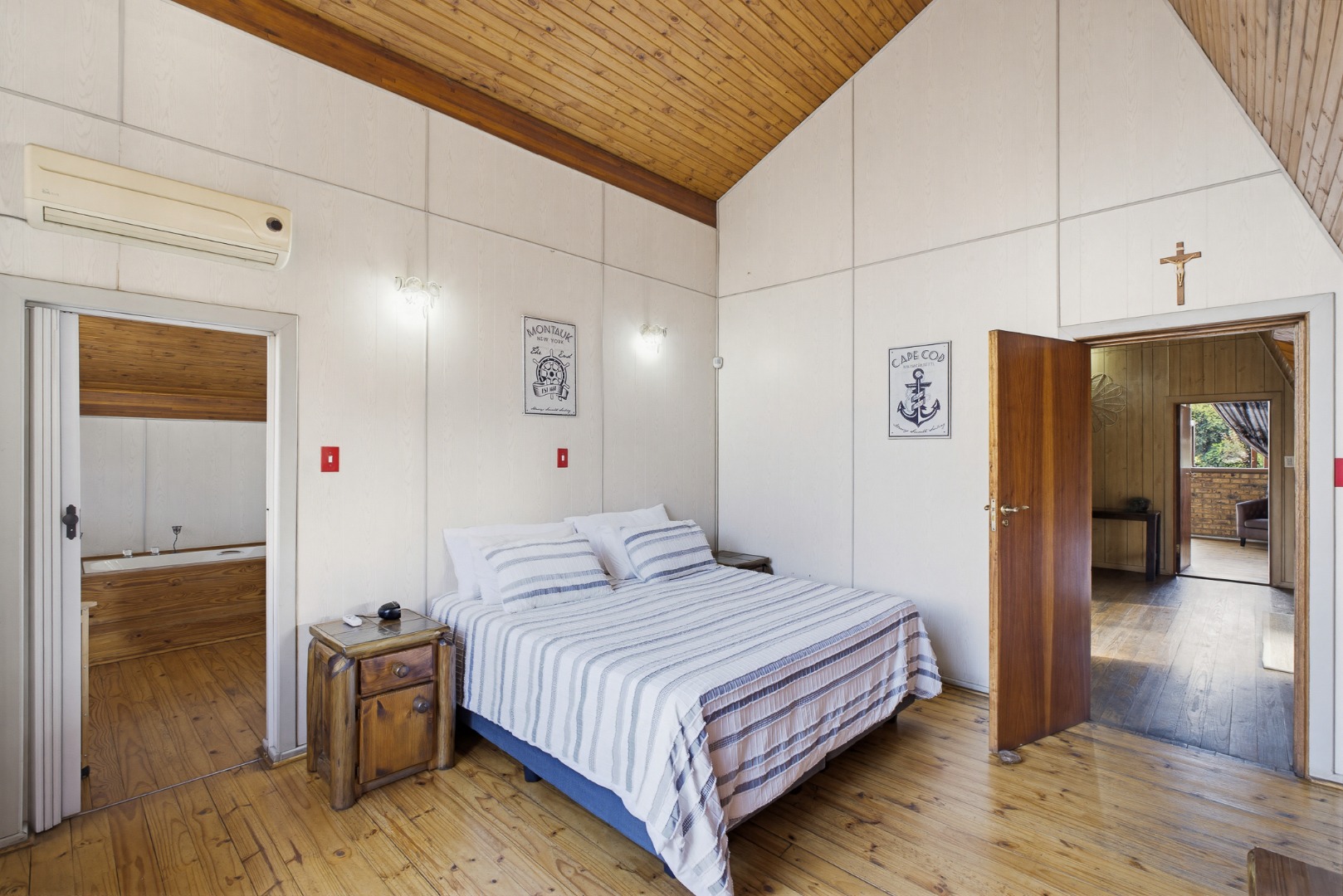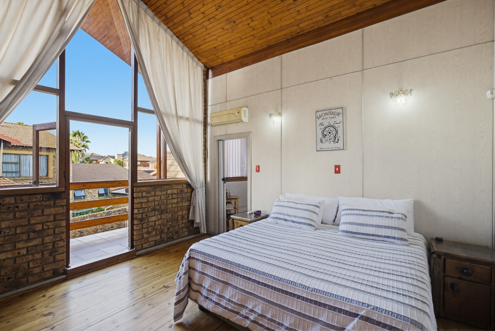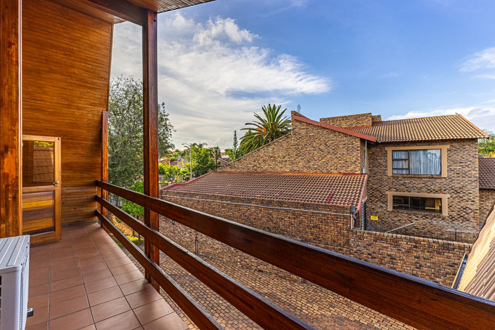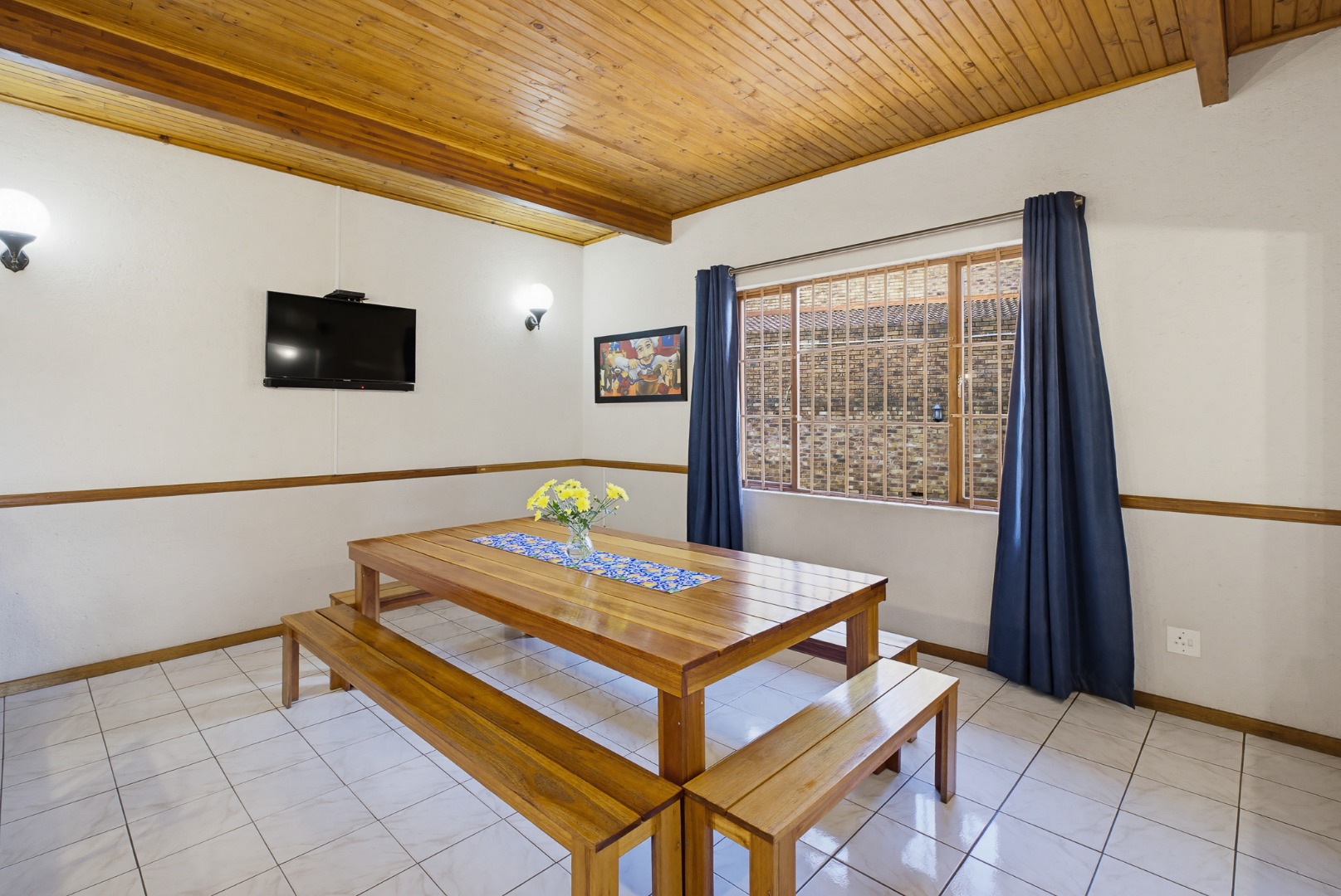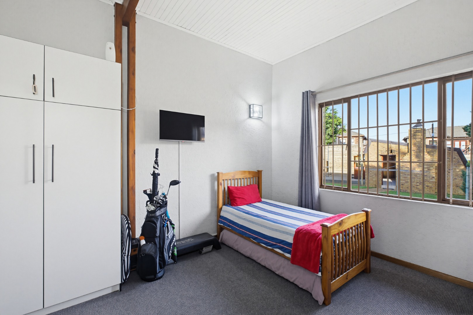 Discover this distinctive 500 sqm residential property in Bartletts, Boksburg, offering a unique A-frame/chalet-style architecture that blends durable brickwork with extensive wooden elements. The exterior boasts multiple covered balconies and ground-floor verandas, providing ample outdoor living space, complemented by a well-maintained garden and mature trees. An extensive paved driveway and covered parking for multiple vehicles enhance both functionality and curb appeal. Step inside to a spacious interior designed for comfortable living. The open-plan layout seamlessly connects two lounges, a dining room, and a family/TV room. A striking spiral wooden staircase serves as a central architectural feature, leading to the upper levels. Warm wooden ceilings and exposed beams create a cozy, rustic aesthetic throughout, while practical tiled flooring ensures easy maintenance. The home also includes a built-in bar, perfect for entertaining guests. This residence offers four well-proportioned bedrooms and three bathrooms, including one en-suite, providing ample accommodation for a family. The bedrooms are bright, with natural light, and feature neutral decor, allowing for personalization. A dedicated study provides a quiet space for work or hobbies, catering to modern lifestyle needs. The generous 1354 sqm erf size provides a private outdoor oasis. Enjoy the inviting swimming pool, perfect for relaxation and recreation. The property boasts a built-in braai and a dedicated braai room, ideal for outdoor entertaining. The well-kept garden and mature landscaping offer a serene environment, and pets are welcome. Located within a security complex with an access gate, this home offers enhanced peace of mind. Modern connectivity is ensured with fibre internet availability. Bartletts, Boksburg, is a well-established suburb in South Africa, known for its residential appeal and convenient access to local amenities. This area offers a balanced lifestyle, combining suburban tranquility with proximity to urban conveniences. Key Features: * 4 Bedrooms, 3 Bathrooms (1 en-suite) * Distinctive A-frame/chalet architecture * 2 Lounges, Dining Room, Family/TV Room * Open-plan living with built-in bar * Spiral wooden staircase and wood ceilings * Swimming pool and established garden * Built-in braai and braai room * Double garage and 4 parking spaces * Fibre internet ready * Located in a security complex