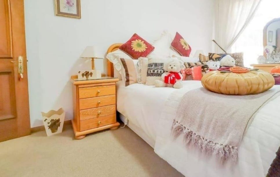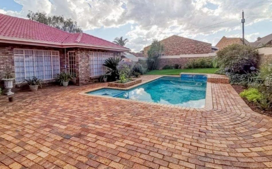 Discover this charming 5-bedroom family residence nestled in a peaceful cul-de-sac in Bartletts, Boksburg. The property immediately impresses with its well-maintained, manicured front lawn, attractive paved driveway, and secure brick boundary walls, offering both privacy and curb appeal. This spacious home, set on a generous 1304 sqm erf, provides ample room for comfortable living and entertaining. Inside, the residence features a thoughtful layout designed for family life. It boasts two inviting lounges, a dedicated dining room, and a functional kitchen equipped with extensive light wood cabinetry, a built-in oven/microwave unit, and abundant natural light. Unique architectural elements, such as exposed brick archways, add character throughout the living spaces. The home also includes a dedicated study, perfect for remote work or quiet contemplation, along with a convenient pantry, laundry facilities, and a guest toilet. Accommodation comprises five well-proportioned bedrooms, including one ensuite bathroom, complemented by an additional 1.5 bathrooms. Each bedroom offers a comfortable retreat, with large windows inviting natural light. For leisure and recreation, the property features a private patio, a refreshing swimming pool, and a well-established garden, ideal for outdoor enjoyment. A dedicated home bar area provides an excellent space for social gatherings. Practical amenities include three garages, staff quarters, and an alarm system with a security gate, ensuring peace of mind. Pets are welcome, making this a true family haven in suburban Boksburg. Key Features: * 5 Bedrooms, 2.5 Bathrooms (1 Ensuite) * 2 Lounges, 1 Dining Room, 1 Kitchen * Dedicated Study and Home Bar * Private Swimming Pool and Garden * 3 Garages and Staff Quarters * Alarm System and Security Gate * Paved Driveway and Patio * Erf Size: 1304 sqm, Floor Size: 204 sqm