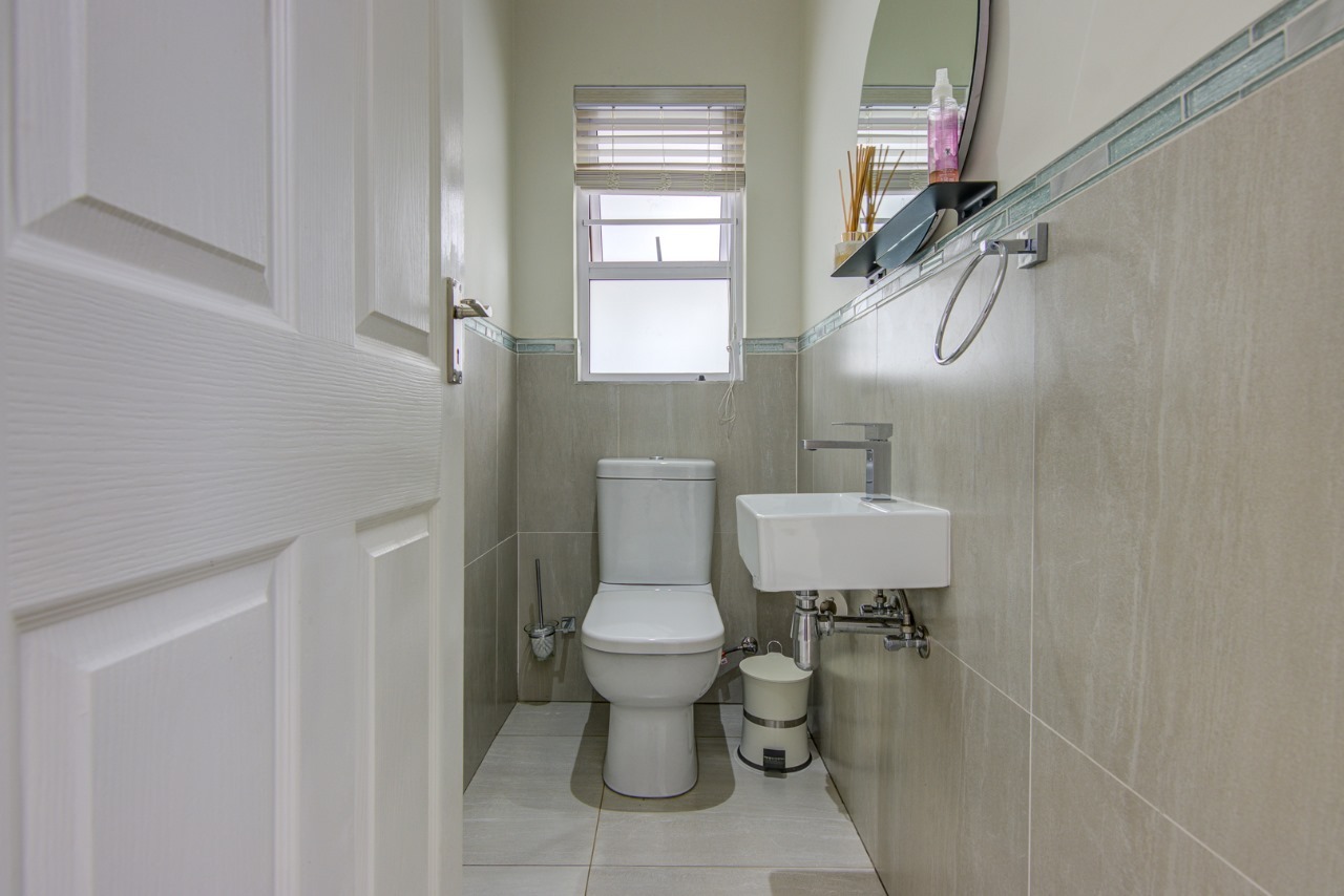 Security and comfort are clearly priorities — aluminium windows, burglar bars on all opening windows, and tasteful outdoor lighting complete the picture. On top of all this, the house includes a 5 kVA solar installation: a serious plus in times of load-shedding and rising electricity costs.