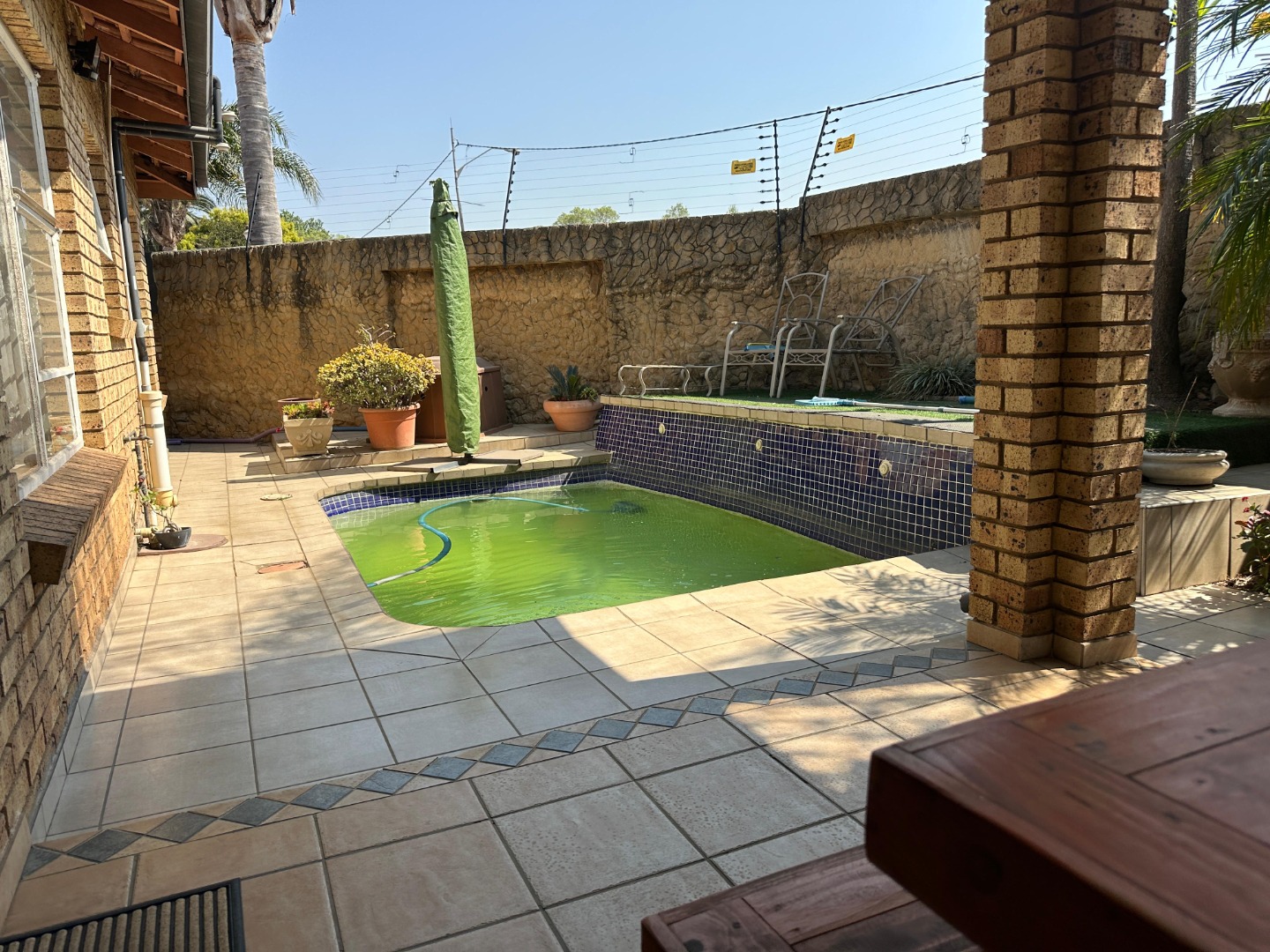 Discover this inviting three-bedroom home situated within a secure estate in Beyers Park, Boksburg. Designed for comfortable family living, the residence features a well-appointed interior with a single lounge and a dedicated dining room, providing ample space for relaxation and entertaining. The functional kitchen is ready to cater to your culinary needs, while the inclusion of a study offers a quiet area for work or hobbies. Air conditioning ensures a pleasant indoor climate throughout the year. The home offers three comfortable bedrooms, providing private retreats for all occupants. Complementing these are a full bathroom and an additional en-suite bathroom, enhancing convenience and privacy for the main bedroom. The layout is practical, catering to everyday living. Outdoor living is well-catered for with a private swimming pool, perfect for enjoying the South African sunshine. An integrated built-in braai area provides an ideal setting for outdoor entertaining and family gatherings. The property also benefits from practical paving and secure parking, including two garages and an additional parking space. Security is a paramount feature of this property, located within a security estate with 24-hour security surveillance. Further peace of mind is provided by an access gate, security gate, and perimeter fencing, ensuring a safe environment for residents. This home offers a blend of comfort and security in a desirable location. Beyers Park, a well-established suburb in Boksburg, offers convenient access to local amenities, schools, and major transport routes, making it a sought-after residential area in South Africa. Key Features: * Three Bedrooms, One Bathroom, One En-suite * Lounge, Dining Room, and Study * Equipped Kitchen * Air Conditioning * Private Swimming Pool * Built-in Braai Area * Two Garages and One Parking Space * 24-Hour Security Estate Living