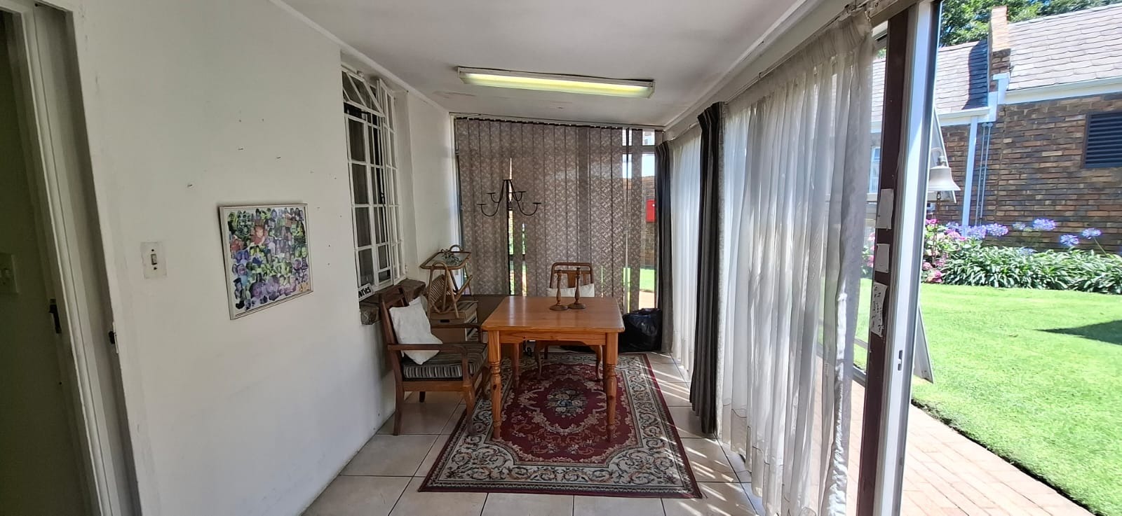 A highlight of this property is the versatile enclosed patio or sunroom, accessible via large sliding doors. This bright space provides ample natural light and direct access to a well-maintained garden, perfect for enjoying the outdoors. The tiled flooring extends into this area, ensuring practicality and easy cleaning, enhancing the indoor-outdoor flow.
