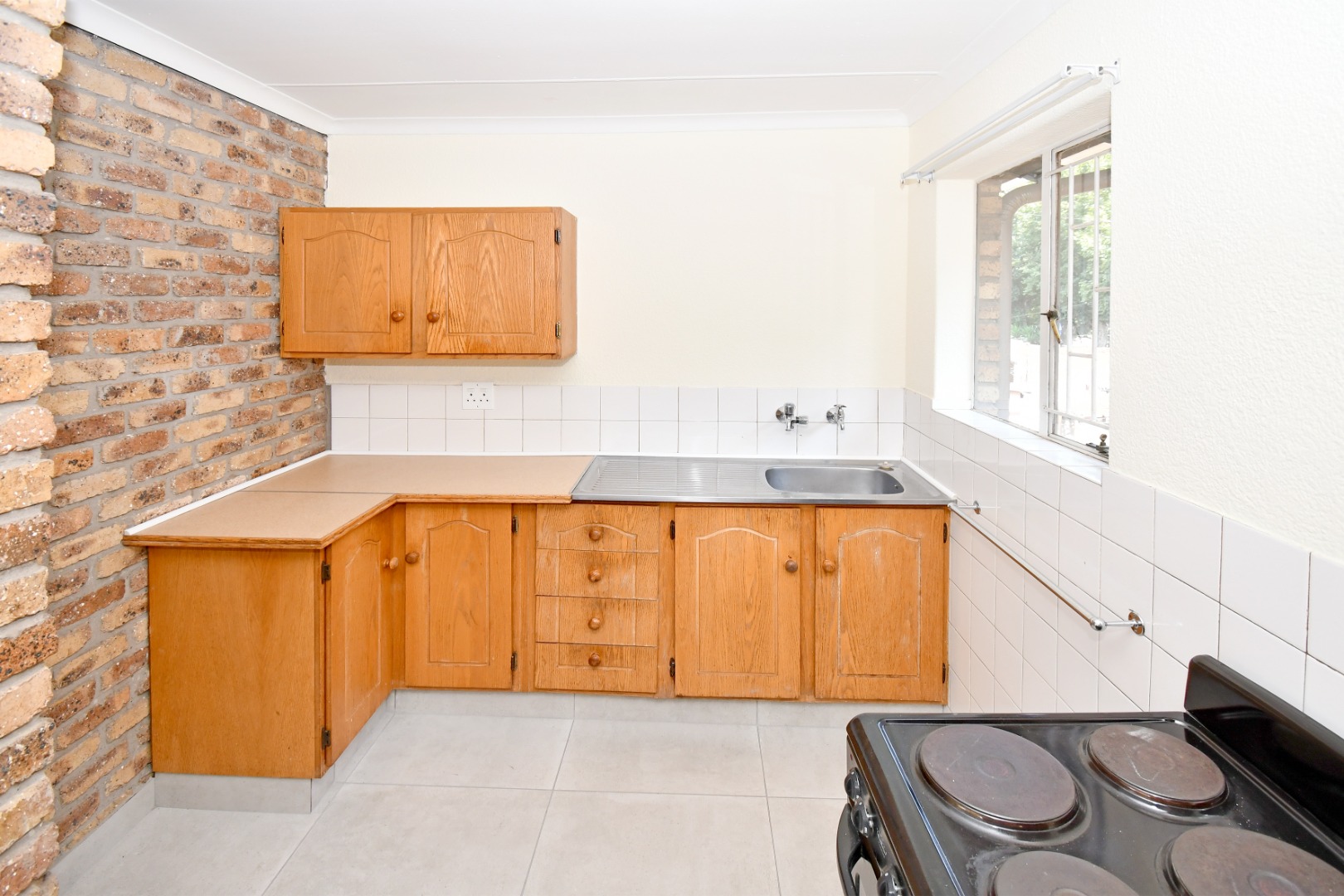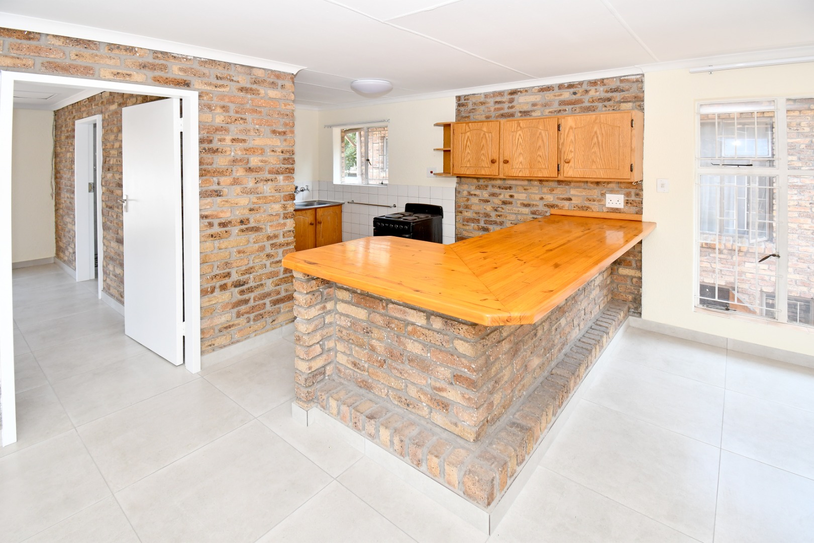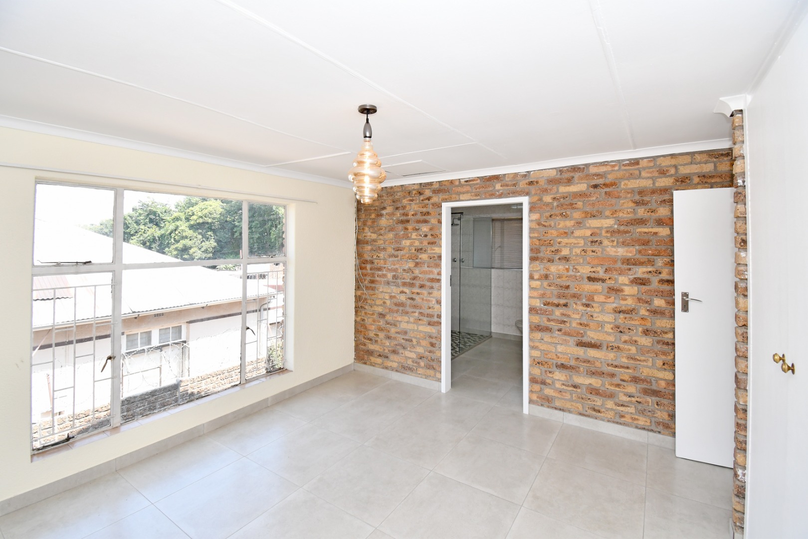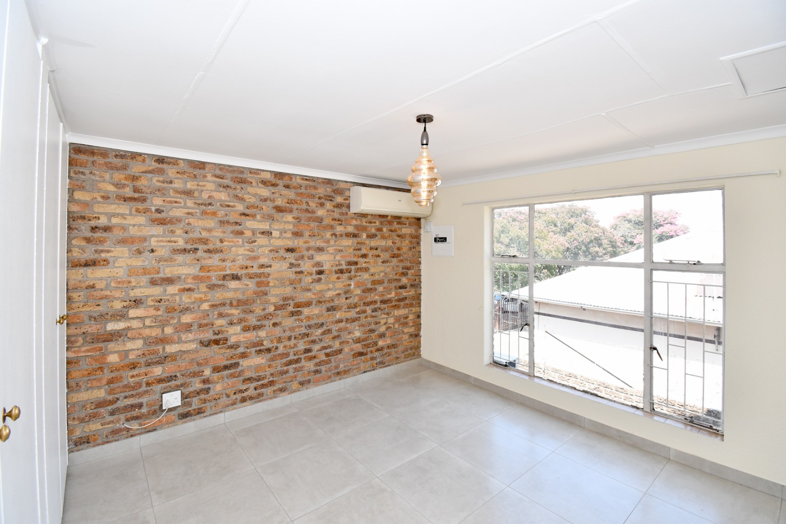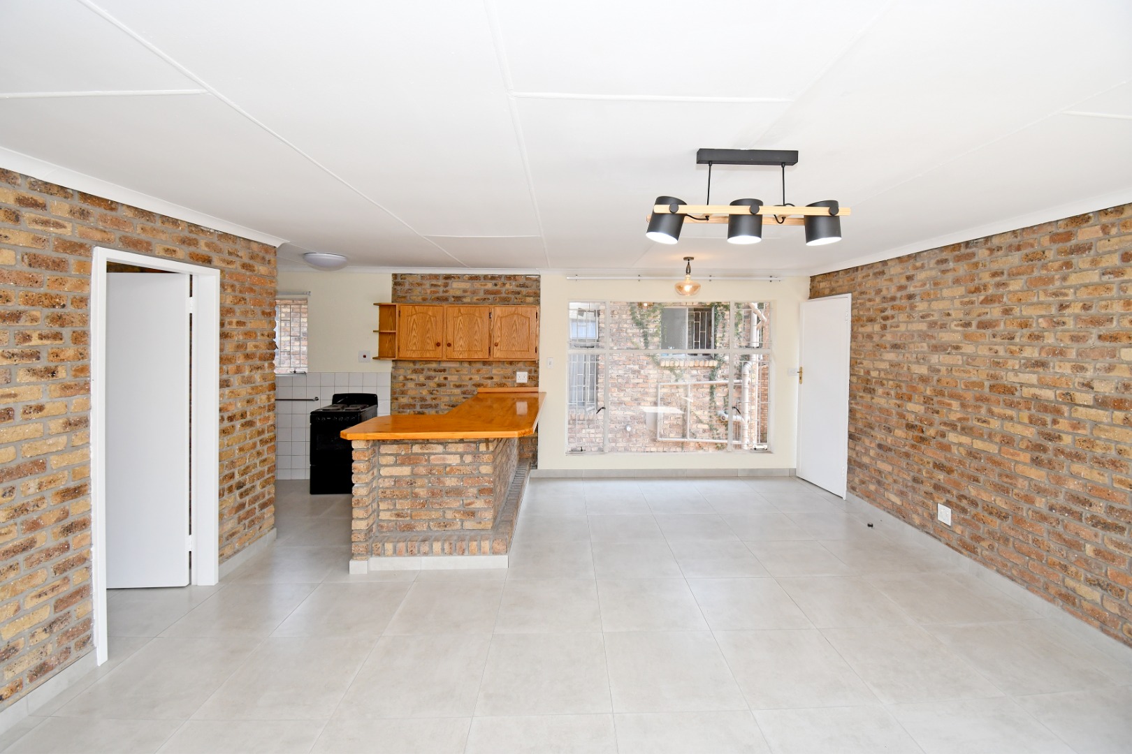 Discover this inviting 81 sqm unit located in a well-situated complex in Boksburg next to St Dominic's school. Designed for modern living, this property features an open-plan layout that connects the living, dining, and kitchen areas. The interior boasts contemporary light grey tiled flooring throughout, complemented by neutral painted walls and distinctive exposed brick accent walls that add character and warmth. Large windows, fitted with security bars for peace of mind, allow abundant natural light to illuminate the space.