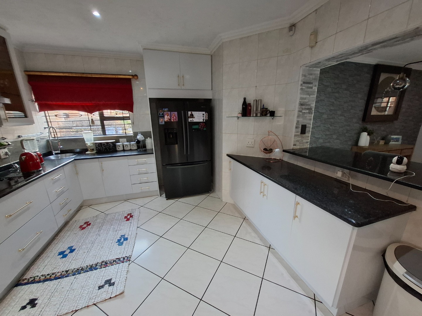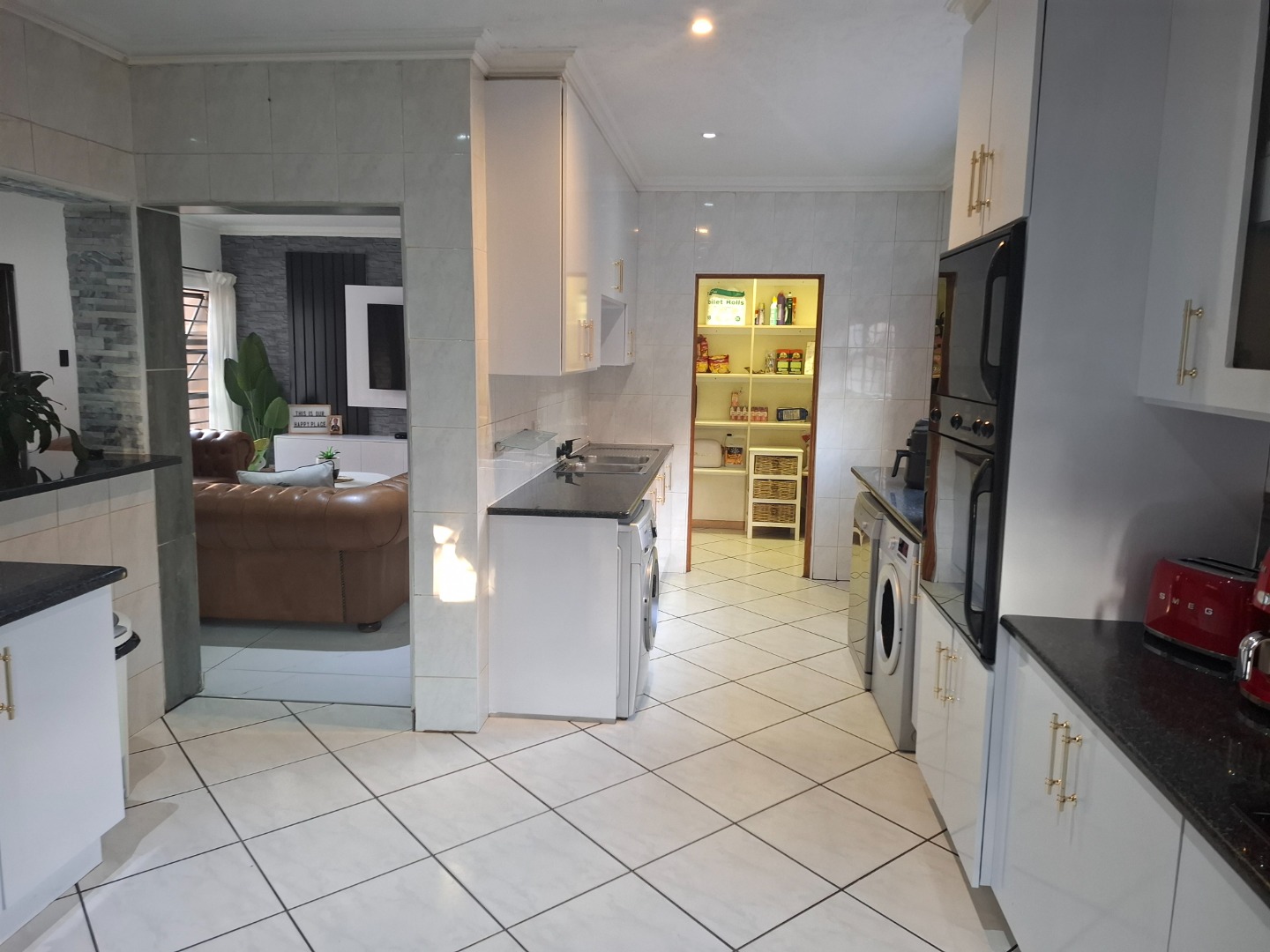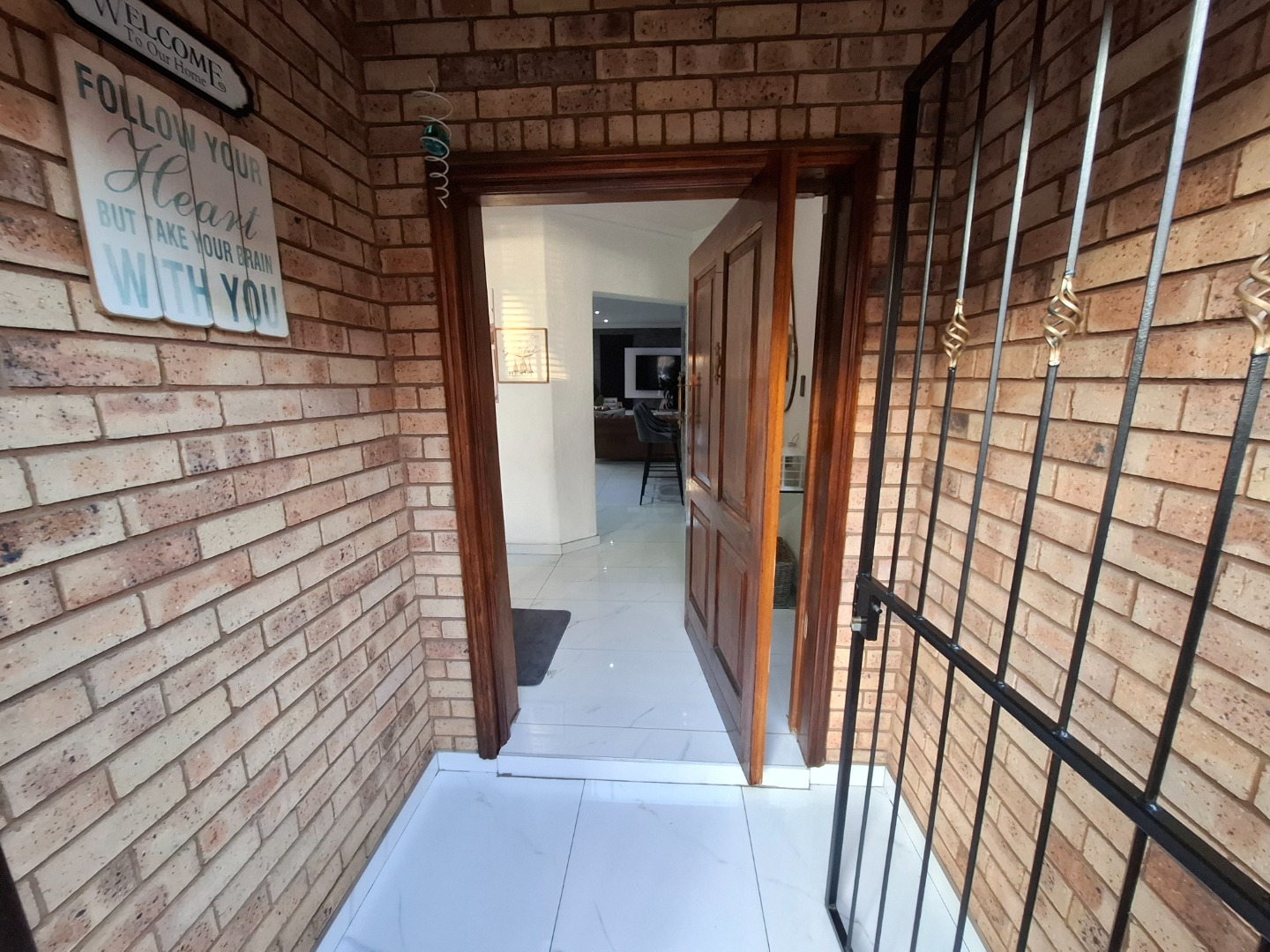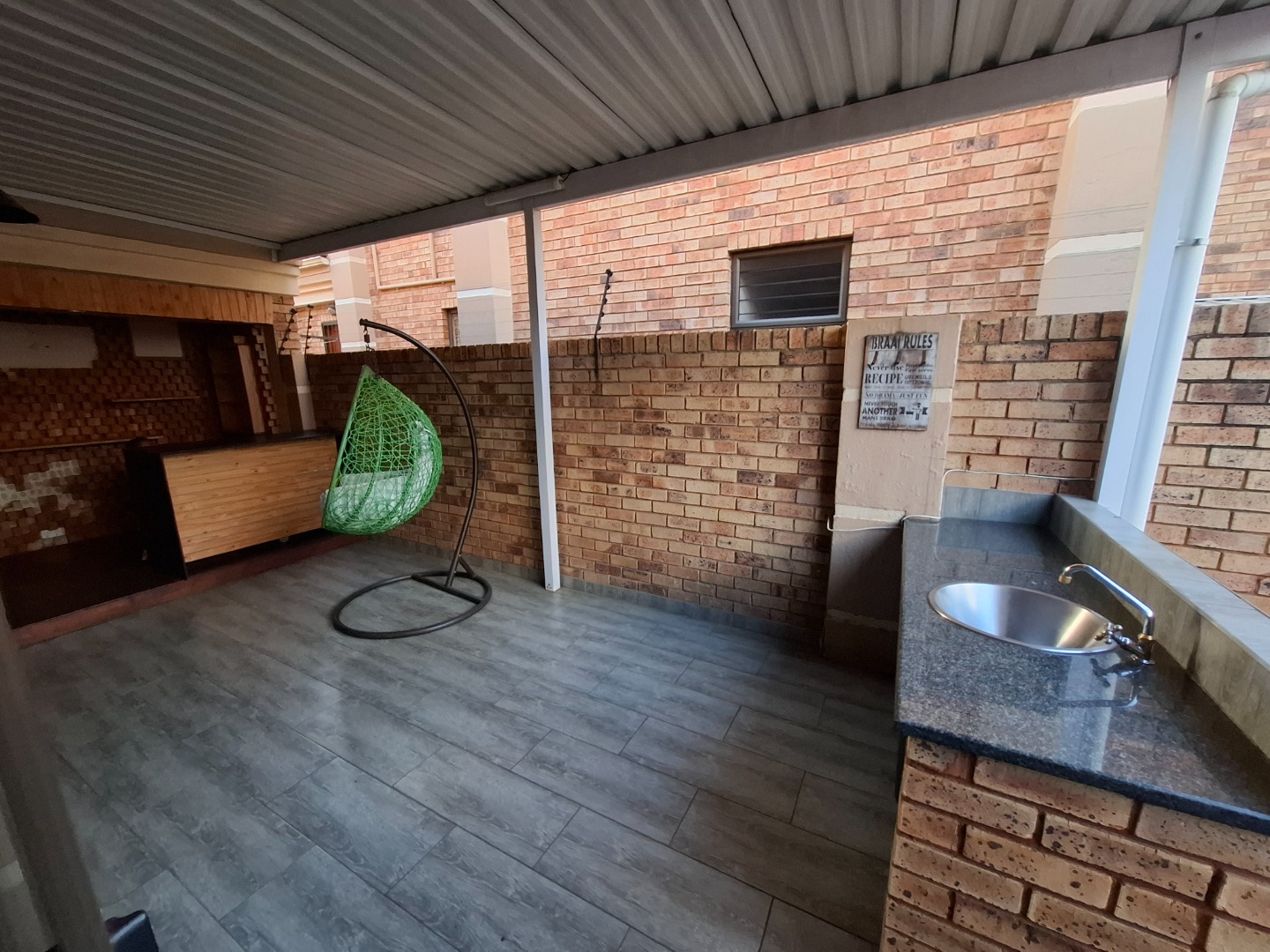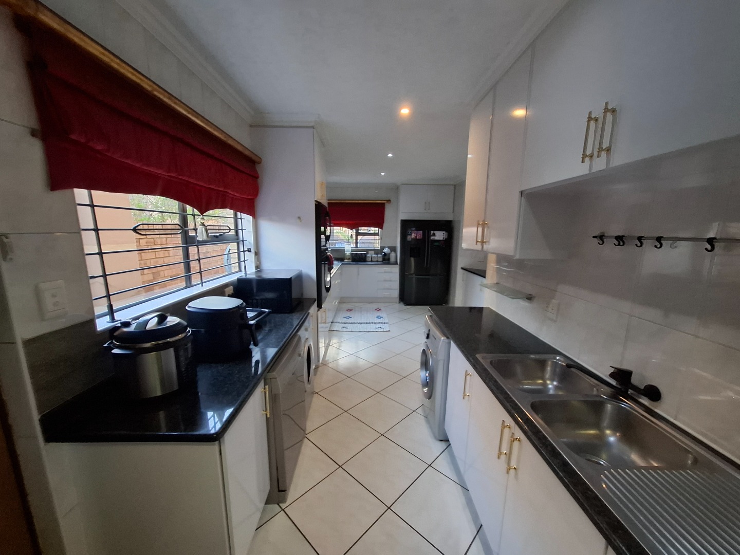 Discover this modern brick and plaster townhouse, ideally situated within a desirable complex in Boksburg West. The property presents excellent kerb appeal with a well-maintained exterior, a paved driveway, a double garage, and an additional shade net carport. A secure gated entrance leads to a solid wooden front door, opening into an inviting entryway with modern white floor tiles and subtle exposed brick accents. The interior boasts a contemporary open-plan layout, seamlessly connecting the living, dining, and kitchen areas. The spacious living room features luxurious leather sofas, a striking grey stone-effect accent wall with a mounted TV, and ample natural light from windows fitted with security bars. Recessed ceiling lights enhance the bright, tiled flooring throughout. The modern dining area, complete with stylish furniture, offers direct access to a private outdoor patio and a refreshing swimming pool, perfect for entertaining. The heart of this home is its sleek, open-plan kitchen, equipped with white cabinetry, black granite countertops, an integrated oven, and a stylish breakfast bar with stone cladding. This functional space ensures convenience for daily living. The townhouse provides three comfortable bedrooms and 2.5 well-appointed bathrooms, designed for modern comfort. Enhanced security, including the gated entrance and burglar bars, offers peace of mind in this convenient location. Key Features: * 3 Bedrooms, 2.5 Bathrooms * Modern Open-Plan Living & Kitchen * Double Garage & Carport * Private Swimming Pool & Patio * Secure Gated Entrance & Burglar Bars * 310 sqm Floor Size