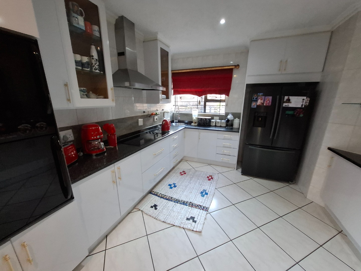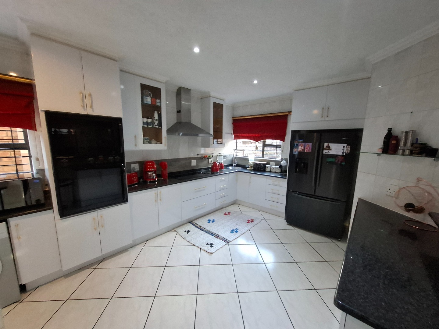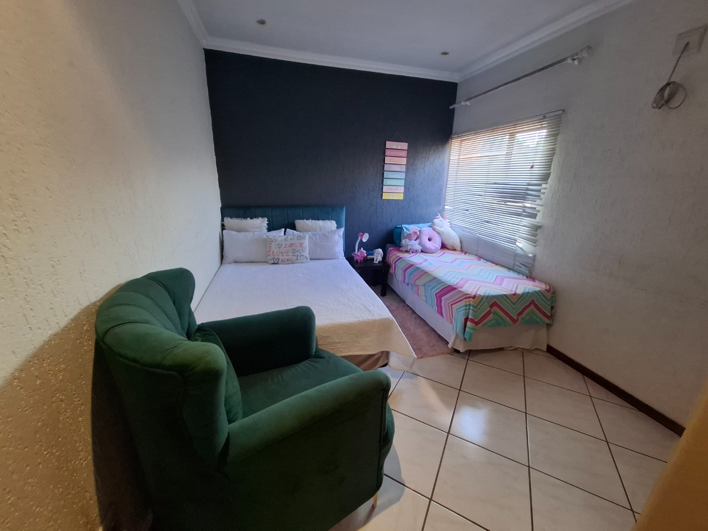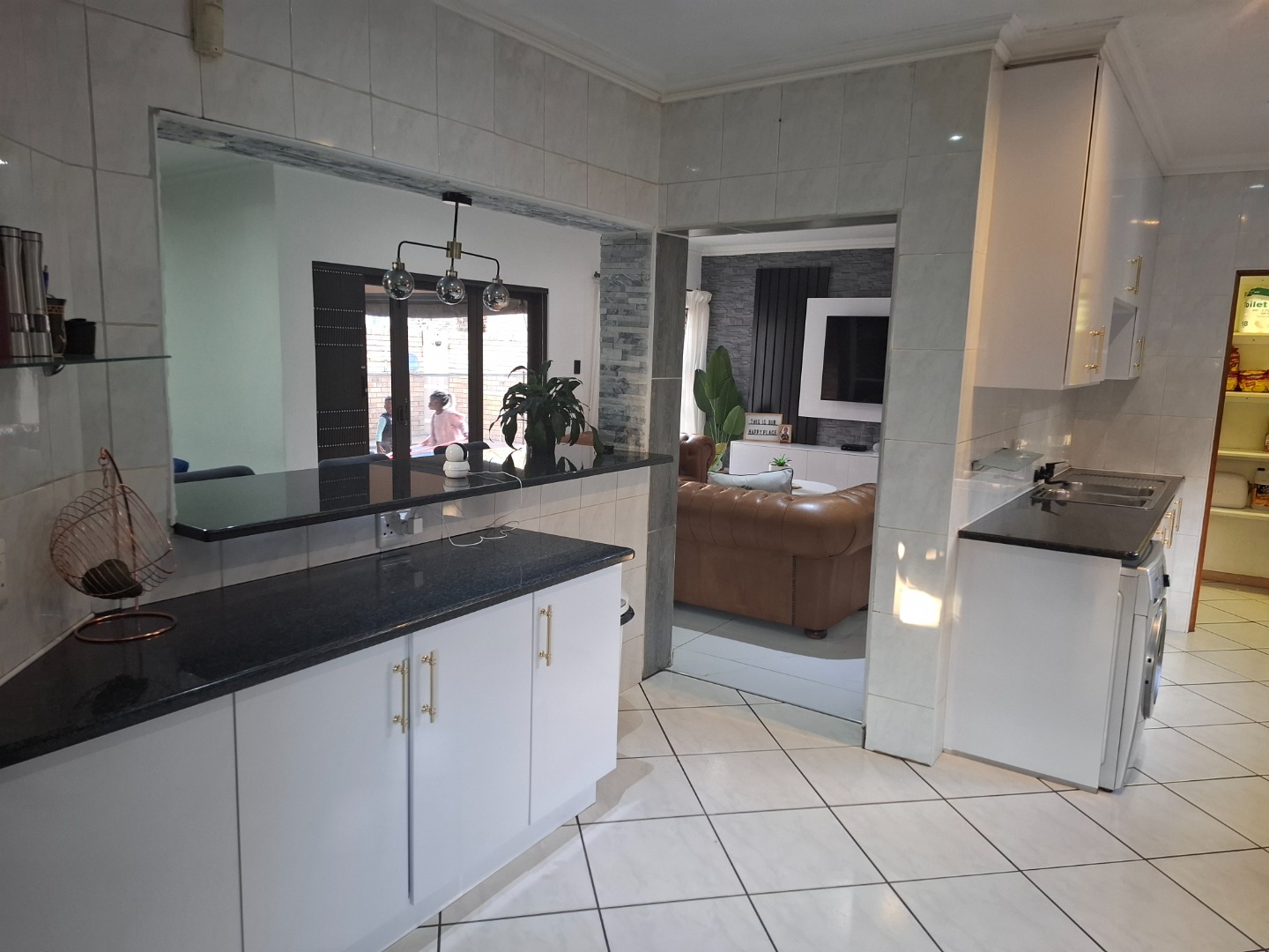 Discover this modern brick and plaster townhouse, ideally situated within a desirable complex in Boksburg West. The property presents excellent kerb appeal with a well-maintained exterior, a paved driveway, a double garage, and an additional shade net carport. A secure gated entrance leads to a solid wooden front door, opening into an inviting entryway with modern white floor tiles and subtle exposed brick accents. The interior boasts a contemporary open-plan layout, seamlessly connecting the living, dining, and kitchen areas. The spacious living room features luxurious leather sofas, a striking grey stone-effect accent wall with a mounted TV, and ample natural light from windows fitted with security bars. Recessed ceiling lights enhance the bright, tiled flooring throughout. The modern dining area, complete with stylish furniture, offers direct access to a private outdoor patio and a refreshing swimming pool, perfect for entertaining. The heart of this home is its sleek, open-plan kitchen, equipped with white cabinetry, black granite countertops, an integrated oven, and a stylish breakfast bar with stone cladding. This functional space ensures convenience for daily living. The townhouse provides three comfortable bedrooms and 2.5 well-appointed bathrooms, designed for modern comfort. Enhanced security, including the gated entrance and burglar bars, offers peace of mind in this convenient location. Key Features: * 3 Bedrooms, 2.5 Bathrooms * Modern Open-Plan Living & Kitchen * Double Garage & Carport * Private Swimming Pool & Patio * Secure Gated Entrance & Burglar Bars * 310 sqm Floor Size