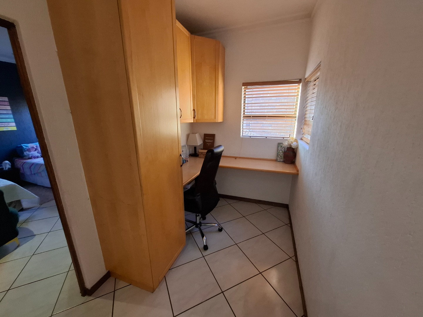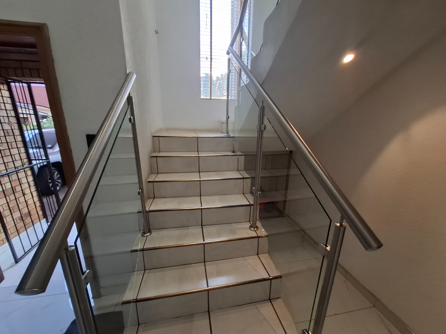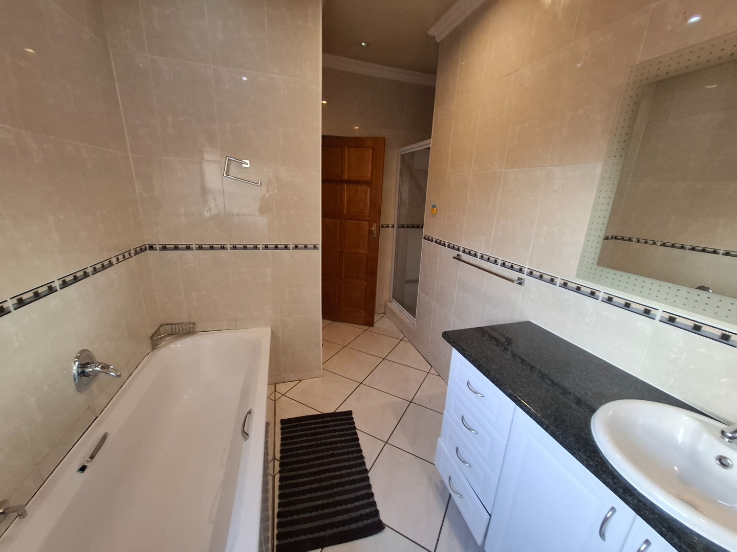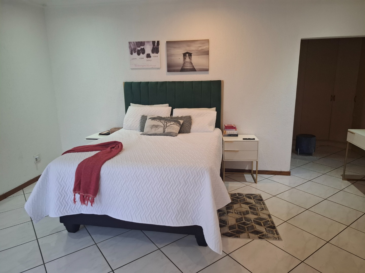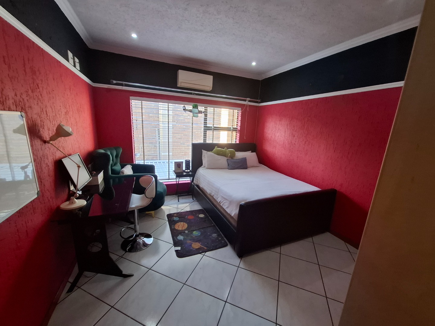 Discover this modern brick and plaster townhouse, ideally situated within a desirable complex in Boksburg West. The property presents excellent kerb appeal with a well-maintained exterior, a paved driveway, a double garage, and an additional shade net carport. A secure gated entrance leads to a solid wooden front door, opening into an inviting entryway with modern white floor tiles and subtle exposed brick accents. The interior boasts a contemporary open-plan layout, seamlessly connecting the living, dining, and kitchen areas. The spacious living room features luxurious leather sofas, a striking grey stone-effect accent wall with a mounted TV, and ample natural light from windows fitted with security bars. Recessed ceiling lights enhance the bright, tiled flooring throughout. The modern dining area, complete with stylish furniture, offers direct access to a private outdoor patio and a refreshing swimming pool, perfect for entertaining. The heart of this home is its sleek, open-plan kitchen, equipped with white cabinetry, black granite countertops, an integrated oven, and a stylish breakfast bar with stone cladding. This functional space ensures convenience for daily living. The townhouse provides three comfortable bedrooms and 2.5 well-appointed bathrooms, designed for modern comfort. Enhanced security, including the gated entrance and burglar bars, offers peace of mind in this convenient location. Key Features: * 3 Bedrooms, 2.5 Bathrooms * Modern Open-Plan Living & Kitchen * Double Garage & Carport * Private Swimming Pool & Patio * Secure Gated Entrance & Burglar Bars * 310 sqm Floor Size