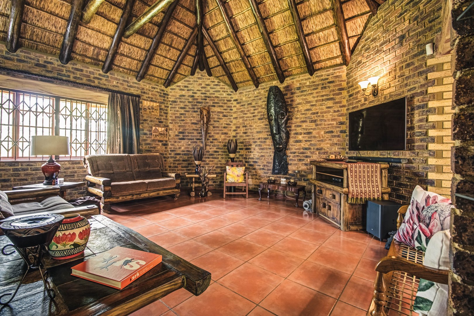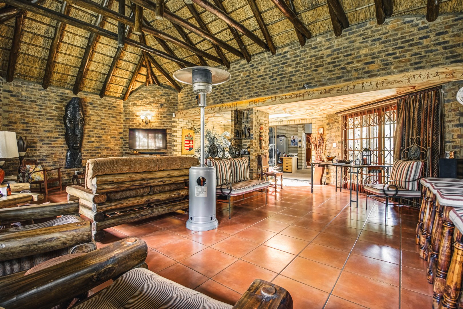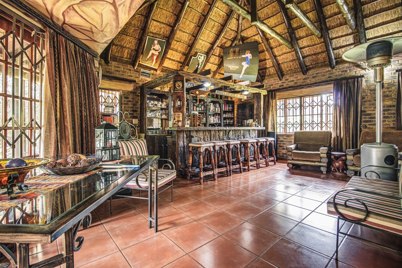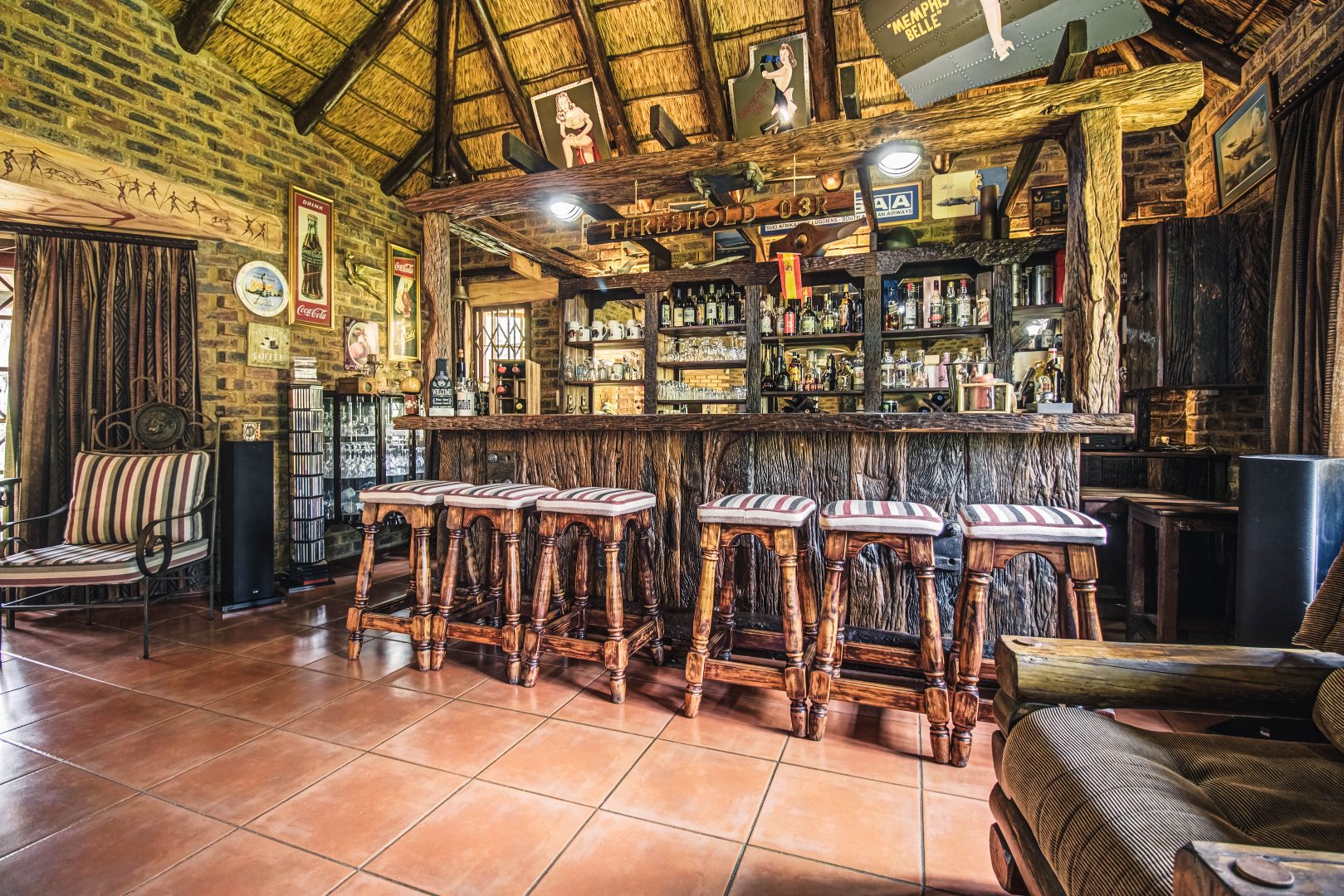 Stylish bar and entertainment area for relaxed, upscale hosting