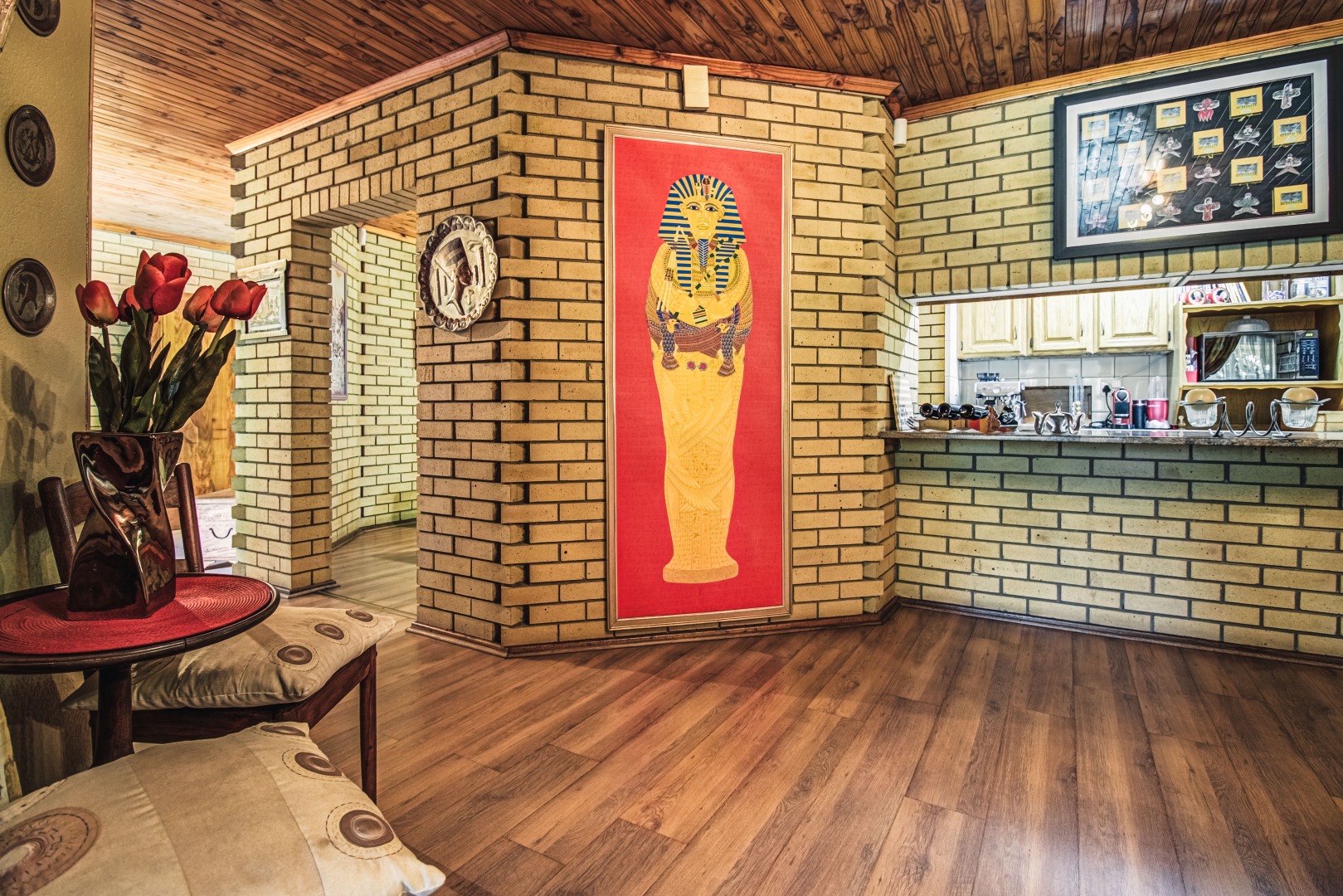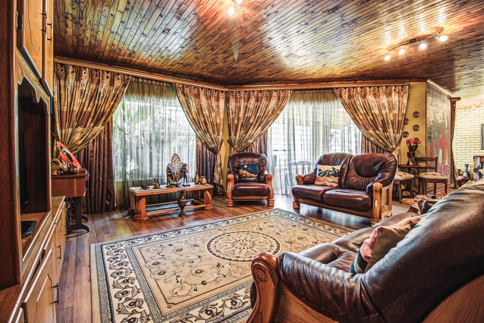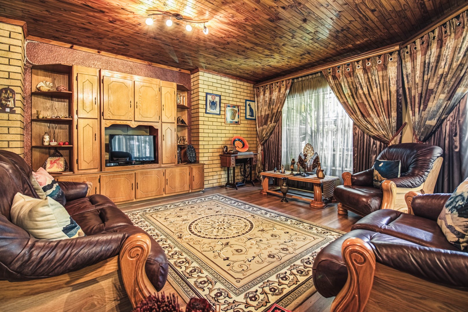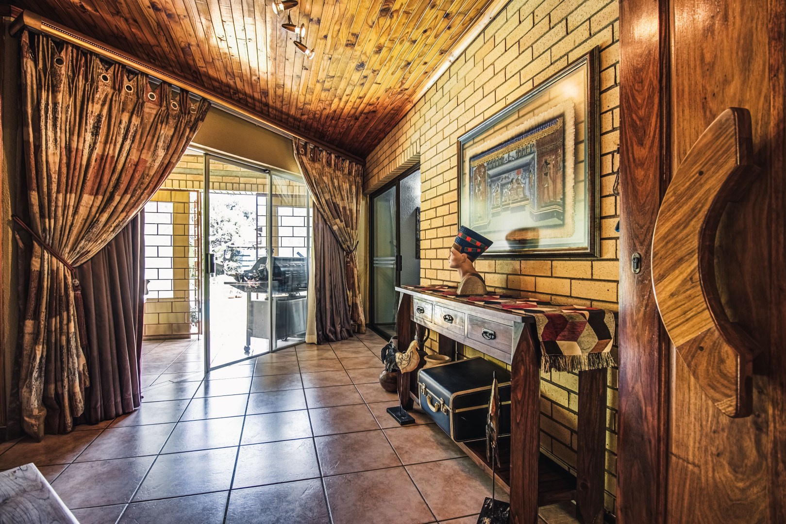 Stylish bar and entertainment area for relaxed, upscale hosting