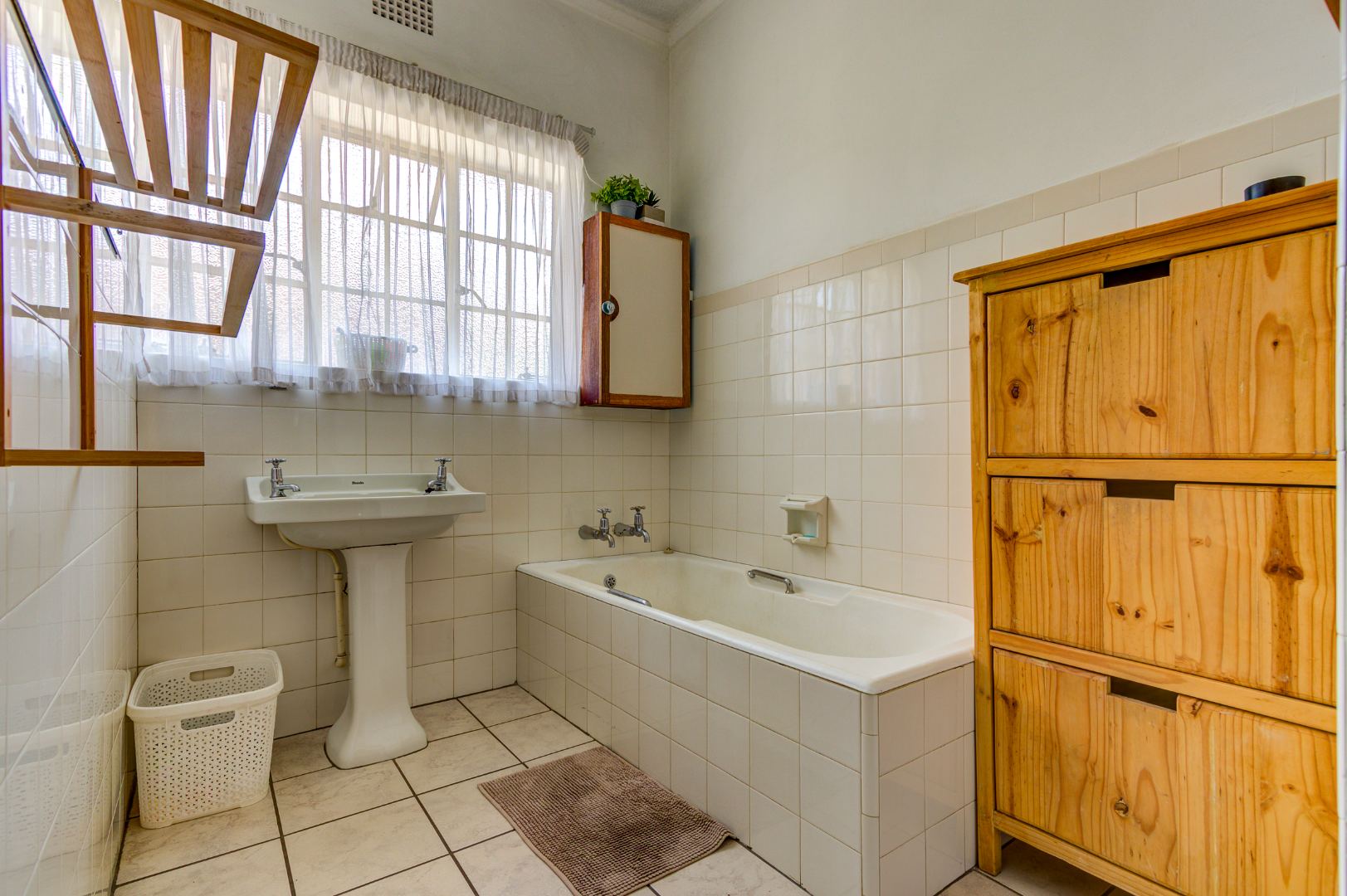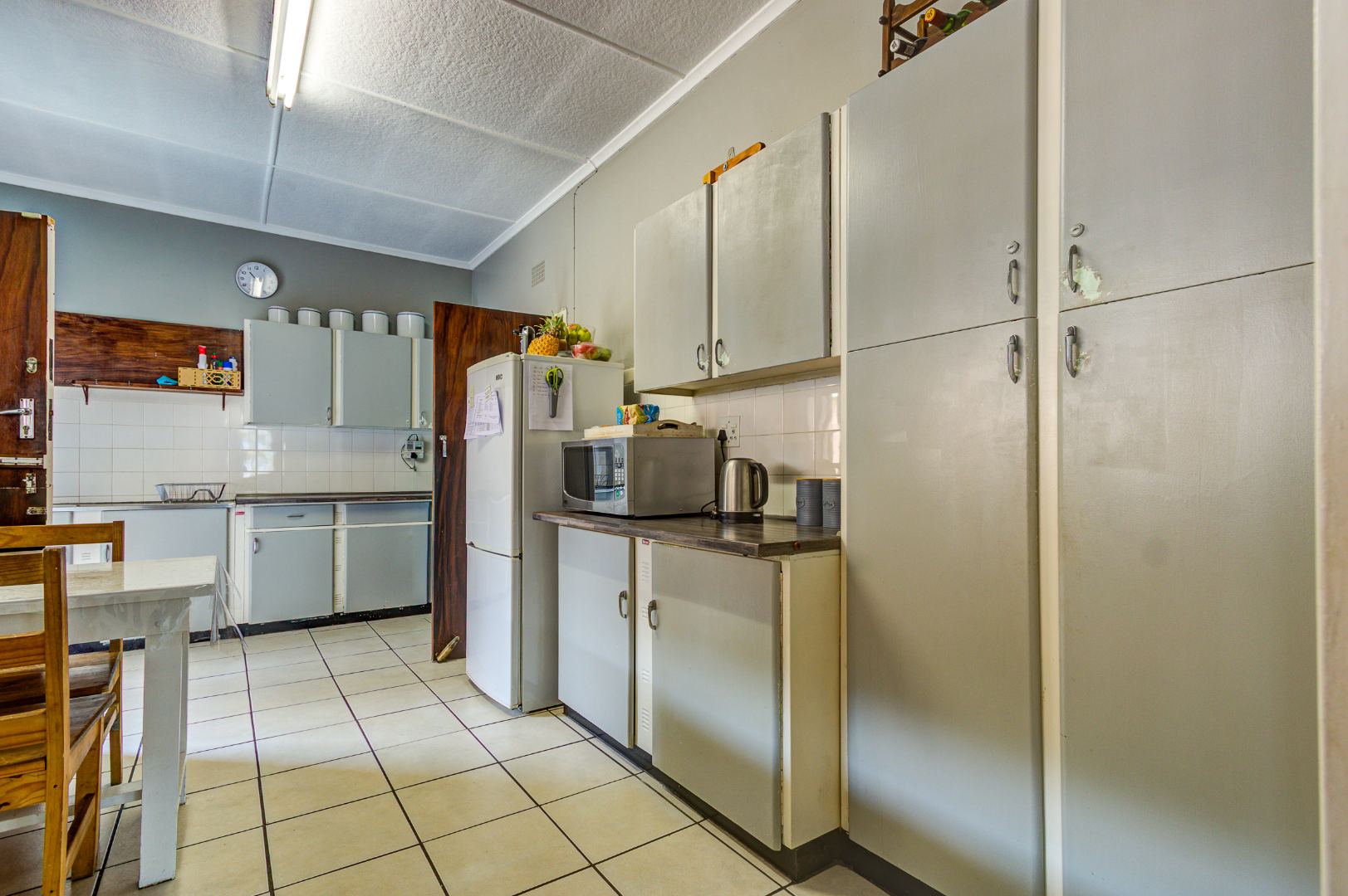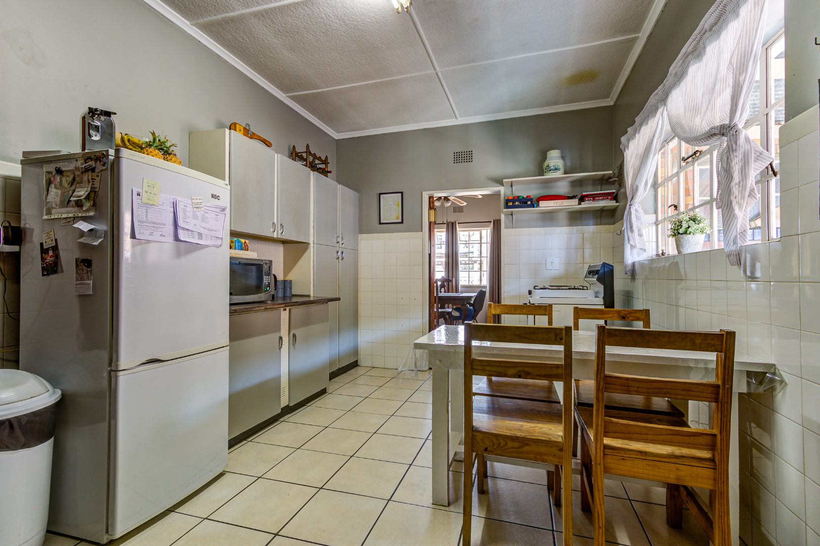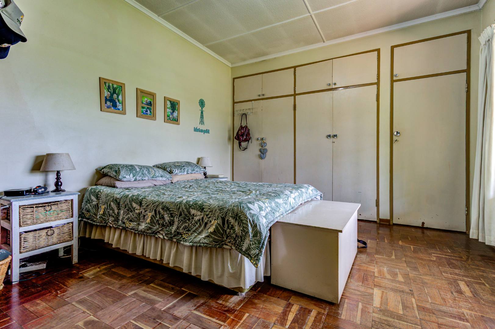 The home comprises three well-proportioned bedrooms, sharing a single bathroom. Practical amenities include a dedicated laundry area and staff quarters, adding to the property's versatility.