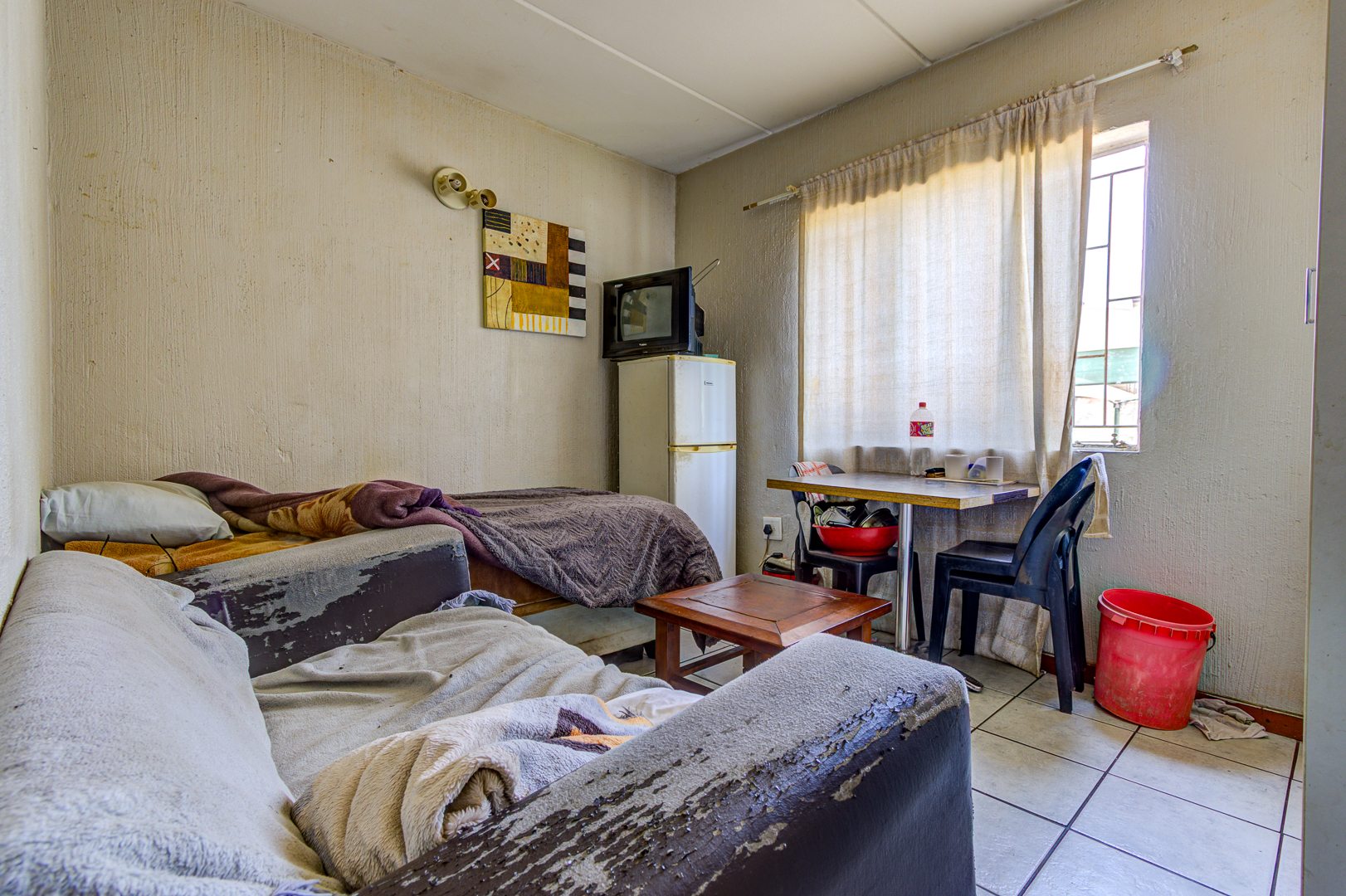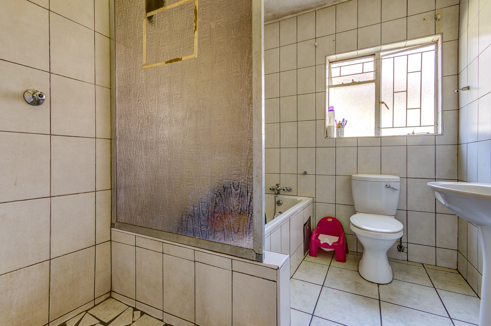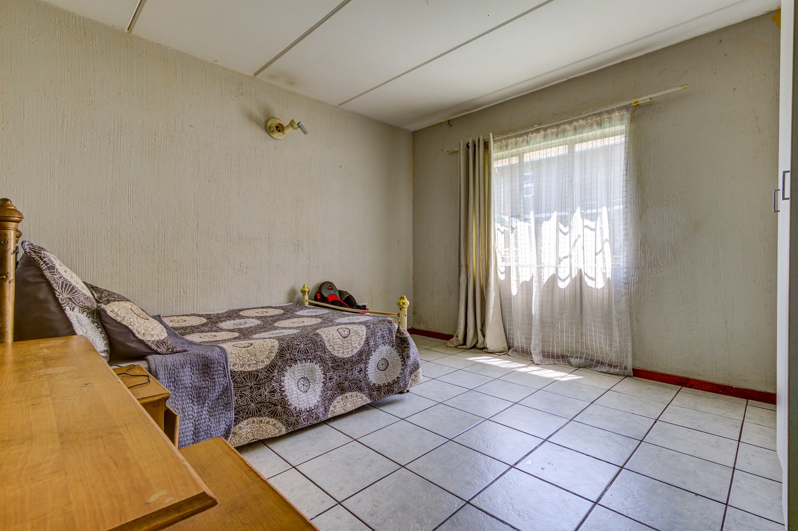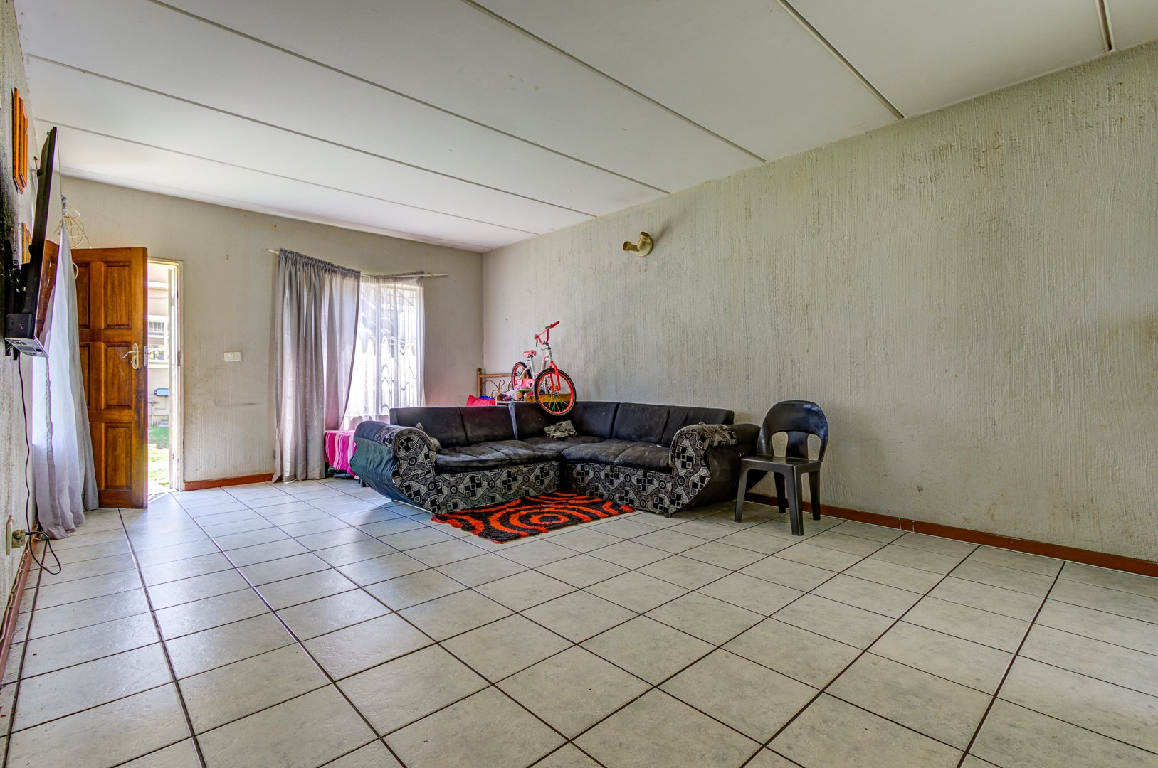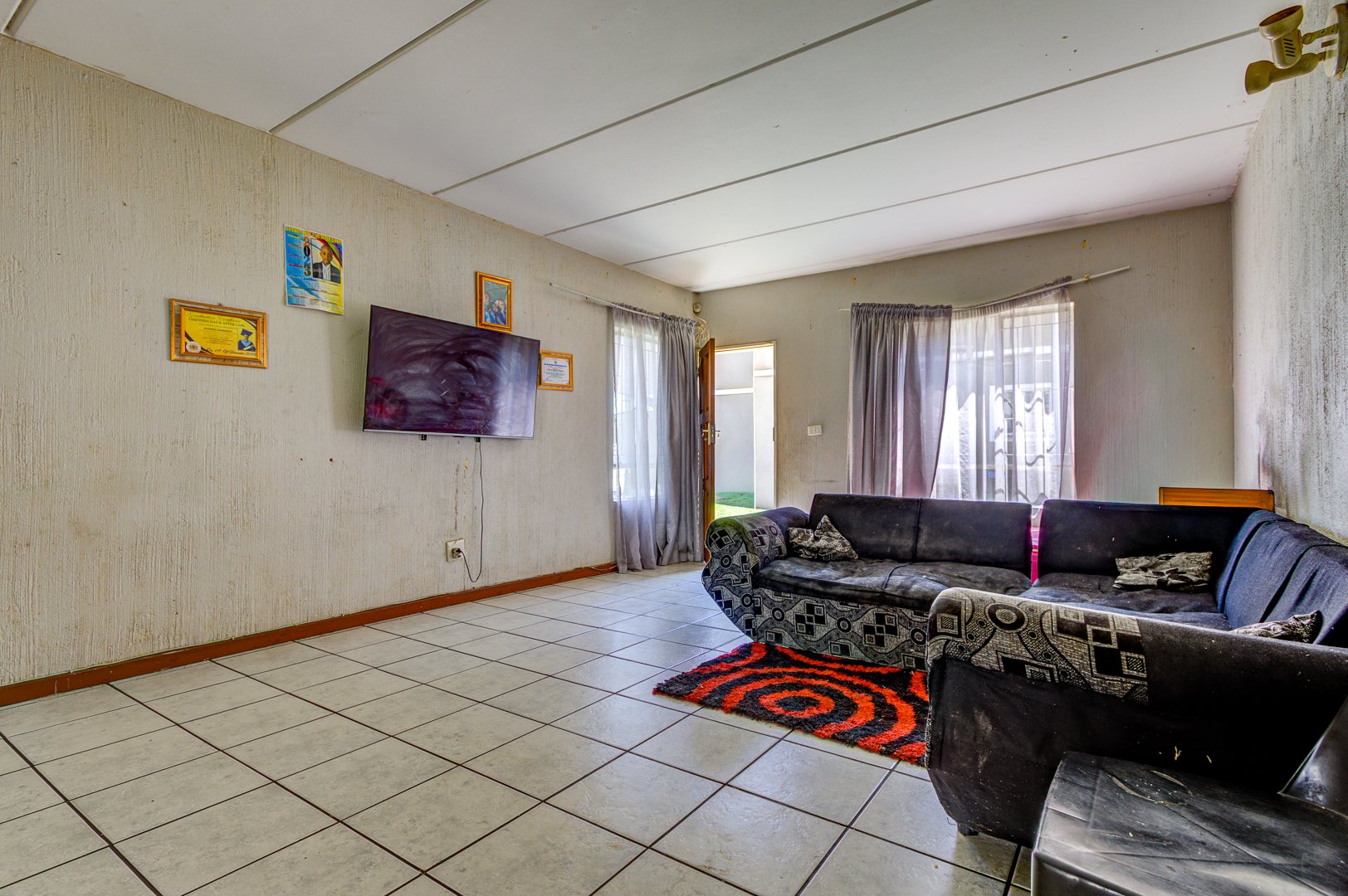 Step inside to a welcoming open plan living and dining area, featuring durable tiled flooring throughout, super easy to keep clean! The kitchen is functional and ready for action, equipped with stove, ample counter space, and even room for two fridges. While it shows some signs of wear, it’s a great foundation for a modern upgrade. You’ll find two comfortable bedrooms, both with tiled floors, and one even includes convenient built in cupboards to help keep things tidy. The bathroom is fully tiled and offers both a relaxing bathtub and a separate shower, giving you the best of both worlds.