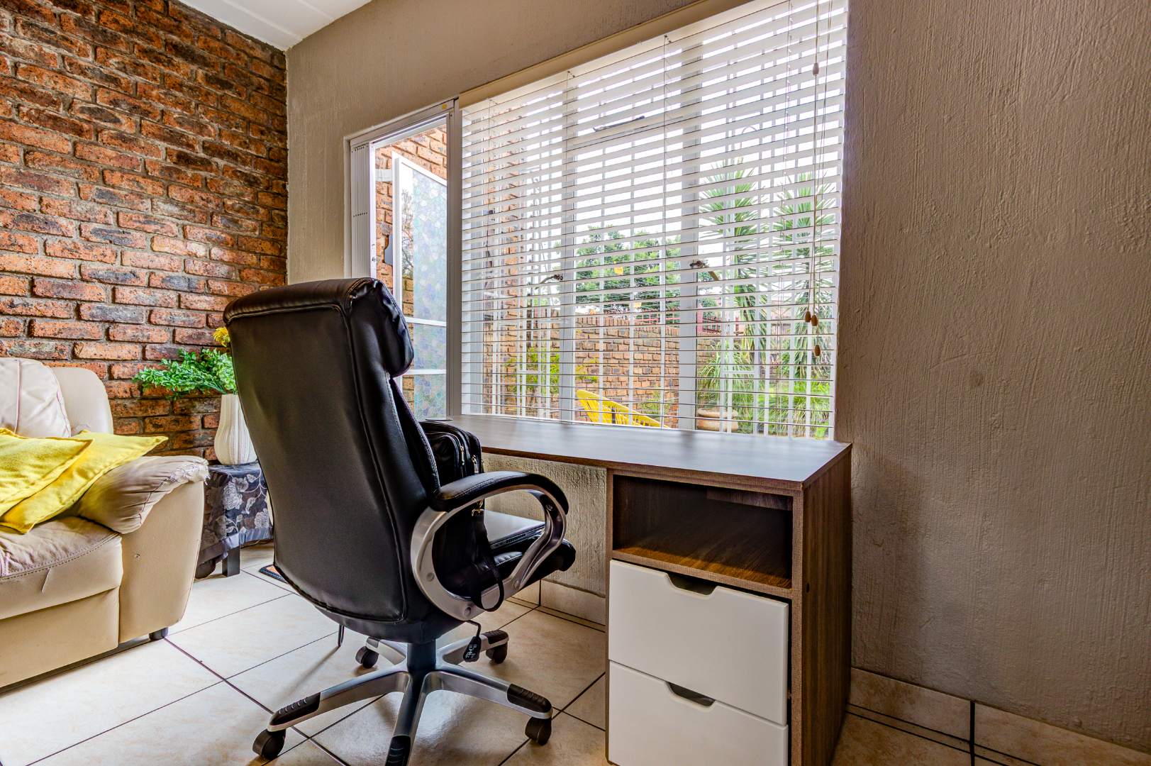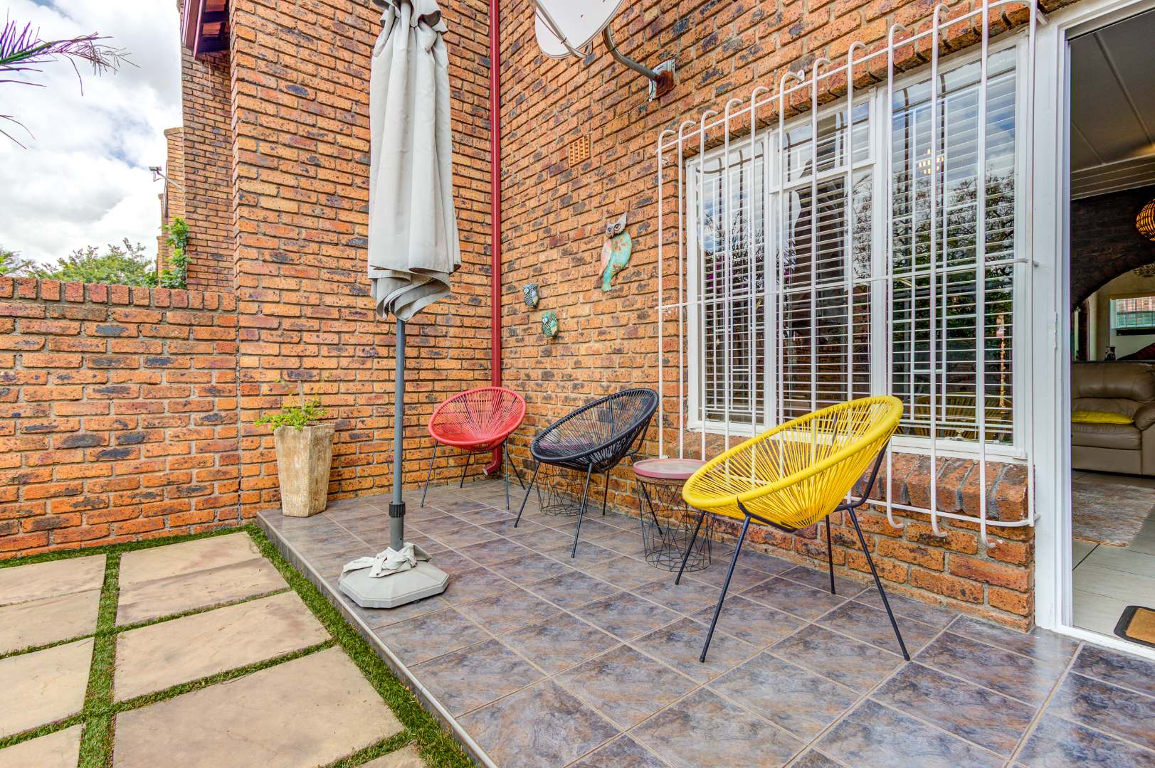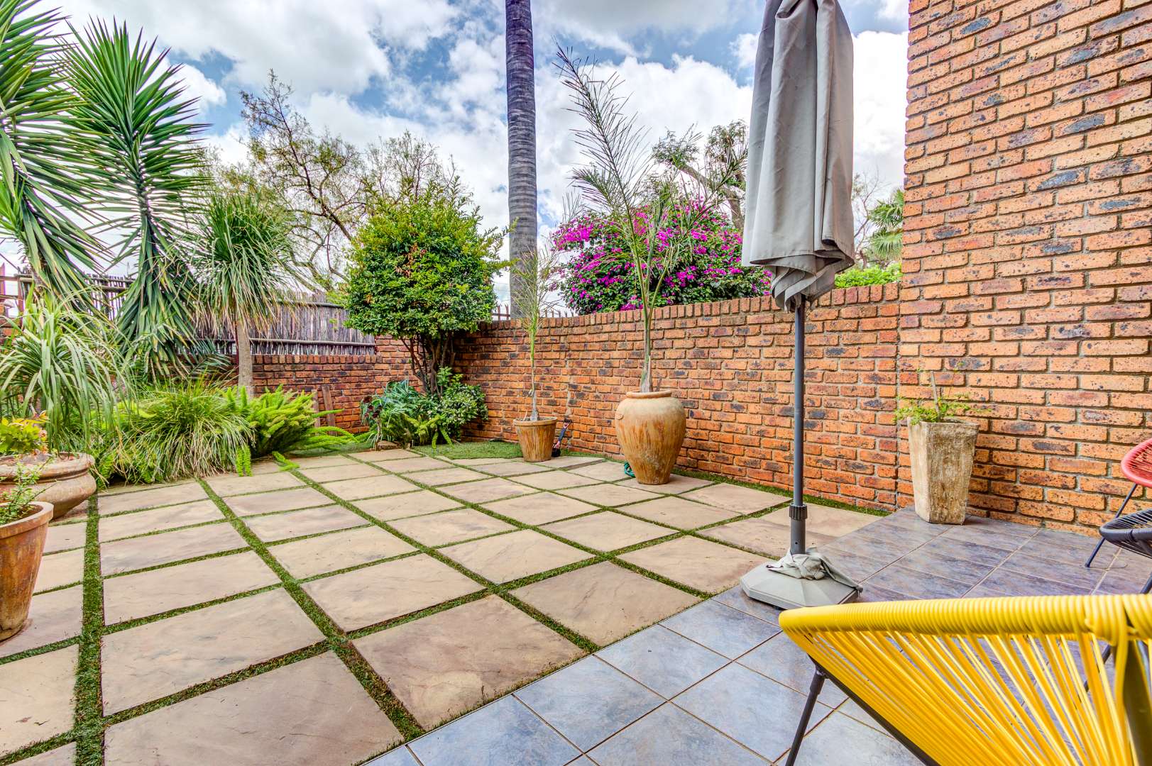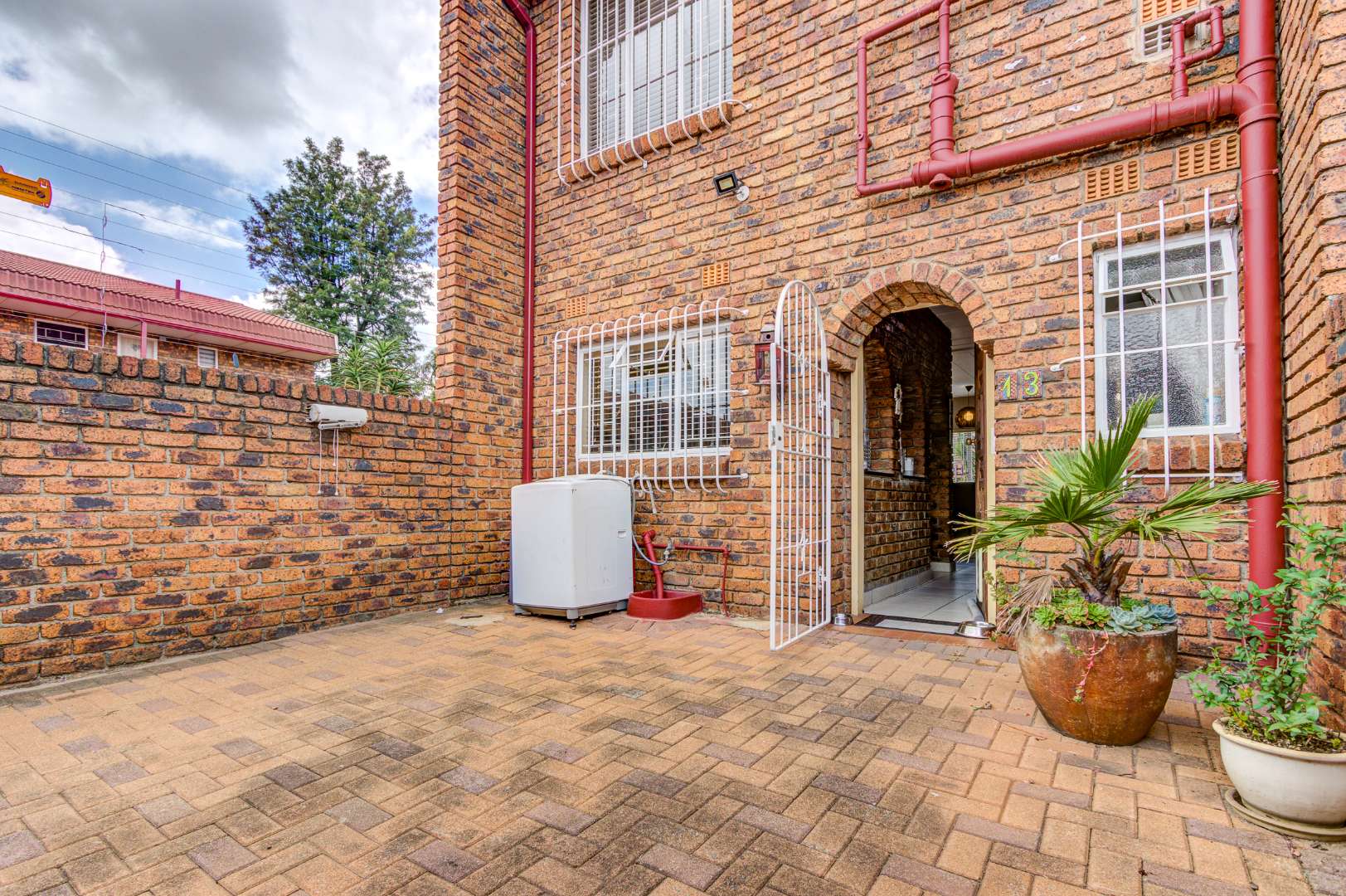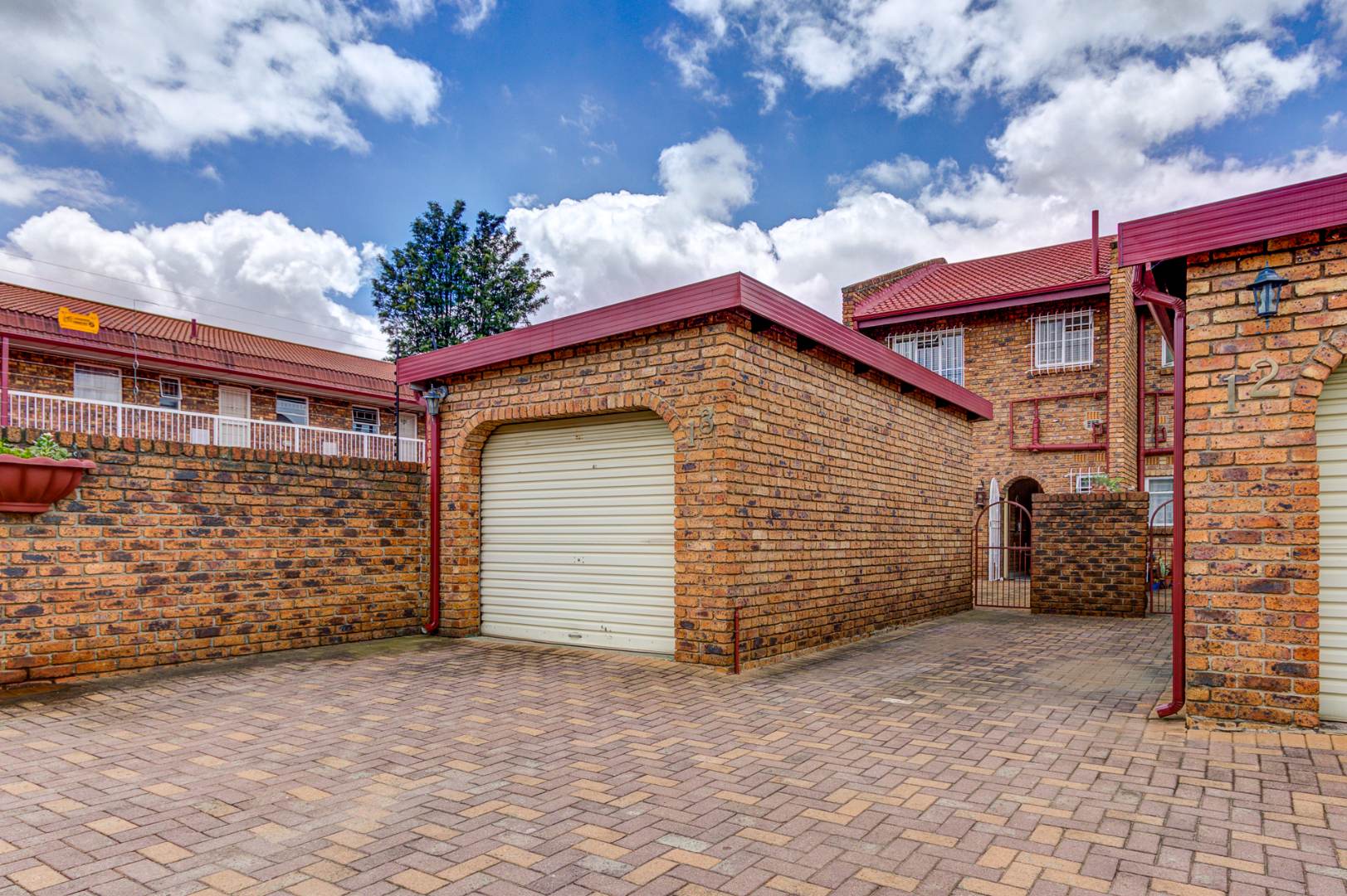 Upon arrival, you are greeted by a secure gated entrance featuring brick construction and an electric fence, ensuring peace of mind. The complex boasts a lush, well-maintained garden with manicured hedges and diverse plantings, contributing to a pleasant kerb appeal. The exterior of the unit itself features durable face brick, offering low maintenance.