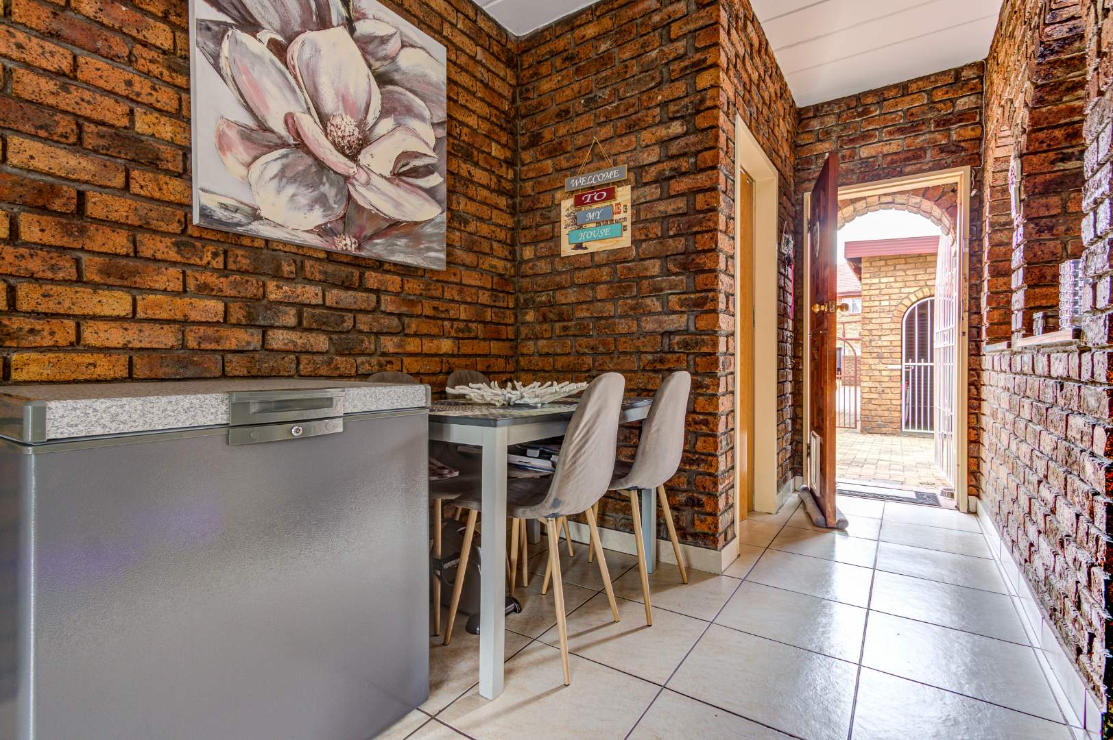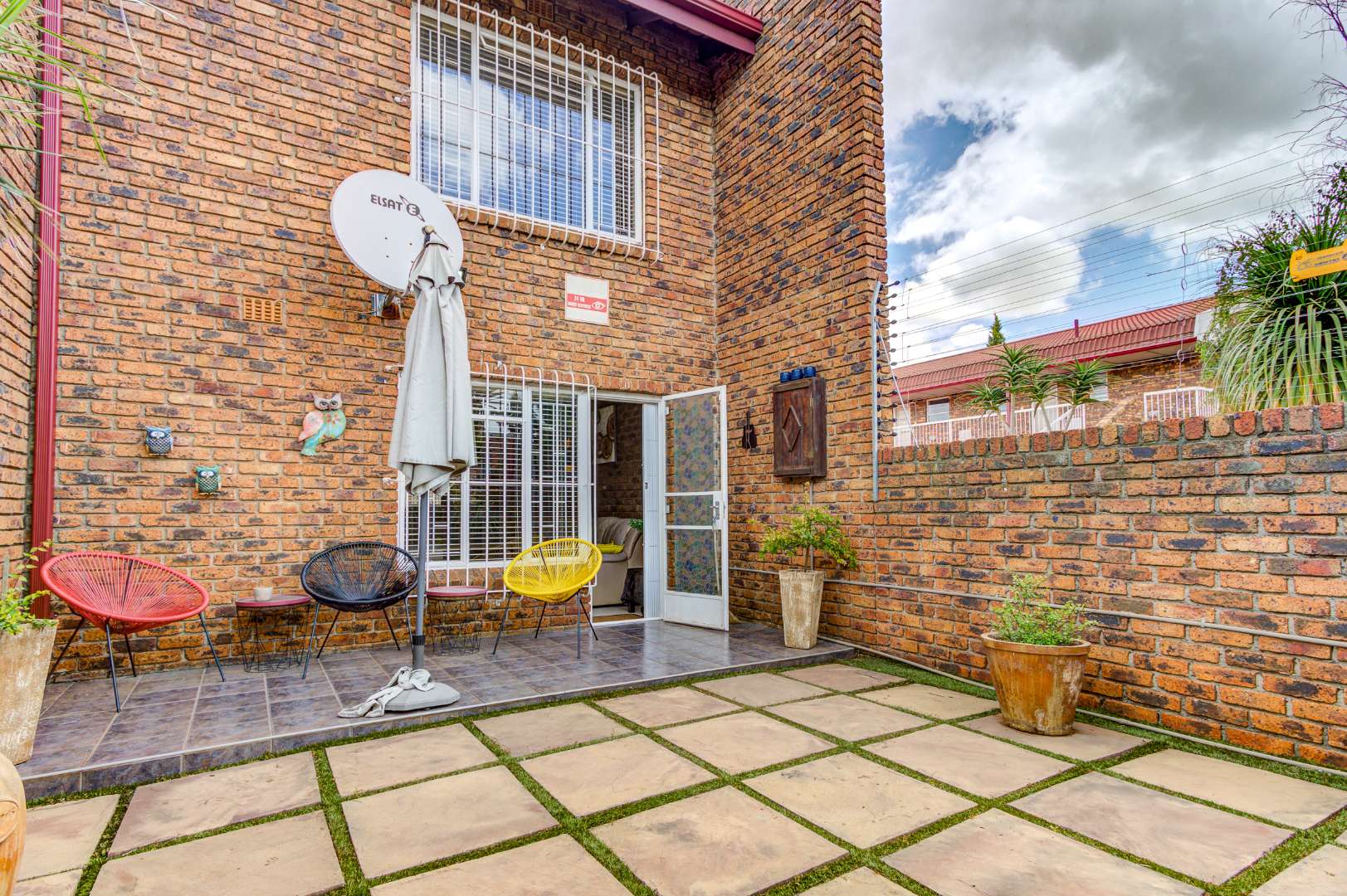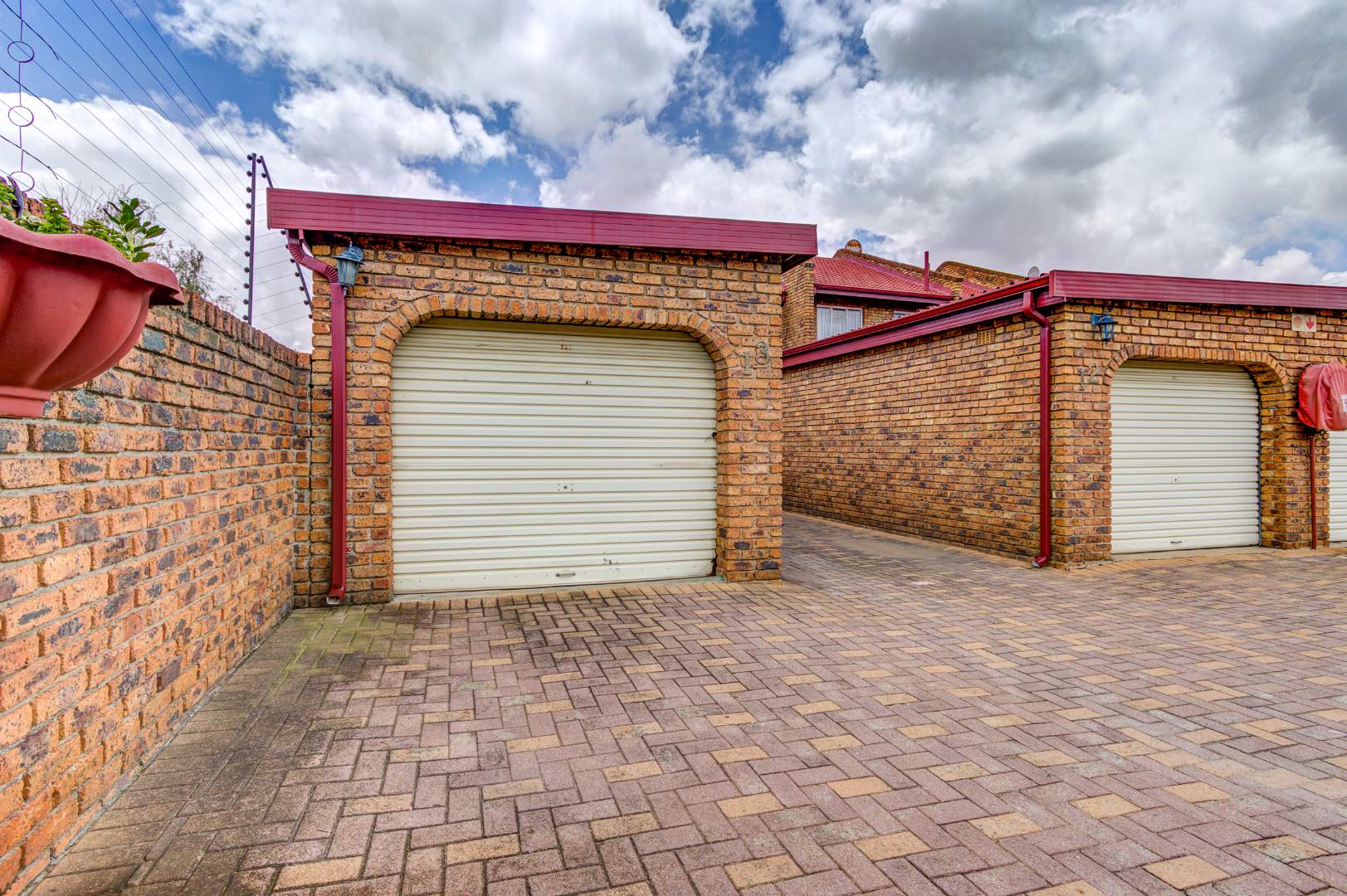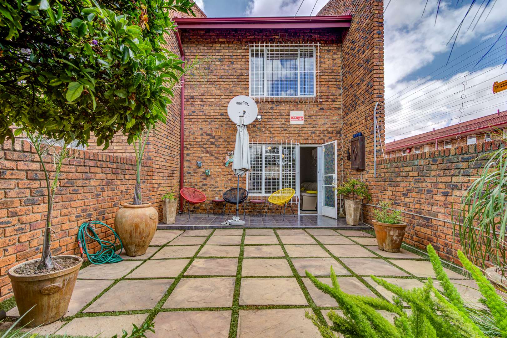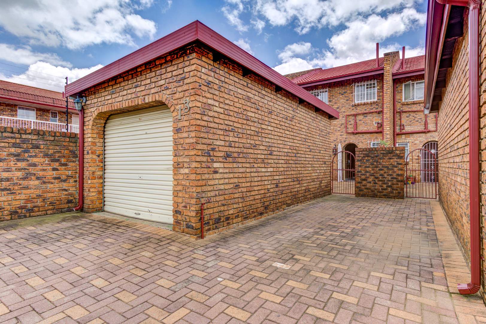 Upon arrival, you are greeted by a secure gated entrance featuring brick construction and an electric fence, ensuring peace of mind. The complex boasts a lush, well-maintained garden with manicured hedges and diverse plantings, contributing to a pleasant kerb appeal. The exterior of the unit itself features durable face brick, offering low maintenance.