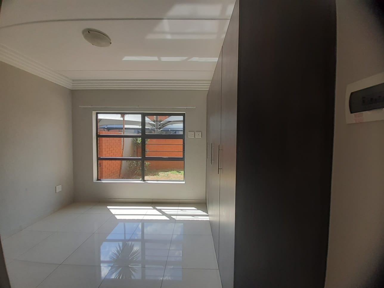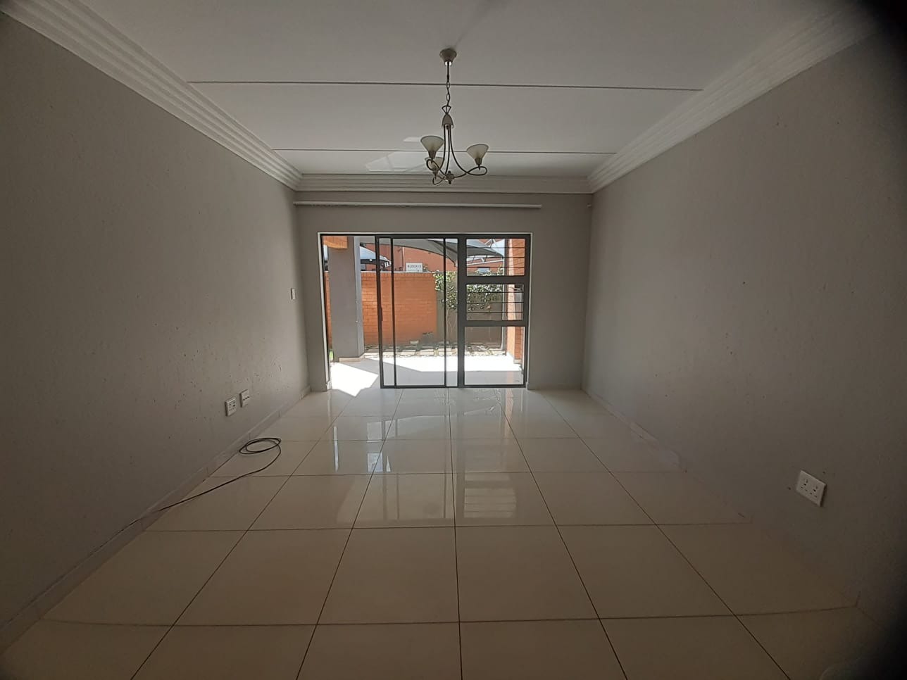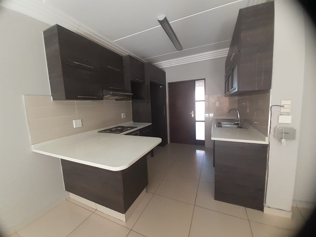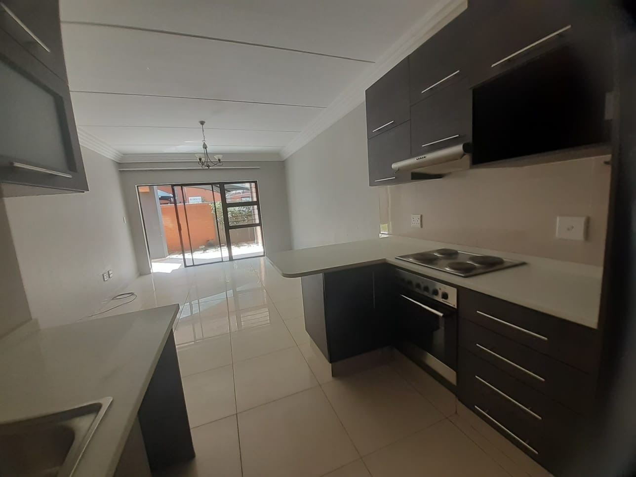 Discover modern living in this inviting 3-bedroom, 2-bathroom apartment located within a secure complex in Eveleigh, Boksburg. Spanning 86 square meters, this residence offers a contemporary open-plan layout, seamlessly connecting the living area with a stylish kitchen. The kitchen boasts modern dark cabinetry, light countertops, an integrated hob, extractor fan, and a convenient breakfast bar, perfect for casual dining. Neutral grey walls and white tiled flooring create a clean, versatile canvas throughout the main living spaces, complemented by decorative ceiling cornices. The spacious lounge area features large sliding glass doors that open onto a private patio and garden, providing a tranquil outdoor retreat for relaxation or entertaining. The three comfortable bedrooms offer ample space, while the two well-appointed bathrooms ensure convenience for residents. The property includes two dedicated parking bays, with covered parking available, adding to the practical appeal. Residents benefit from the enhanced security of a complex featuring a security post, access gate, and 24-hour security, ensuring peace of mind. The modern brick facade and well-maintained paved common areas contribute to the property's attractive kerb appeal. This apartment presents an excellent opportunity for those seeking a secure and contemporary lifestyle in a well-established Boksburg suburb. Key Features: * 3 Bedrooms, 2 Bathrooms * 86 sqm Floor Size * Modern Open-Plan Kitchen * Private Patio and Garden * 2 Parking Bays (Covered Parking Available) * Tiled Flooring Throughout * Secure Complex with 24-Hour Security * Access Gate and Security Post