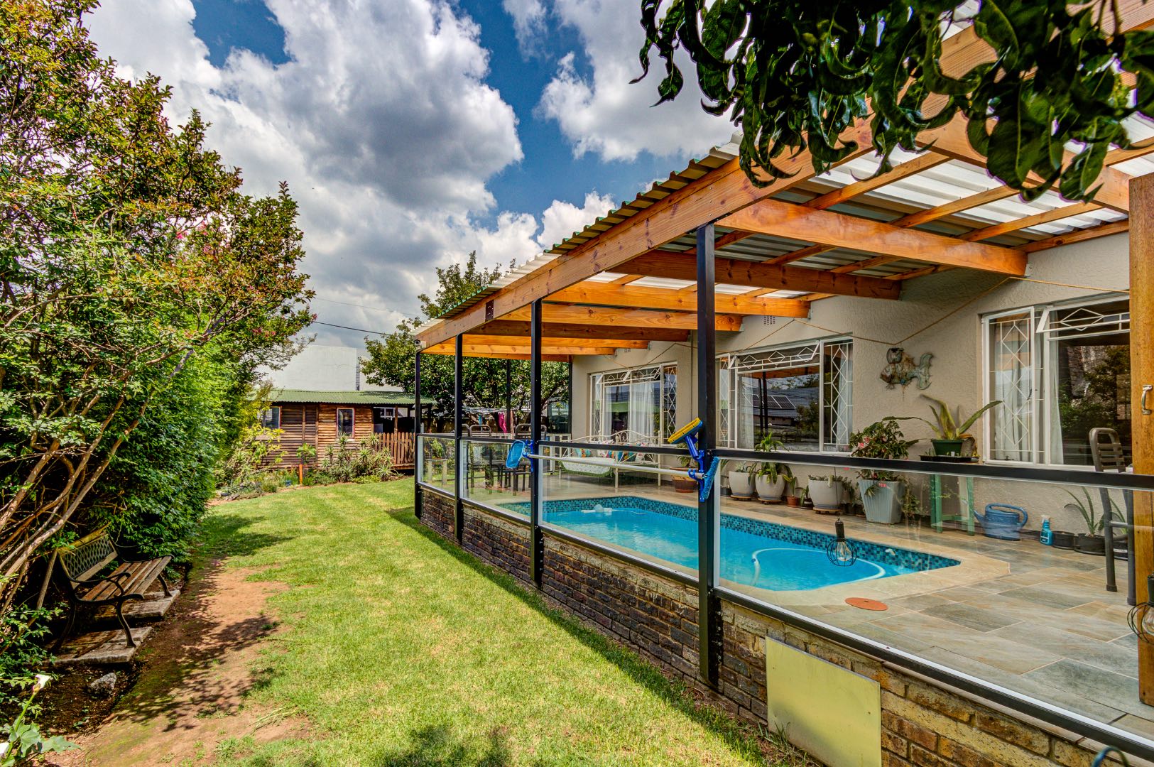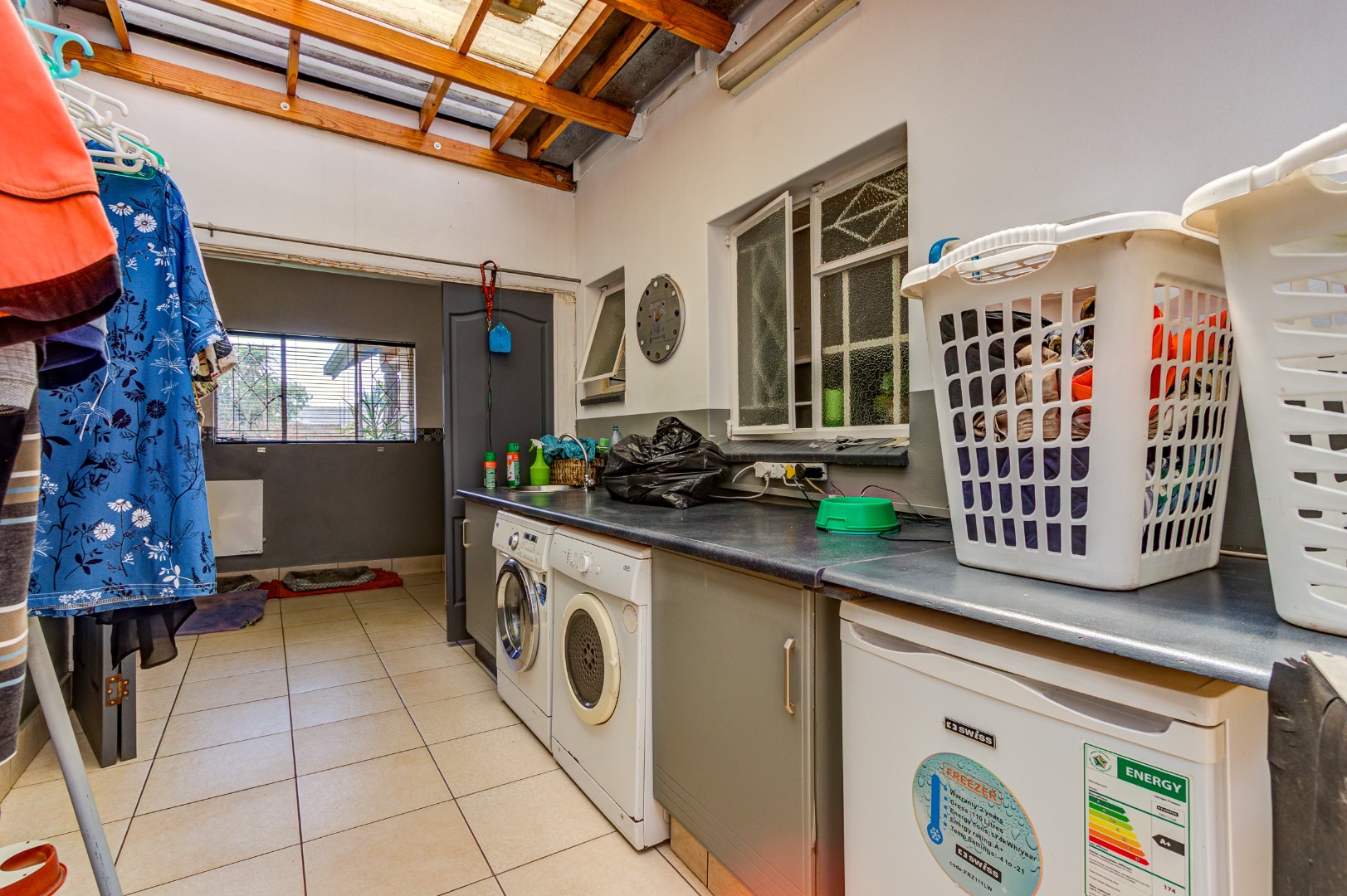 Outside, practicality continues: an under-roof laundry with space for washing and ironing, a double garage, and an attached ±60m² workshop—ideal for the serious hobbyist, home business setup, or extra storage. You’ll also find an outside toilet and cold-water shower, plus a ±42m² carport at the back and a Wendy house with a small stoep.