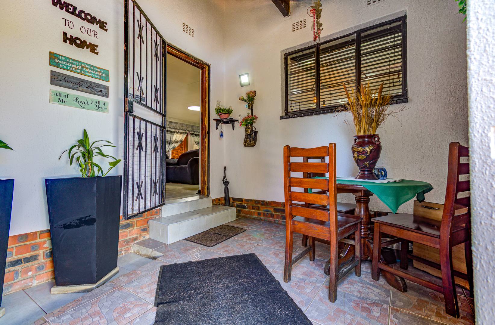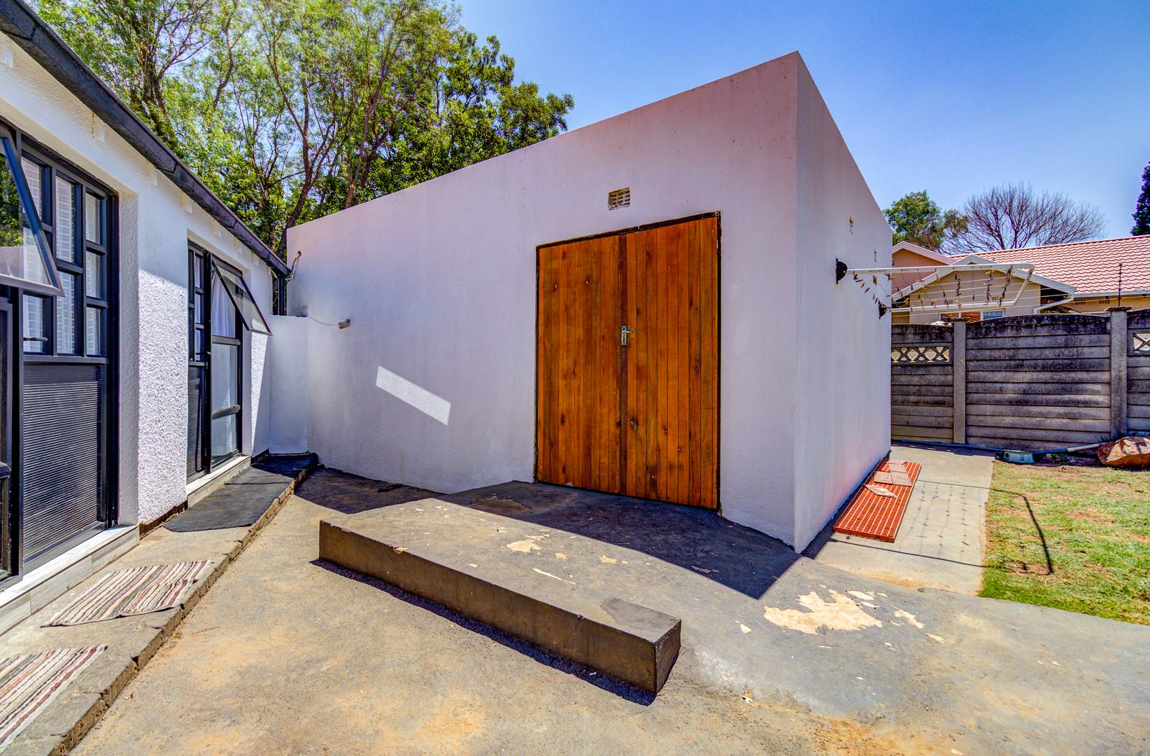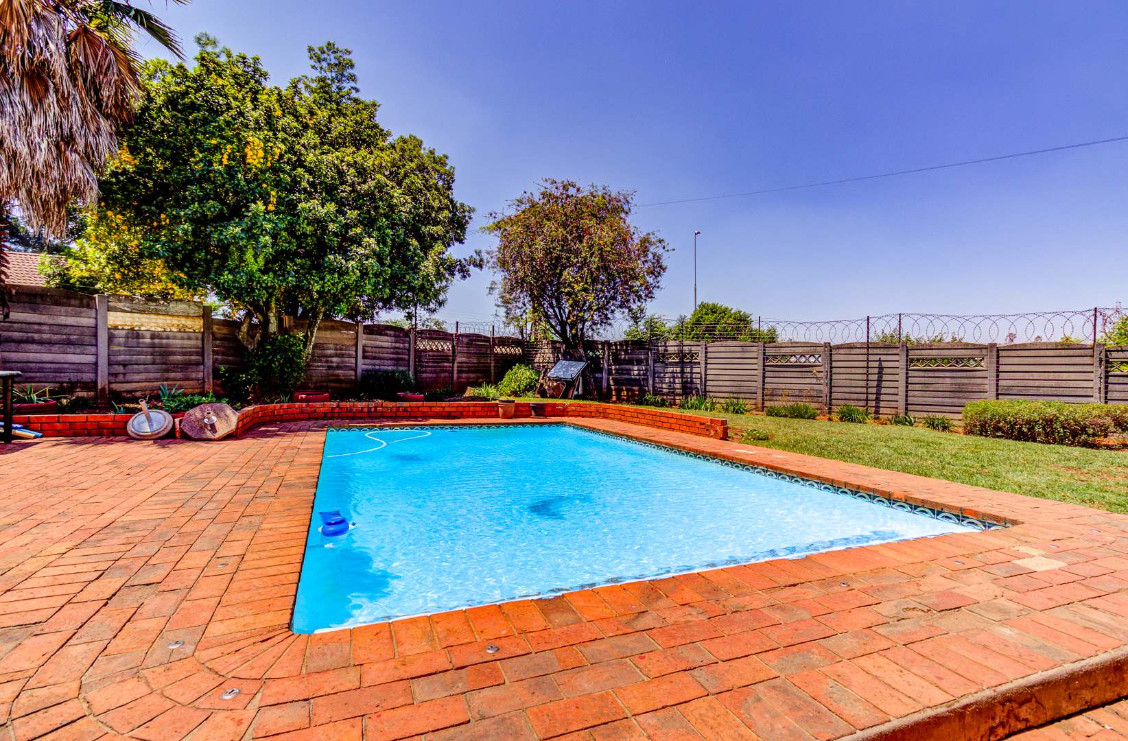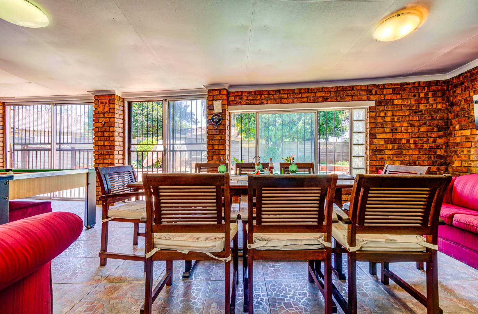 This charming 3-bedroom, 2-bathroom home in Freeway Park, Boksburg, South Africa, offers a generous 1033 sqm erf and a spacious 280 sqm floor size. Its classic white exterior, terracotta tiled roof, and mature landscaping create an inviting first impression. A paved driveway leads to a double garage, complemented by six additional parking spaces under carport, ensuring ample vehicle accommodation.