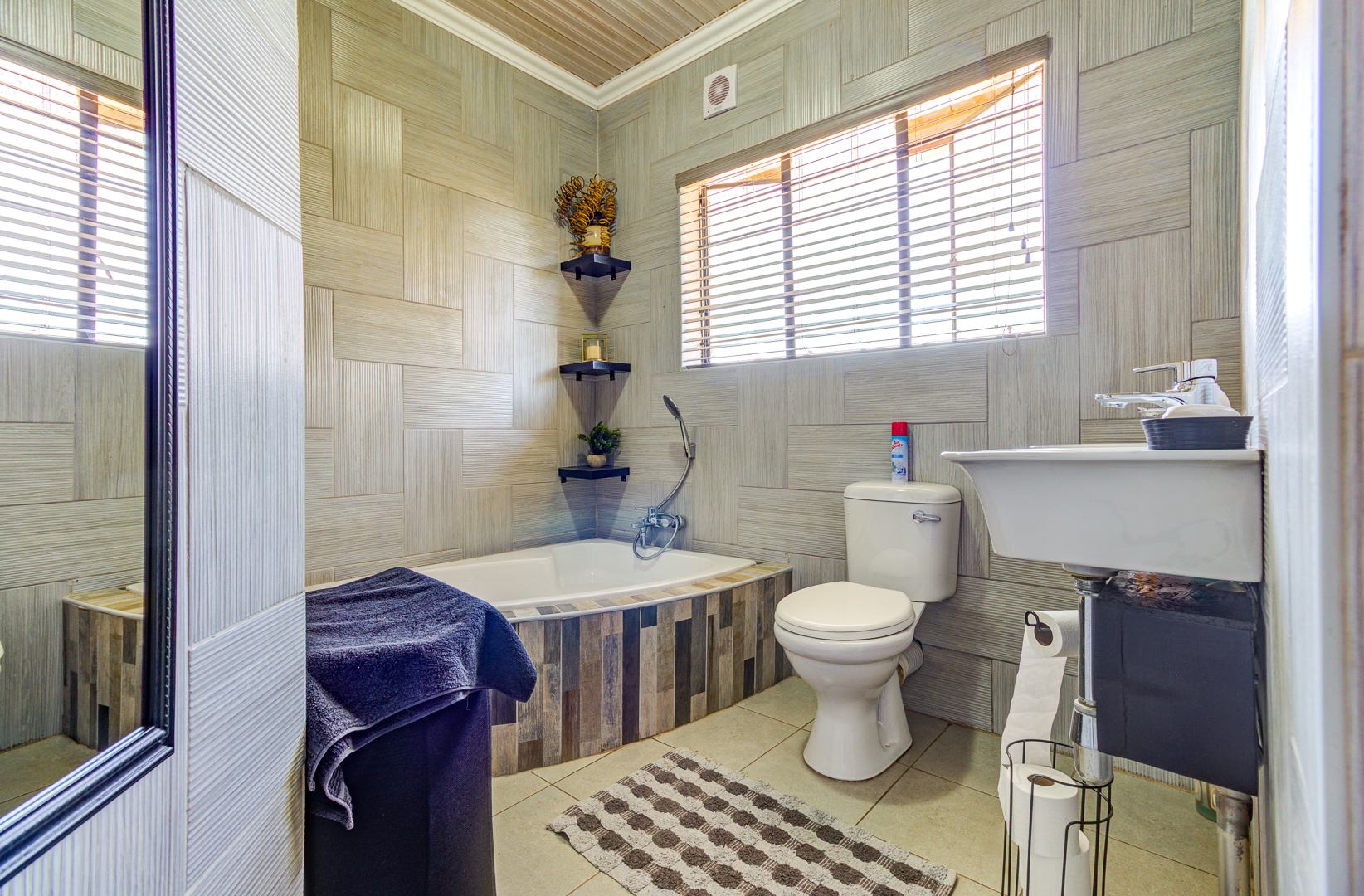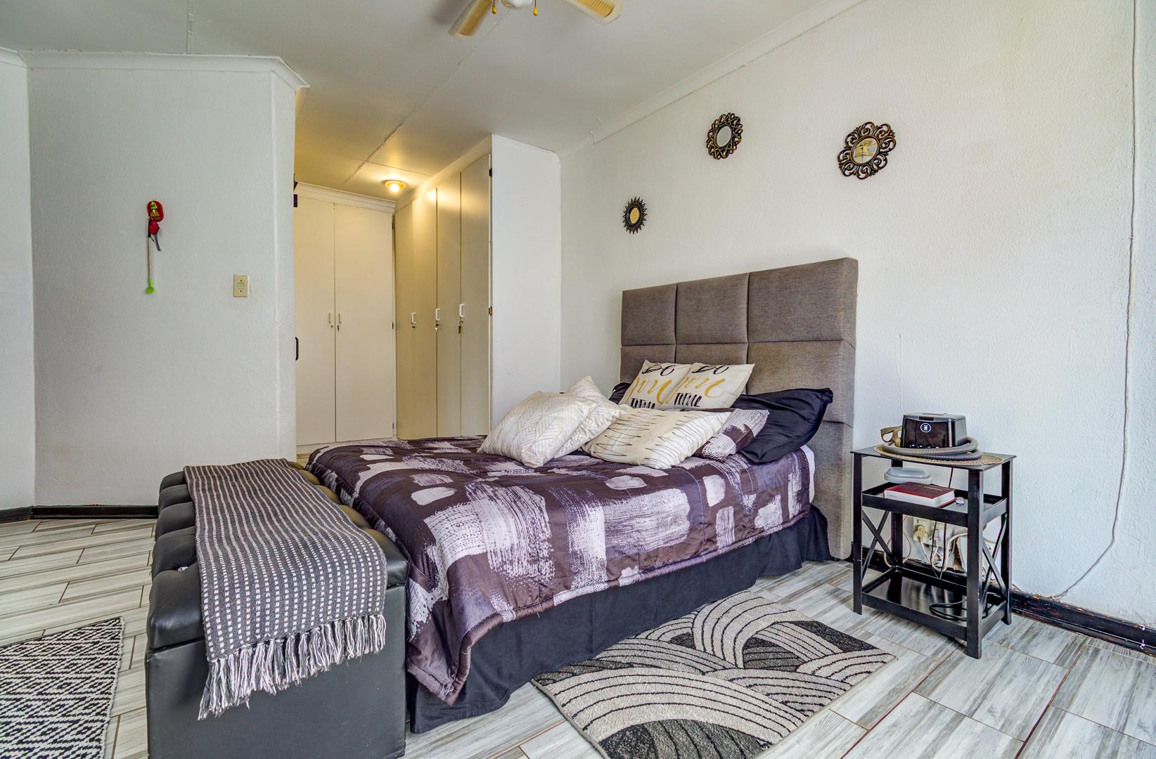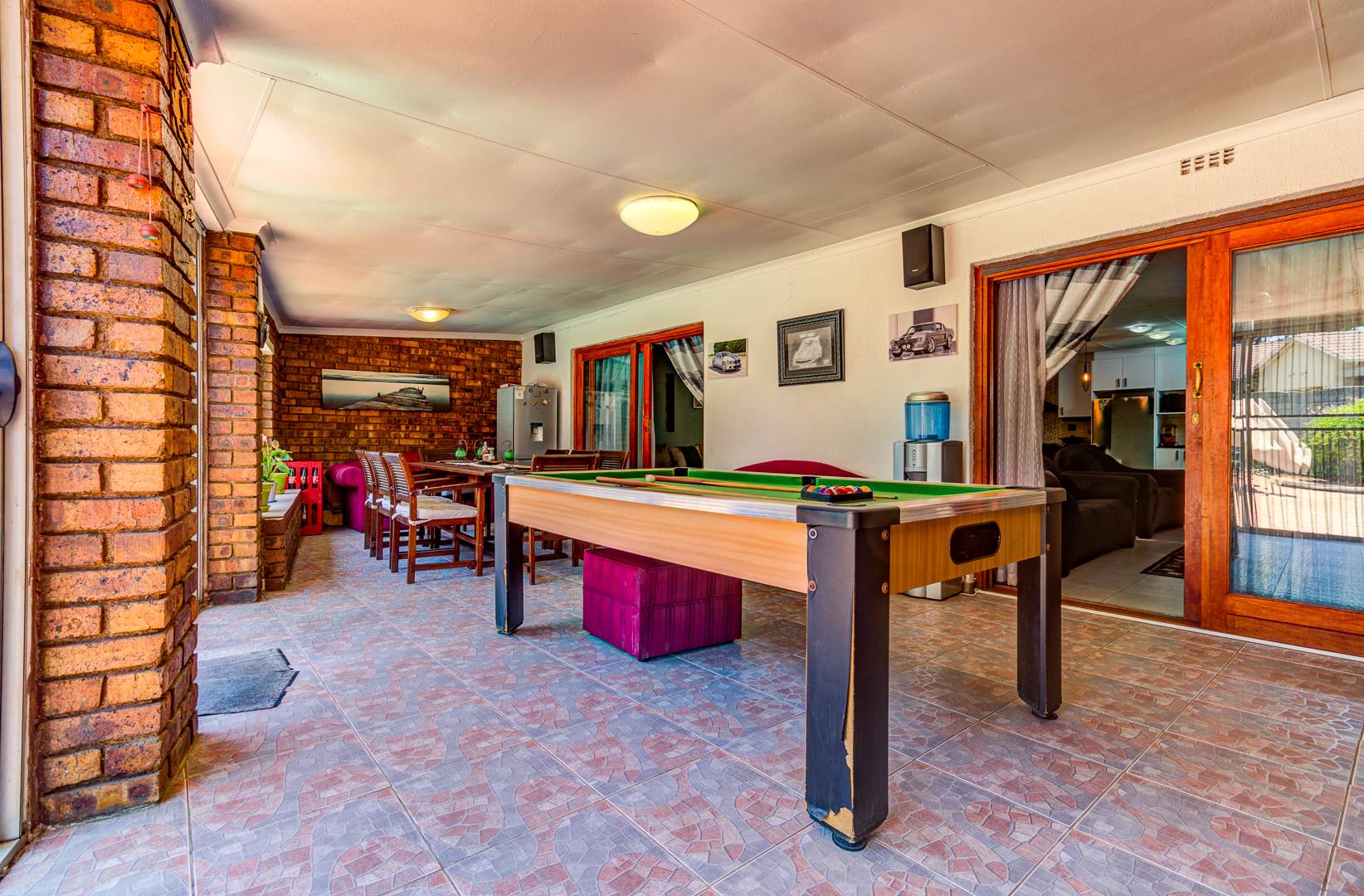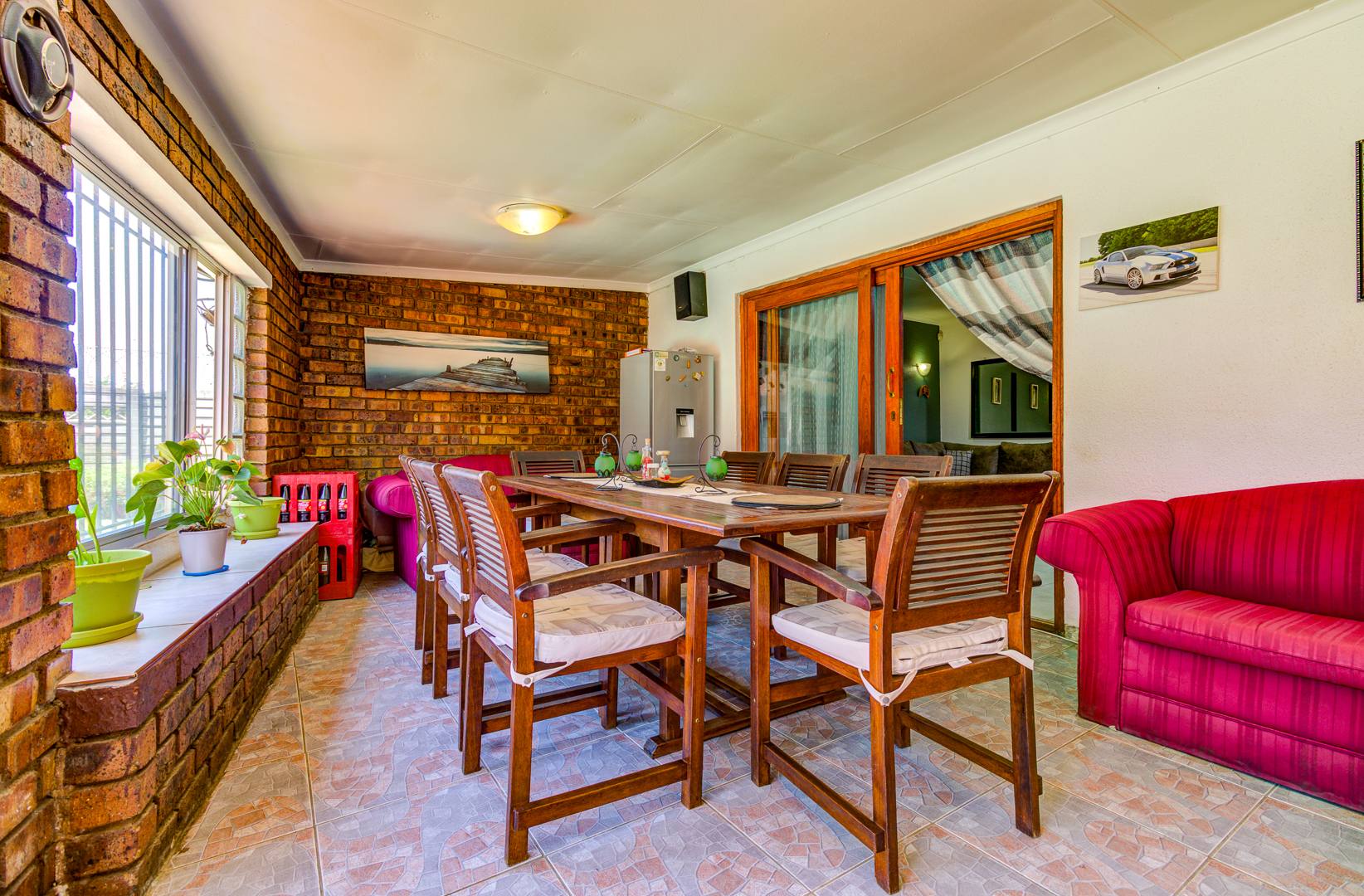 This charming 3-bedroom, 2-bathroom home in Freeway Park, Boksburg, South Africa, offers a generous 1033 sqm erf and a spacious 280 sqm floor size. Its classic white exterior, terracotta tiled roof, and mature landscaping create an inviting first impression. A paved driveway leads to a double garage, complemented by six additional parking spaces under carport, ensuring ample vehicle accommodation.