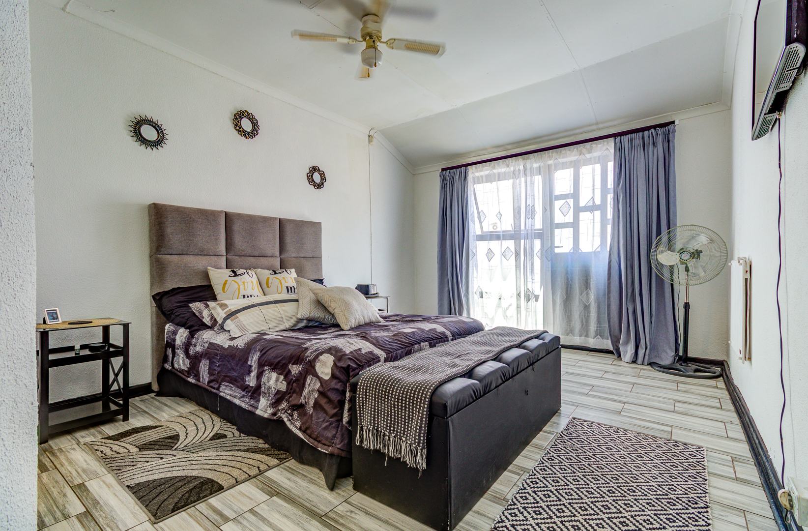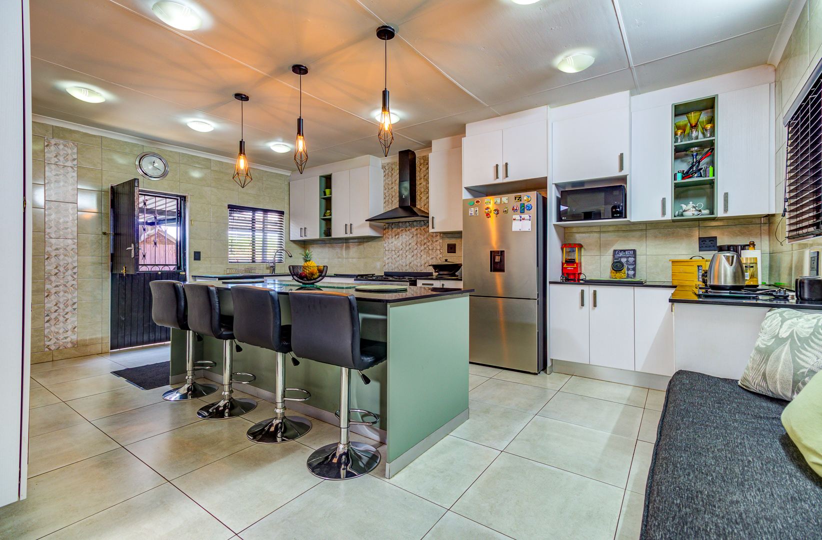The three well-appointed bedrooms offer comfortable living, with the main featuring an en-suite bathroom and ample built-in wardrobe storage. All bedrooms benefit from modern tiled flooring and ceiling fans. Outside, the property shines with a private garden, a refreshing swimming pool, and a built-in braai area, perfect for entertaining. Sliding doors connect indoor and outdoor spaces. For peace of mind, the home is equipped with an alarm system, electric fencing linked to the alarm system, burglar bars, security gates, and is totally walled. Fibre connectivity is available.