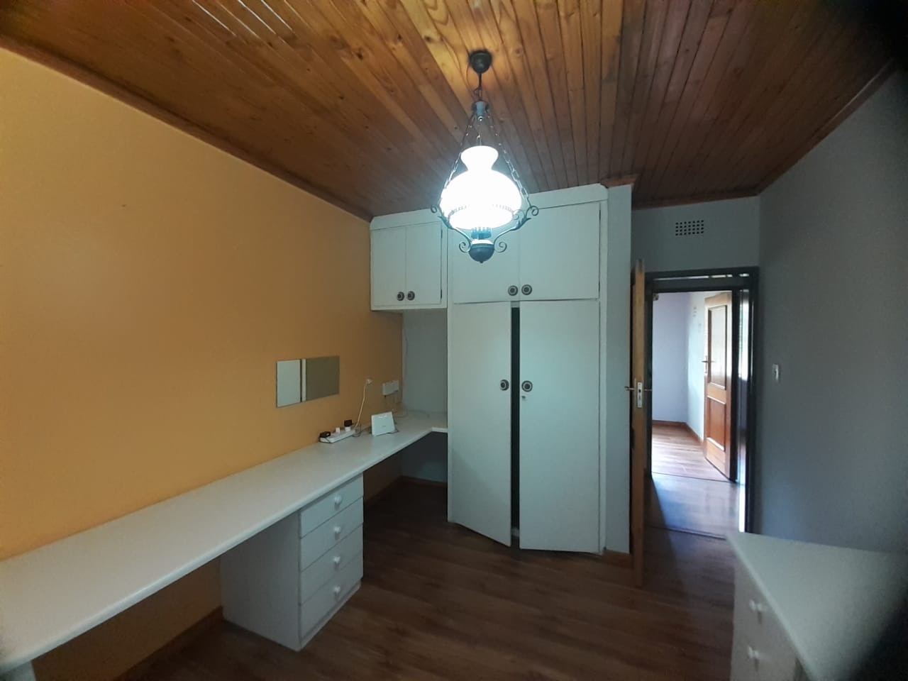 Step inside to explore a versatile interior designed for comfortable family living. The home features a spacious lounge, a dedicated dining room offering multiple areas for relaxation and entertainment. Unique character is evident with warm wood-paneled ceilings and a combination of polished hardwood and practical tiled flooring throughout. The kitchen, equipped with extensive cabinetry, a pantry, and a built-in stovetop, provides a functional space with potential for modern updates to suit your personal style.