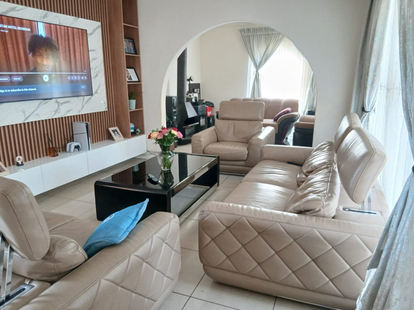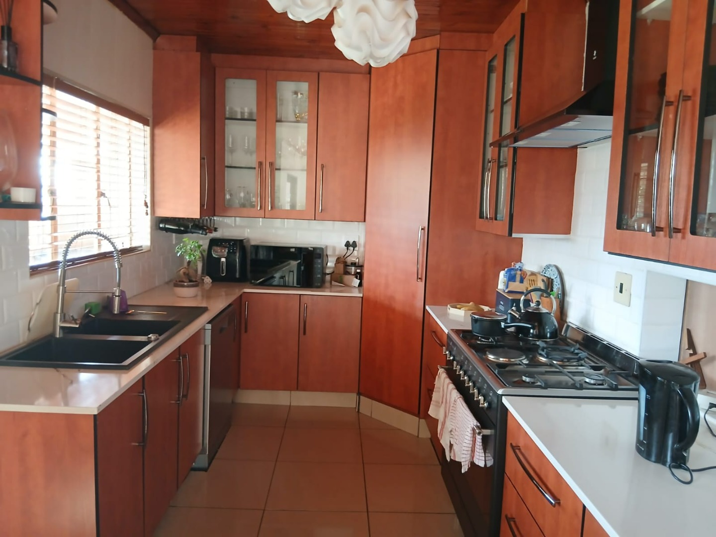 Discover this charming 3-bedroom family home, ideally situated in the established suburb of Groeneweide, Boksburg. Boasting an impressive 900 sqm erf and a comfortable 218 sqm floor size, this property offers a blend of spacious living and outdoor enjoyment. The inviting exterior features a large, manicured front lawn, mature trees providing natural shade, and appealing architectural details including distinctive arched windows and a secure entrance, creating excellent kerb appeal.