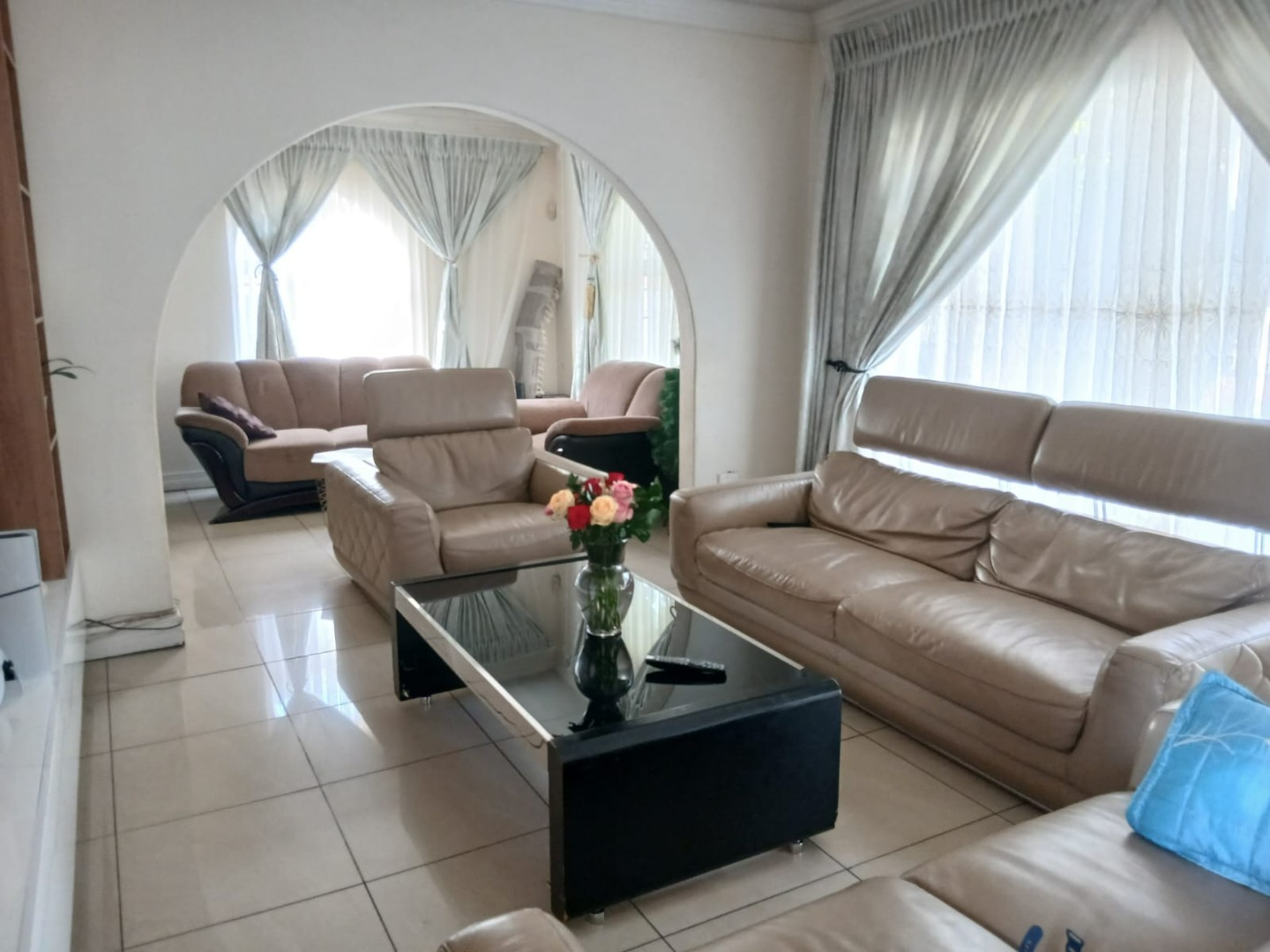 Discover this charming 3-bedroom family home, ideally situated in the established suburb of Groeneweide, Boksburg. Boasting an impressive 900 sqm erf and a comfortable 218 sqm floor size, this property offers a blend of spacious living and outdoor enjoyment. The inviting exterior features a large, manicured front lawn, mature trees providing natural shade, and appealing architectural details including distinctive arched windows and a secure entrance, creating excellent kerb appeal.