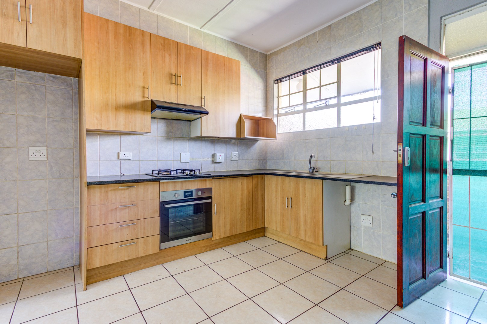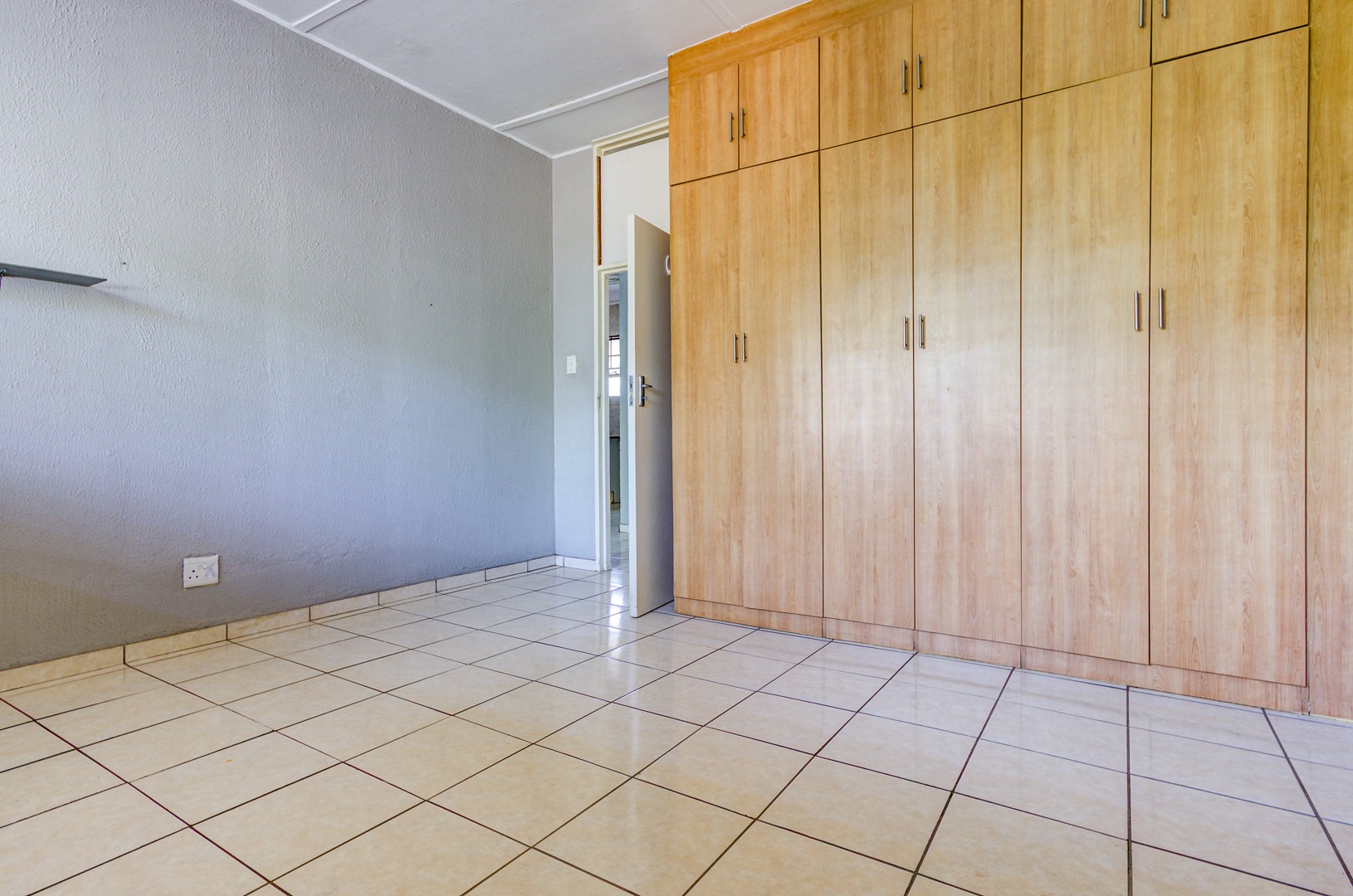 Discover comfortable and secure living in this inviting 2-bedroom, 1-bathroom unit located within a sought-after security complex in Impala Park, Boksburg. Spanning 82 square meters, this residence offers a practical open-plan layout, seamlessly connecting the living and dining areas, ideal for modern lifestyles. The entire unit features durable tiled flooring, ensuring easy maintenance and a cohesive aesthetic throughout. The functional kitchen is well-equipped with light wood-grain cabinetry, a built-in oven, gas hob, and extractor fan, complemented by a convenient breakfast bar for casual dining or additional prep space. Natural light floods the space through a large window, enhancing the bright and airy feel. An air conditioning unit is installed, providing climate control for year-round comfort. Both bedrooms are designed for comfort, featuring tiled floors and ample built-in wooden wardrobes, offering significant storage solutions. The single bathroom serves both bedrooms efficiently. The property also boasts a private balcony, perfect for relaxation. Security is paramount in this gated community, which benefits from 24-hour security, electric fencing, security gates, and controlled access, providing residents with peace of mind. Fibre connectivity is available, catering to modern communication needs, and a dedicated parking bay is included. Impala Park offers a suburban lifestyle with convenient access to local amenities and transport routes in Boksburg. Key Features: * 2 Bedrooms, 1 Bathroom * 82 sqm Floor Size * Open-Plan Living Area * Well-Equipped Kitchen with Breakfast Bar * Tiled Flooring Throughout * Air Conditioning * Built-in Wardrobes * Private Balcony * 24-Hour Security Complex * Fibre Ready