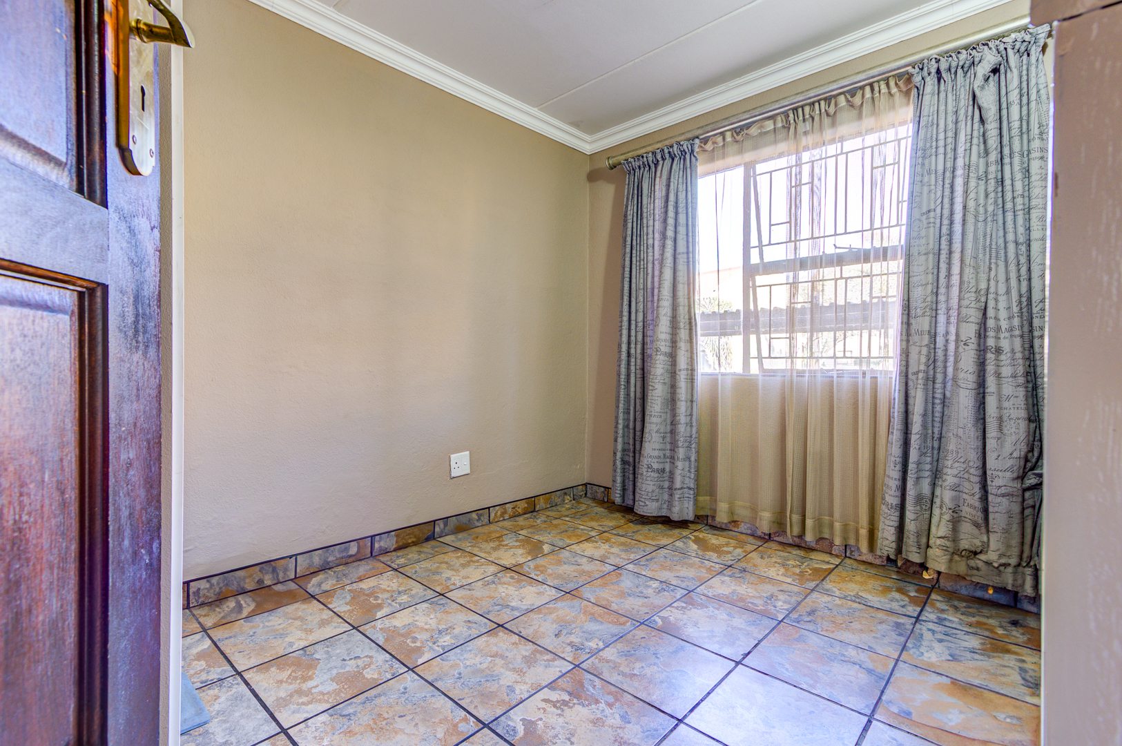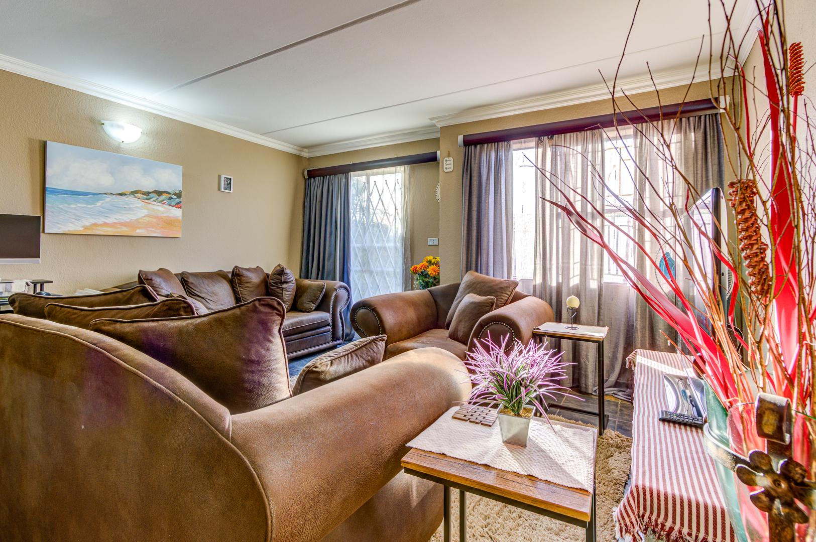 Discover this inviting 2-bedroom, 1-bathroom residence within a secure complex in Impala Park, Boksburg. The open-plan living area seamlessly integrates a comfortable lounge and dining space, featuring durable tiled flooring and elegant crown molding. Natural light fills the room, which also includes a dedicated home office nook.