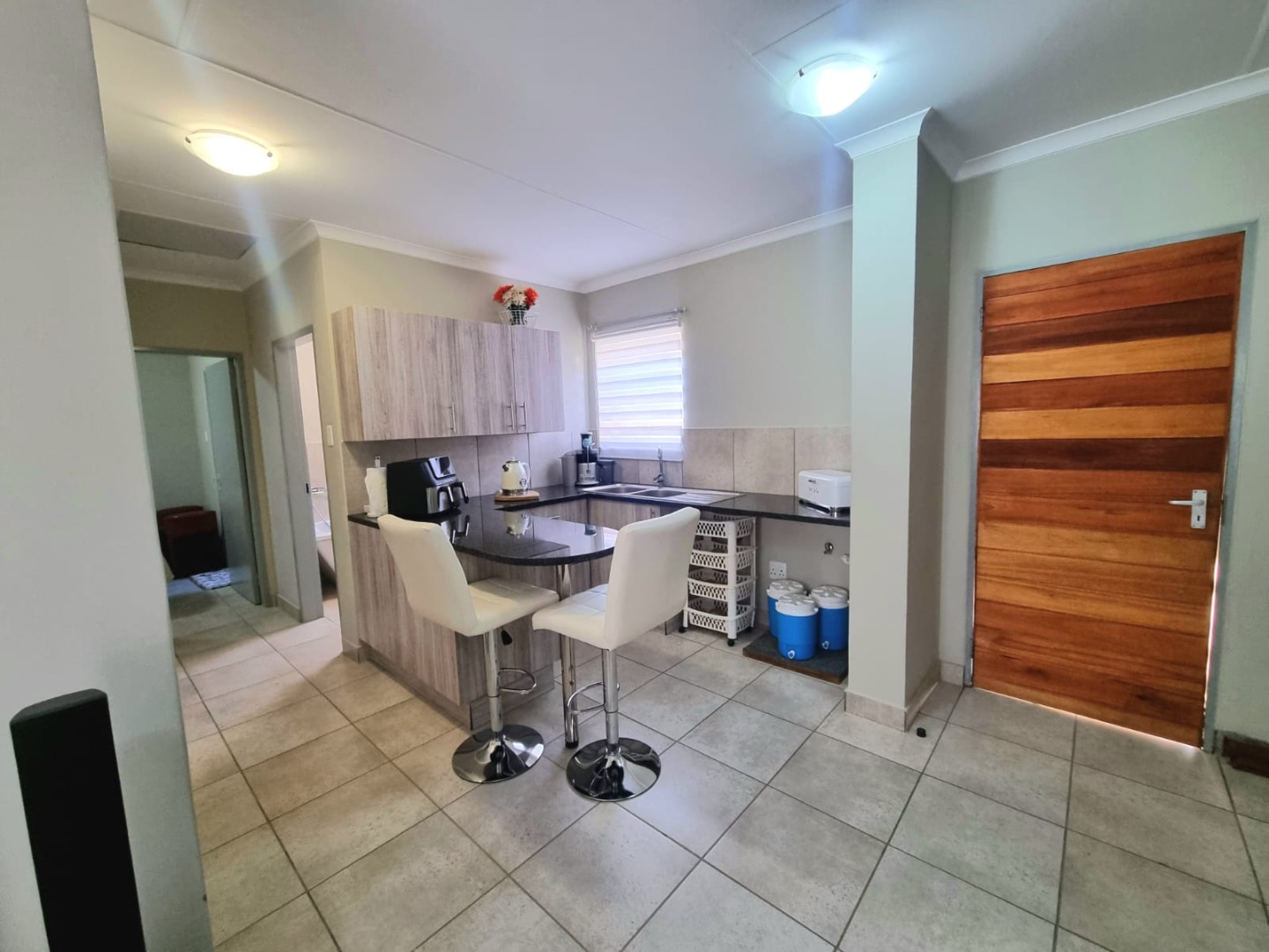 Discover this inviting 2-bedroom home in the friendly suburb of Parkdene, Boksburg, where comfort meets modern living. The open-plan layout seamlessly connects a relaxed lounge area with a stylish, modern kitchen. You'll appreciate the light wood-grain cabinets, sleek dark countertops, and a handy breakfast bar – perfect for casual dining or morning coffee. Tiled flooring throughout ensures easy maintenance and a fresh feel. This lovely home features two comfortable bedrooms, including one with its own en-suite bathroom for added convenience. Both bathrooms are neat and functional, with one boasting a modern freestanding tub. Outside, you'll find a pleasant garden area and two dedicated parking spaces. Plus, being part of a security complex with a security post offers that extra peace of mind for you and your family. Key Features: * 2 Bedrooms, 2 Bathrooms (1 en-suite) * Modern Open-Plan Kitchen with Breakfast Bar * Tiled Flooring Throughout * Private Garden Area * 2 Dedicated Parking Spaces * Secure Complex with Security Post * Located in Parkdene, Boksburg
