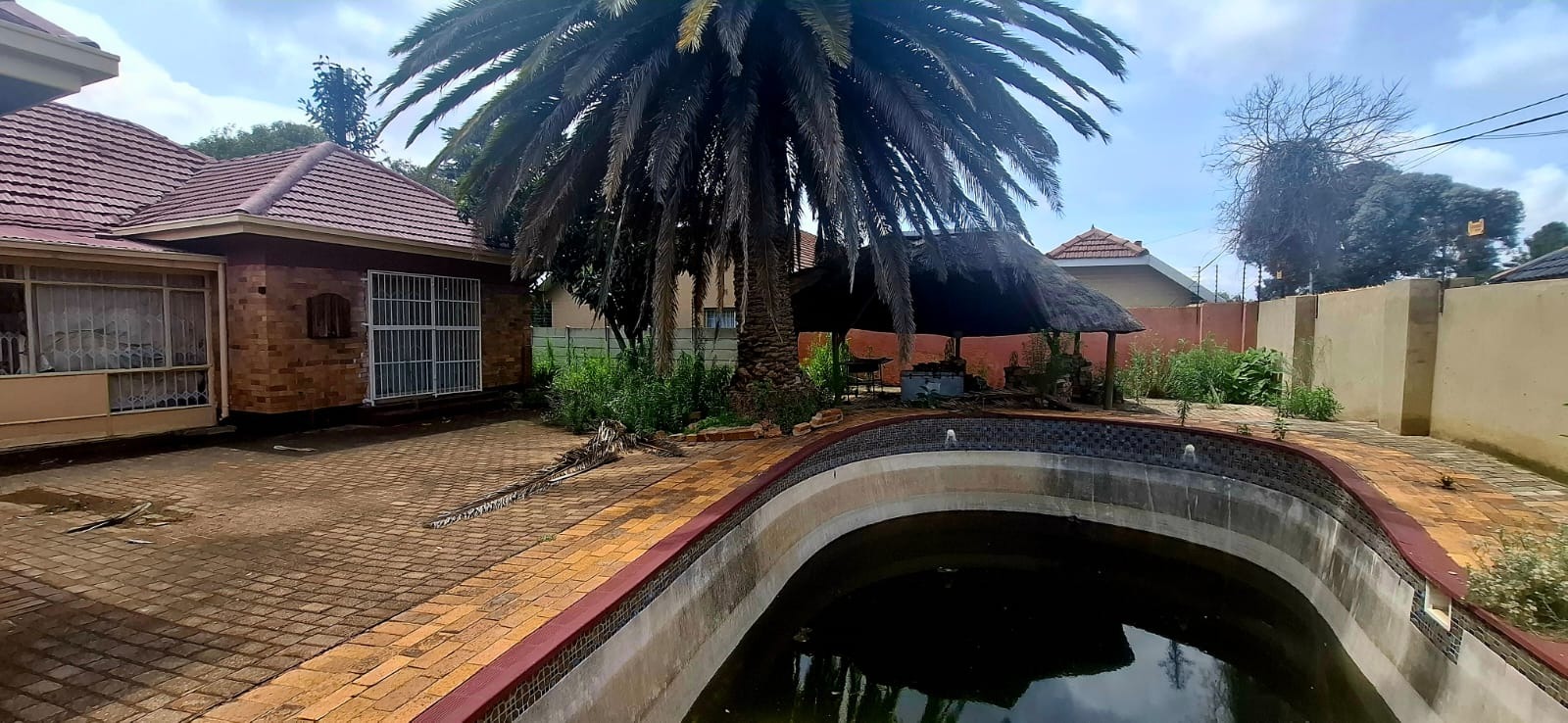 Nestled within the suburban gated community of Parkdene, Boksburg, this property offers a promising opportunity for comfortable family living in South Africa. The residence presents a solid brick construction with a well-maintained red tiled roof. A paved driveway leads to a separate garage/outbuilding, providing convenient parking and additional storage solutions. While the garden currently awaits a green thumb, its generous size and existing swimming pool offer immense potential for creating a private outdoor sanctuary.