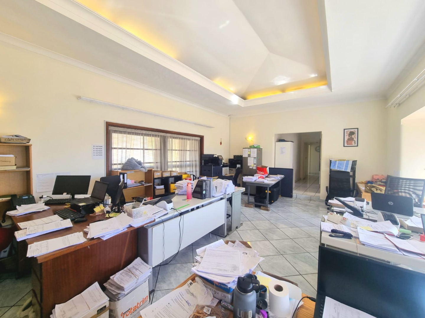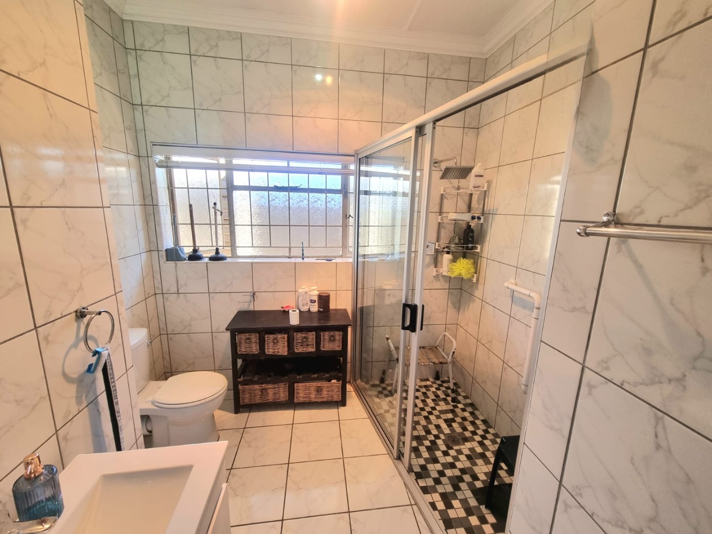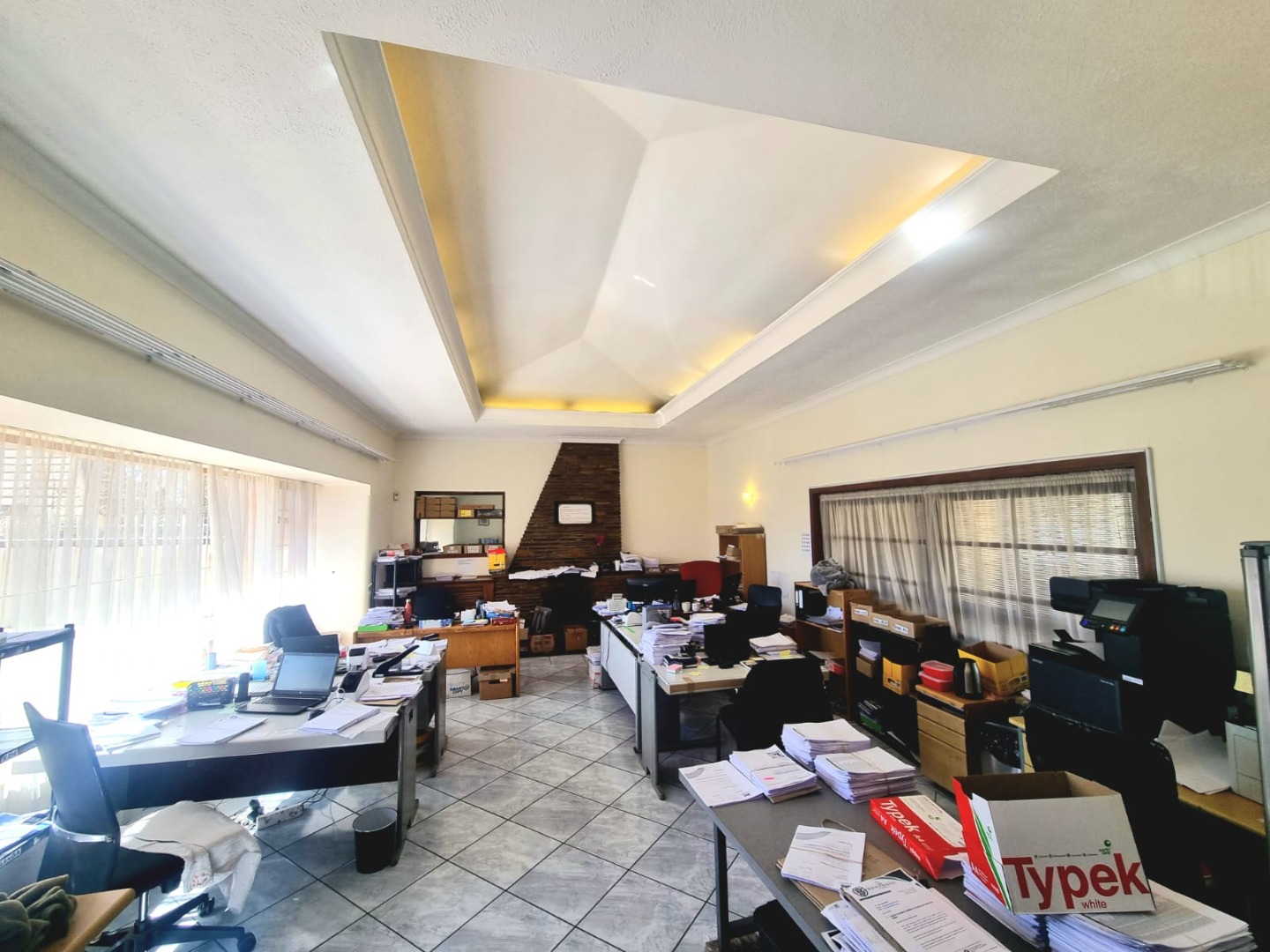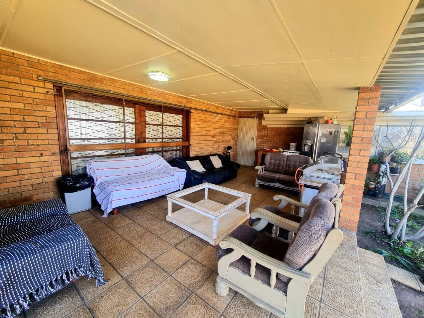 Presenting a well-maintained L-shaped brick-faced residence with a classic red tiled roof, this home immediately impresses with its substantial kerb appeal. A spacious paved courtyard leads to an enclosed garage, providing ample secure parking for up to four vehicles, complemented by additional open parking for eight, all set on a generous 1041 sqm erf.