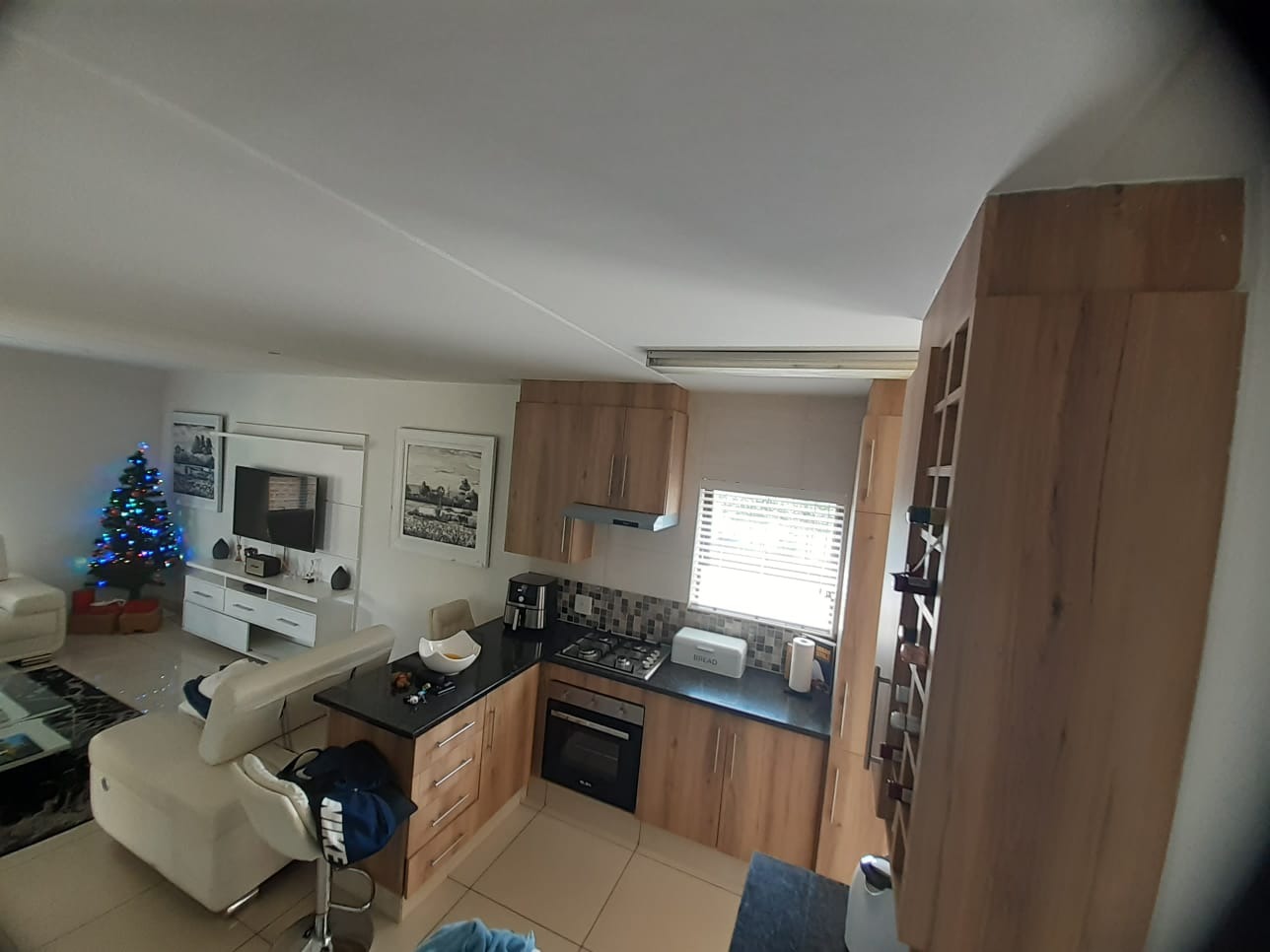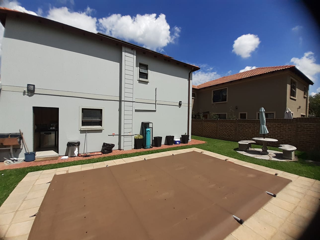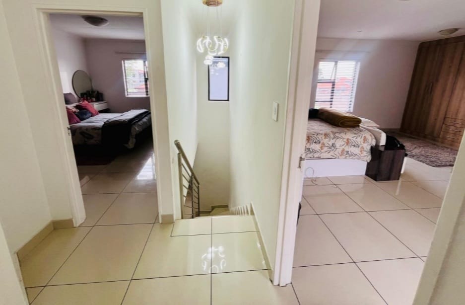 Outdoor living is equally appealing with a covered ground-floor patio, perfect for relaxation, and a second-story balcony offering elevated views. The property also features a refreshing swimming pool and a private garden, providing ideal spaces for leisure and outdoor activities. As part of a security estate with a security post and access gate, residents benefit from enhanced peace of mind. Parkrand offers a desirable suburban lifestyle with convenient access to local amenities.