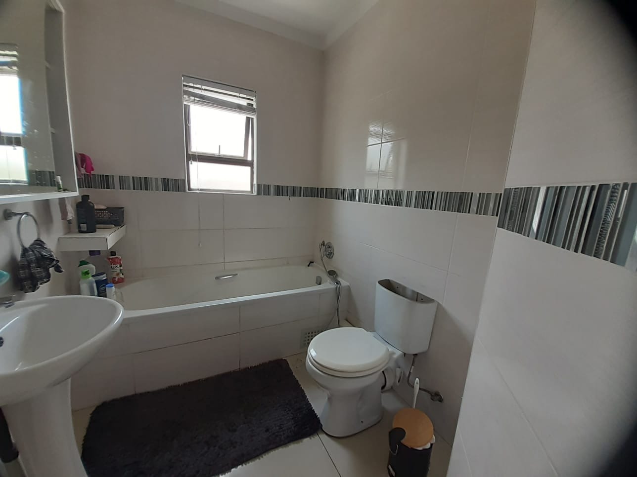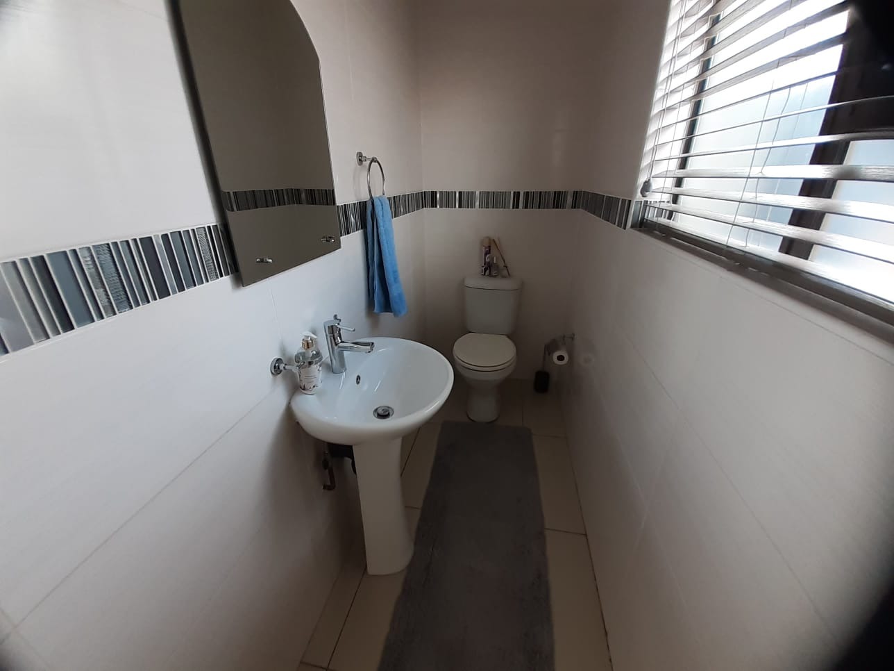 Accommodation comprises three well-proportioned bedrooms, including a comfortable en-suite bathroom, ensuring privacy and convenience. The additional 1.5 bathrooms, including a guest toilet, , fully tiled walls, and decorative mosaic accents, reflecting a clean and contemporary design throughout.