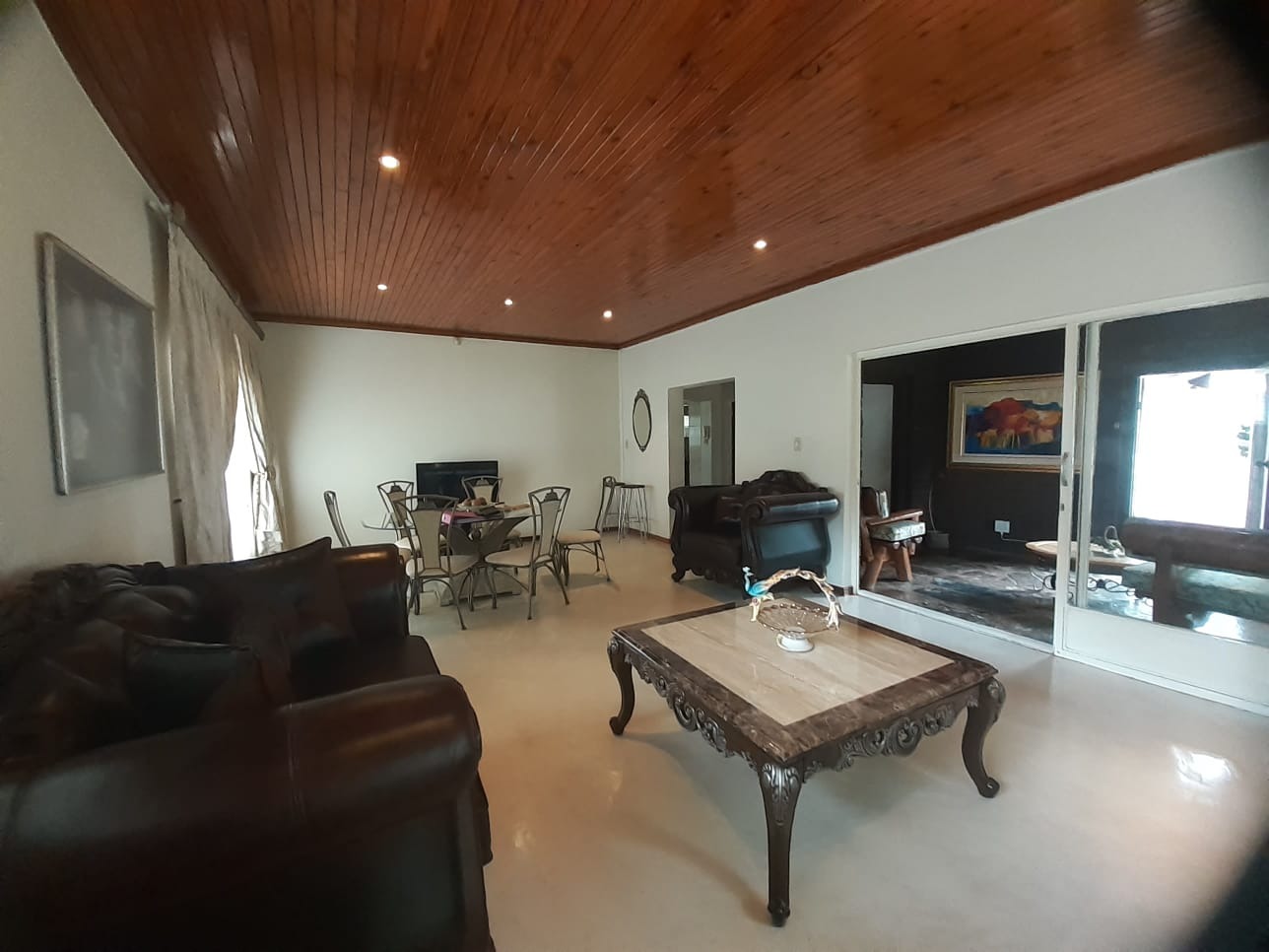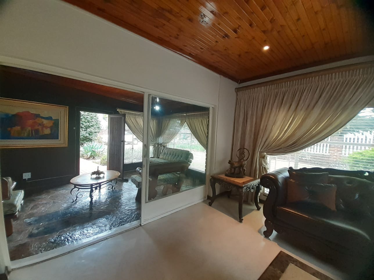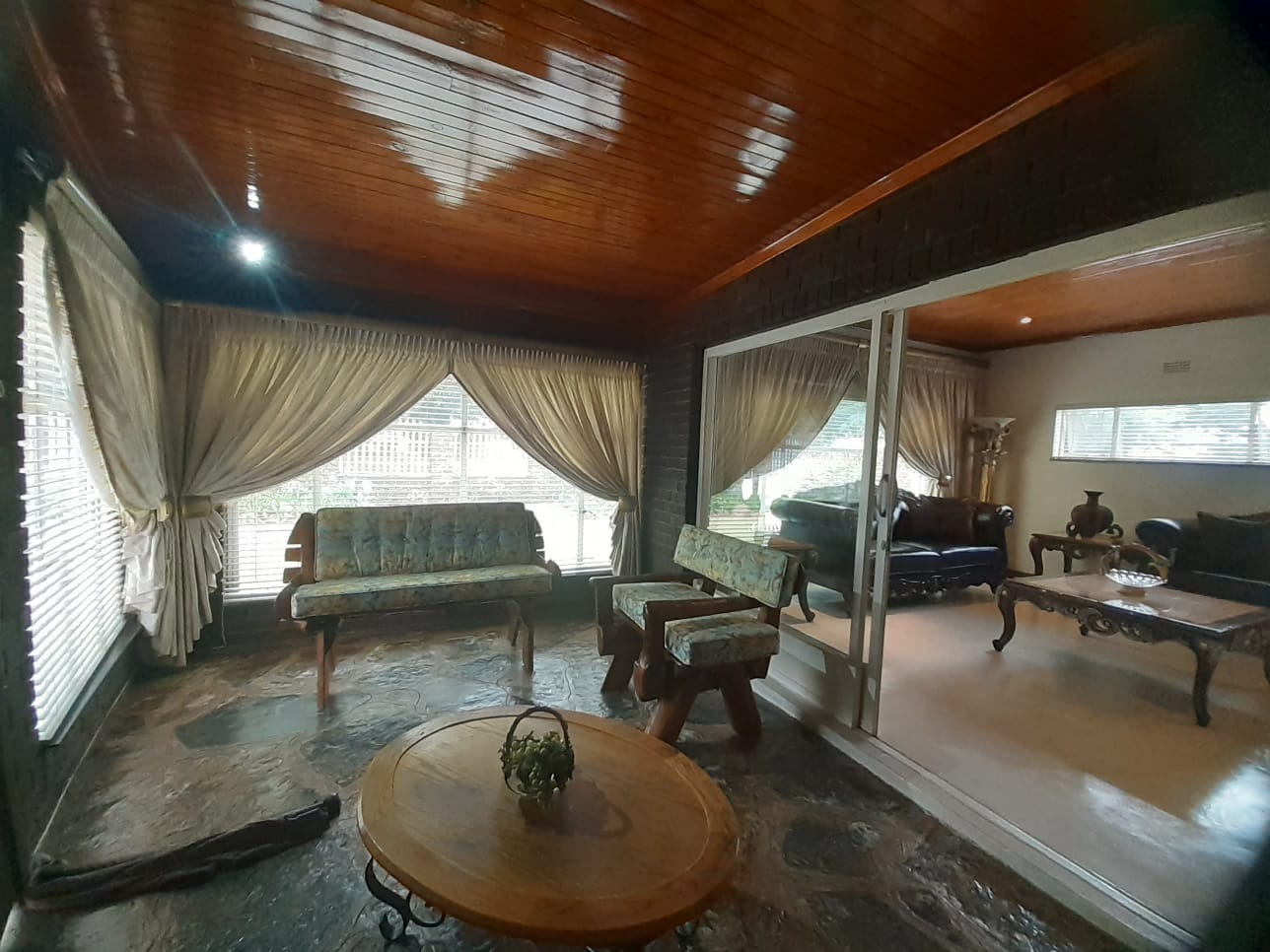Discover this charming 3-bedroom residence nestled within a secure estate in Parkrand, Boksburg. Boasting an expansive 1190 sqm erf, this property offers a blend of comfortable living and outdoor potential. The exterior presents a welcoming facade with a brick-paved driveway leading to an integrated single garage, complemented by a large, mature garden featuring established trees, providing a serene environment. Step inside to find a thoughtfully laid-out interior designed for family living. The home features two spacious lounges and a dedicated dining room, offering ample space for relaxation and entertaining. Unique wooden paneled ceilings with recessed lighting add character and warmth throughout the main living areas, while large windows and sliding glass doors ensure abundant natural light. The traditional kitchen is equipped with light wooden cabinetry, dark countertops, a built-in double oven, and a gas hob with an extractor fan, providing practical storage and functionality. The residence comprises three comfortable bedrooms, with the main bedroom benefiting from an en-suite bathroom, alongside a second well-appointed bathroom serving the remaining rooms. An additional flatlet offers versatile accommodation options. Outdoor living is enhanced by a delightful enclosed patio or sunroom, featuring natural stone flooring and connecting seamlessly to the garden. This space is perfect for year-round enjoyment. The property also includes a swimming pool, ideal for warm South African days, and additional parking for two vehicles. Situated within a security estate with 24-hour security, an access gate, and a security post, residents can enjoy peace of mind. Fibre connectivity is also available. Key Features: * 3 Bedrooms, 2 Bathrooms (1 En-suite) * 1 Integrated Garage, 2 Parking Spaces * 2 Lounges, 1 Dining Room * Spacious 1190 sqm Erf * Enclosed Patio/Sunroom * Swimming Pool * Large, Mature Garden * Security Estate with 24-Hour Security * Fibre Ready * Pet-Friendly with Flatlet