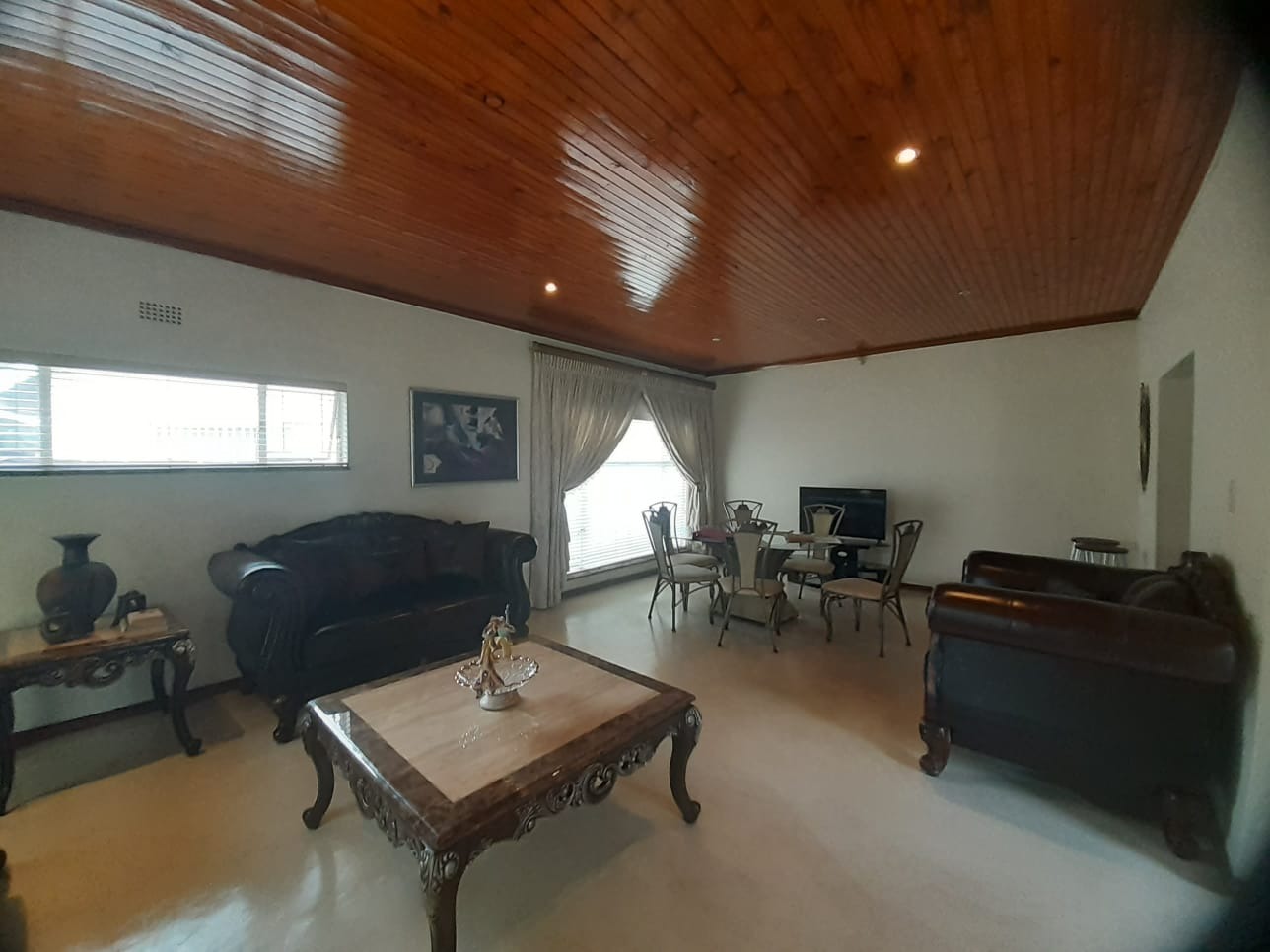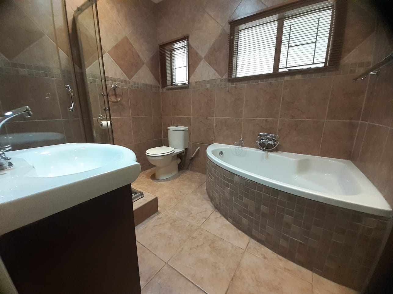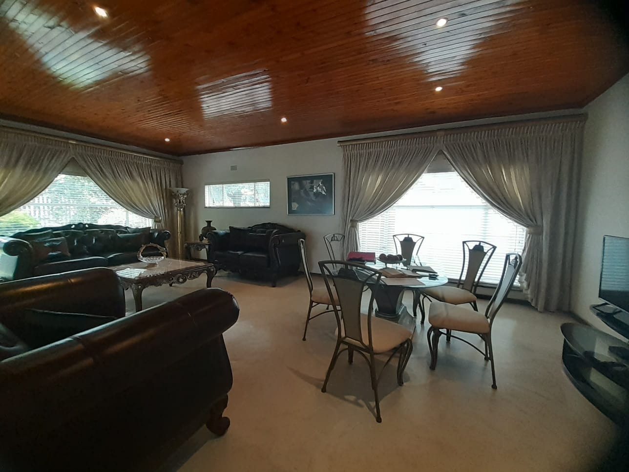 Discover this charming 3-bedroom residence nestled within a secure estate in Parkrand, Boksburg. Boasting an expansive 1190 sqm erf, this property offers a blend of comfortable living and outdoor potential. The exterior presents a welcoming facade with a brick-paved driveway leading to an integrated single garage, complemented by a large, mature garden featuring established trees, providing a serene environment. Step inside to find a thoughtfully laid-out interior designed for family living. The home features two spacious lounges and a dedicated dining room, offering ample space for relaxation and entertaining. Unique wooden paneled ceilings with recessed lighting add character and warmth throughout the main living areas, while large windows and sliding glass doors ensure abundant natural light. The traditional kitchen is equipped with light wooden cabinetry, dark countertops, a built-in double oven, and a gas hob with an extractor fan, providing practical storage and functionality. The residence comprises three comfortable bedrooms, with the main bedroom benefiting from an en-suite bathroom, alongside a second well-appointed bathroom serving the remaining rooms. An additional flatlet offers versatile accommodation options. Outdoor living is enhanced by a delightful enclosed patio or sunroom, featuring natural stone flooring and connecting seamlessly to the garden. This space is perfect for year-round enjoyment. The property also includes a swimming pool, ideal for warm South African days, and additional parking for two vehicles. Situated within a security estate with 24-hour security, an access gate, and a security post, residents can enjoy peace of mind. Fibre connectivity is also available. Key Features: * 3 Bedrooms, 2 Bathrooms (1 En-suite) * 1 Integrated Garage, 2 Parking Spaces * 2 Lounges, 1 Dining Room * Spacious 1190 sqm Erf * Enclosed Patio/Sunroom * Swimming Pool * Large, Mature Garden * Security Estate with 24-Hour Security * Fibre Ready * Pet-Friendly with Flatlet