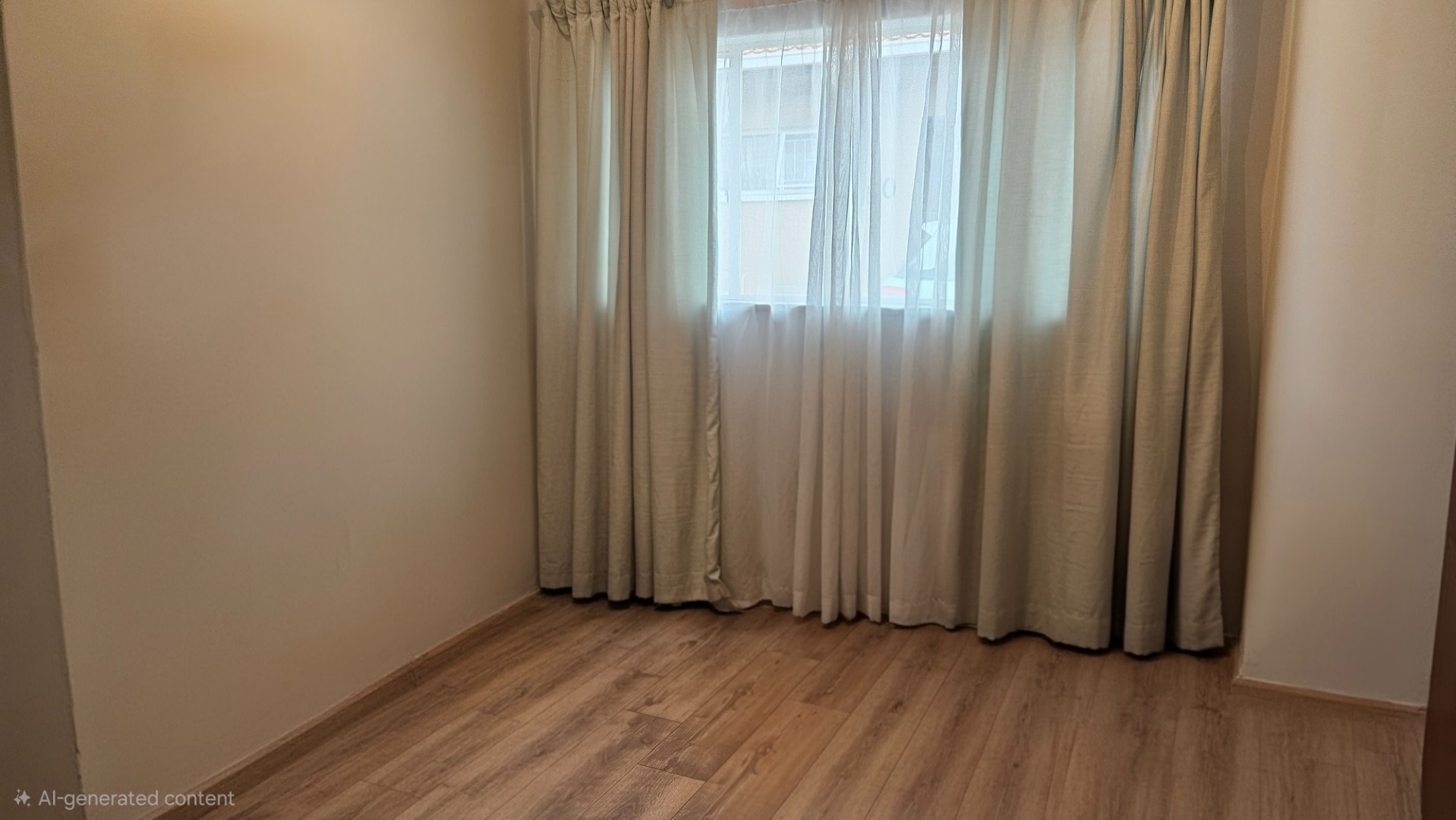 The 3 bedrooms have laminated flooring and built-in cupboards, accommodated by a fully tiled bathroom with shower, basin, vanity and toilet.