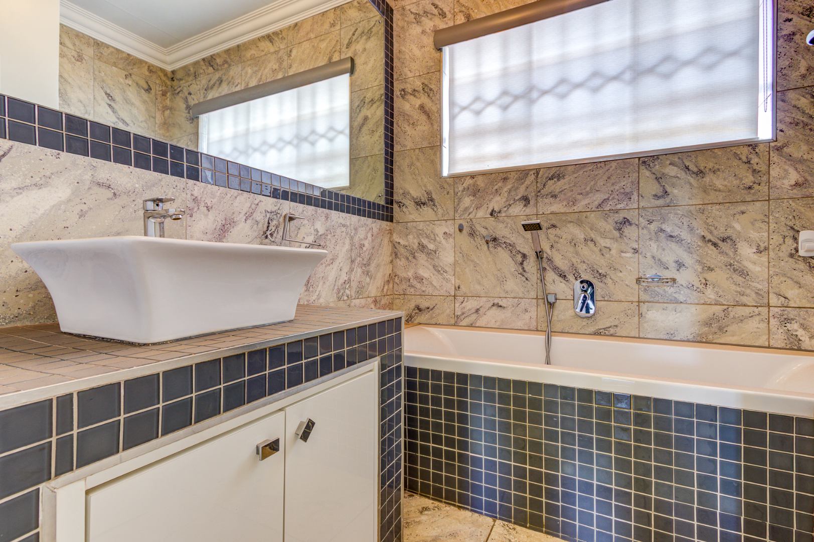 The three well-proportioned bedrooms offer private retreats, complemented by three bathrooms, ensuring convenience for residents and guests alike, including a dedicated guest toilet. Outside, the property truly shines with a private garden, a refreshing swimming pool in the complex and a welcoming patio – ideal for outdoor dining, entertaining, or simply unwinding in the South African sunshine.