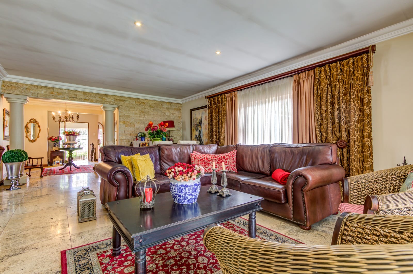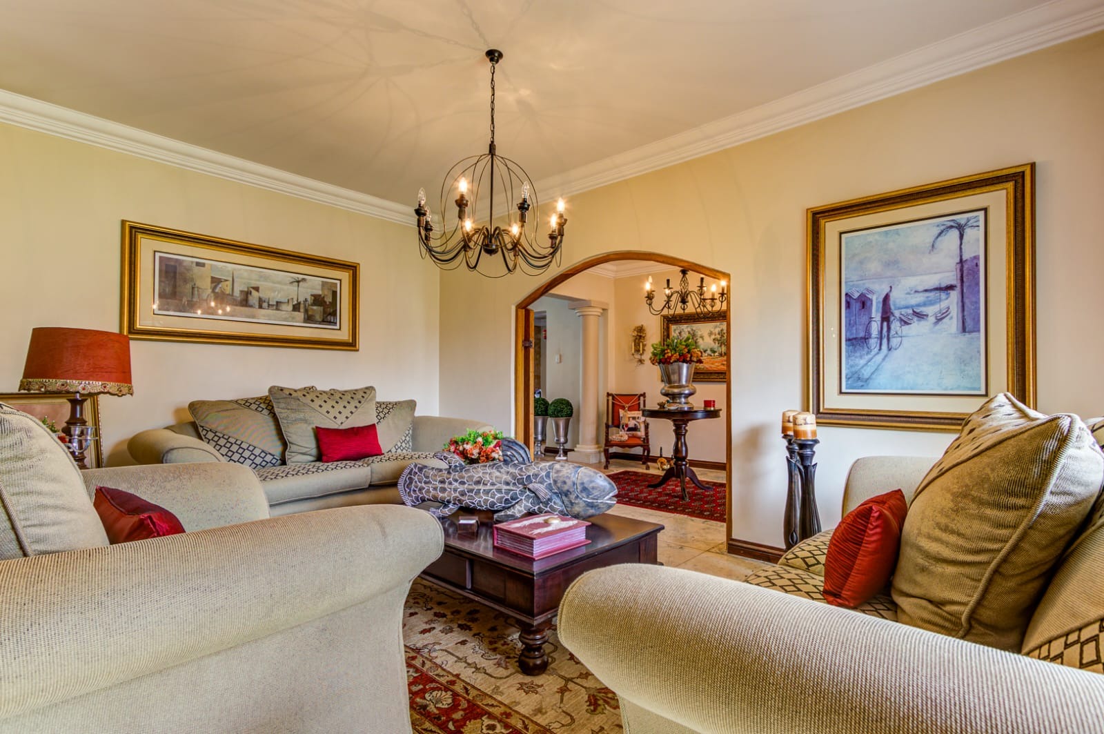 - Inviting Living Areas – a cozy lounge and living room featuring a charming fireplace, fitted curtains, and a stunning chandelier that adds a touch of sophistication