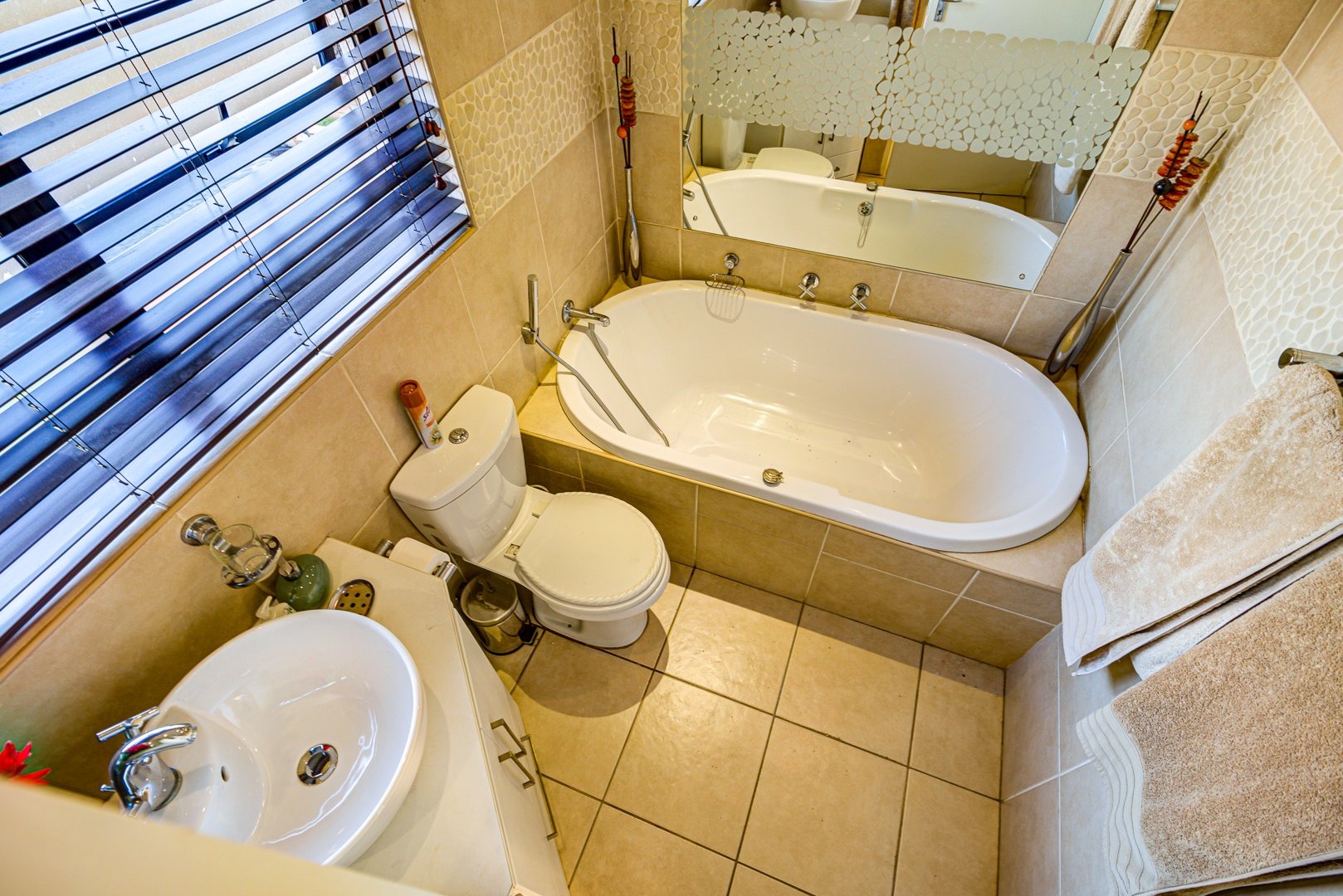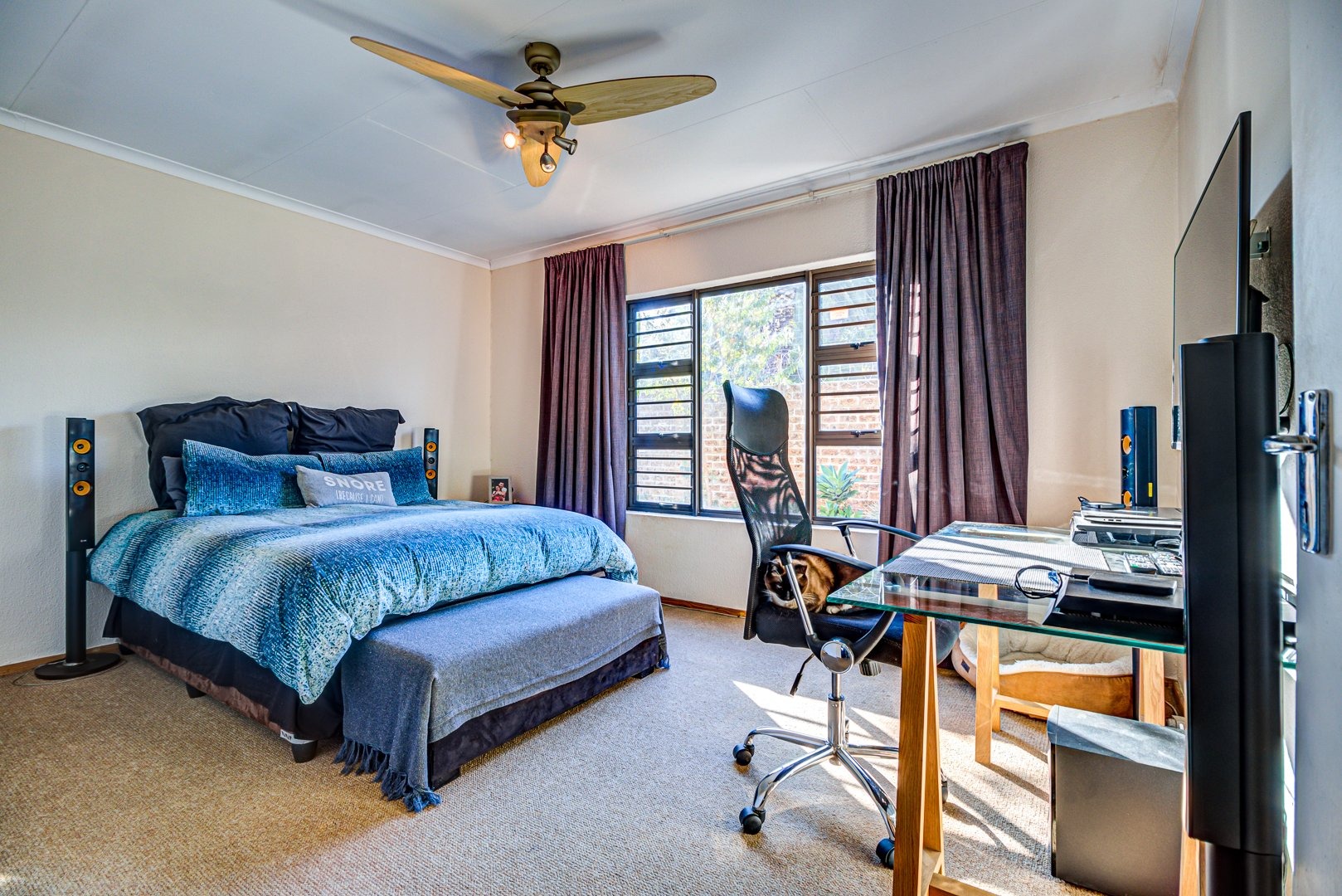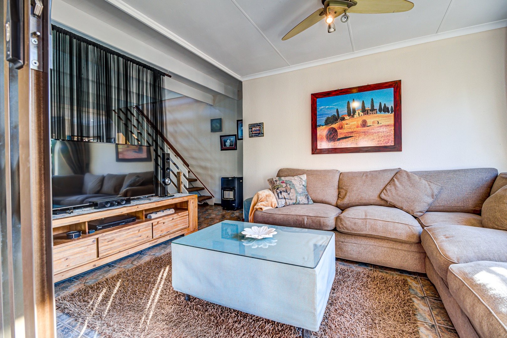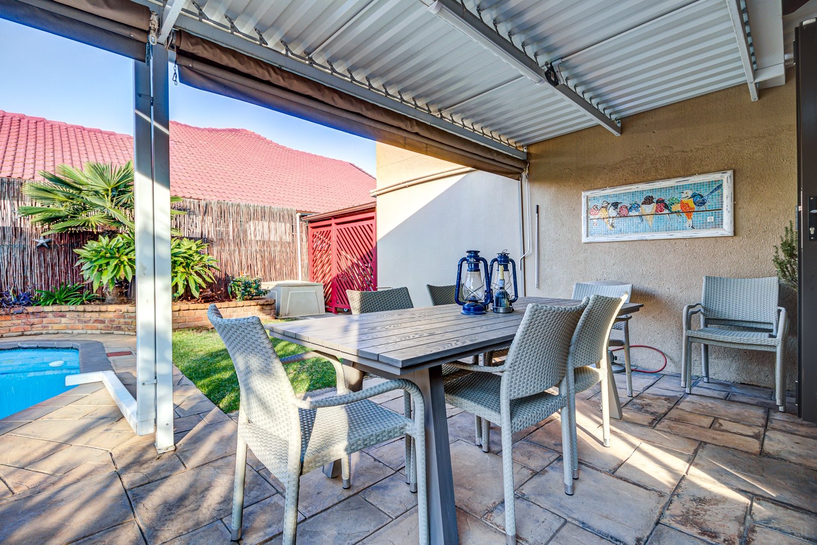 Open plan lounge and dining room. Open plan kitchen with granite tops, a breakfast counter and scullery. 3 Spacious bedrooms. 3 Modern bathrooms. Main bedroom with an en-suite bathroom and pajama lounge/ study. Two bedrooms has their own en-suite bathrooms. There is also an aircon inside the home for those hot summer days. Triple garage with automated doors and direct entry to the home. Triple carport parking. Solar heated pool to make a splash in! Landscaped garden. Covered patio. Security guard on duty 24/7.